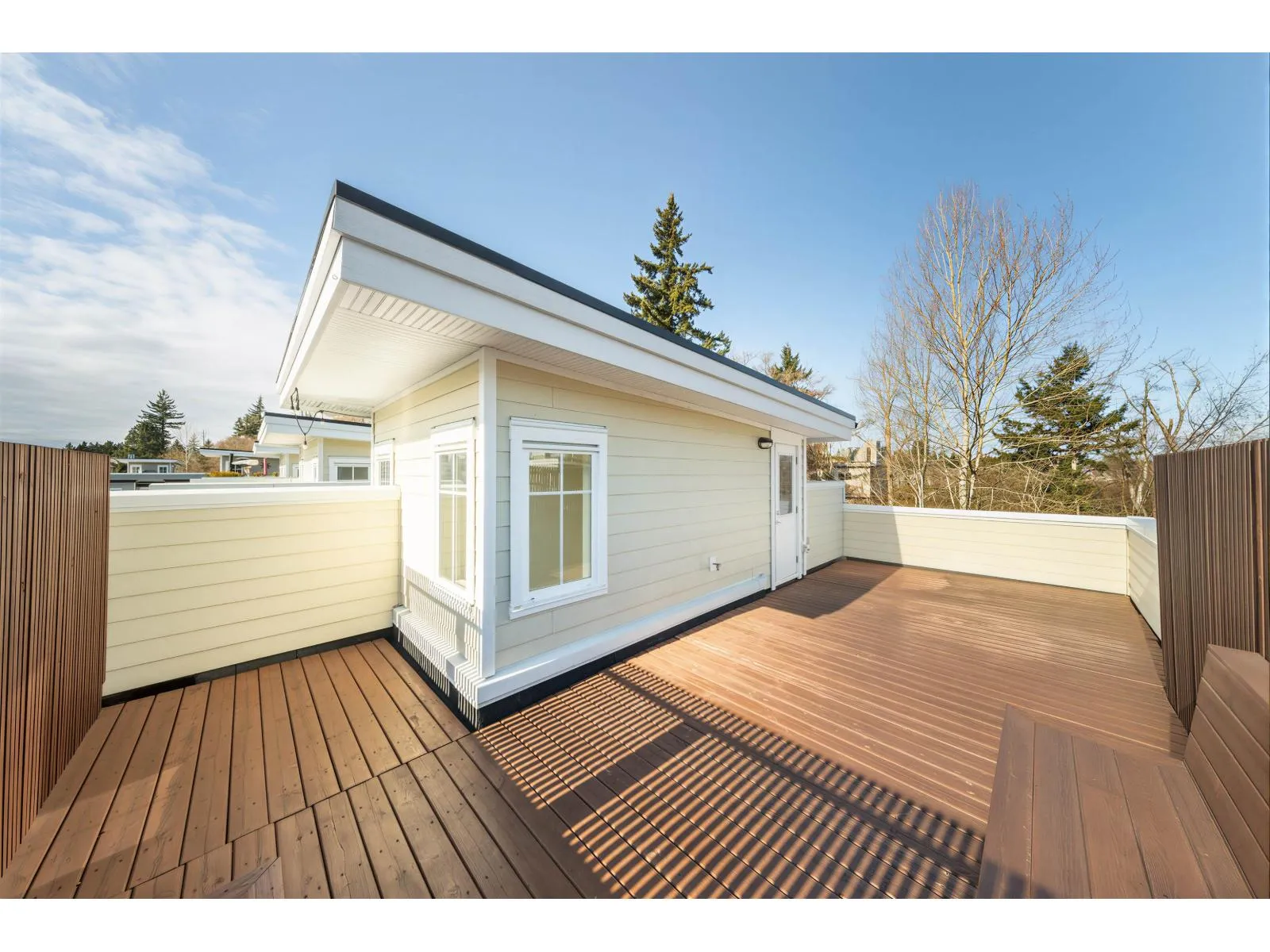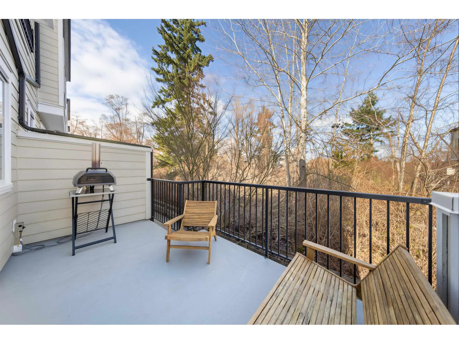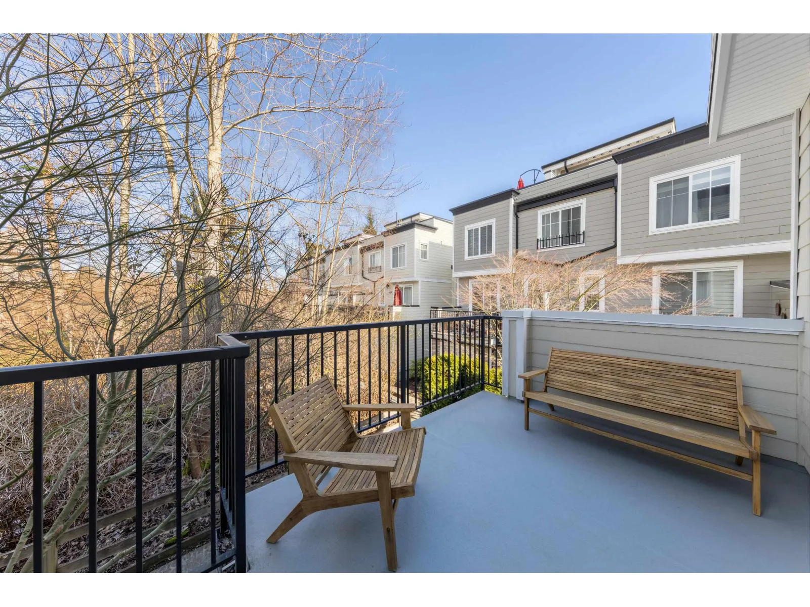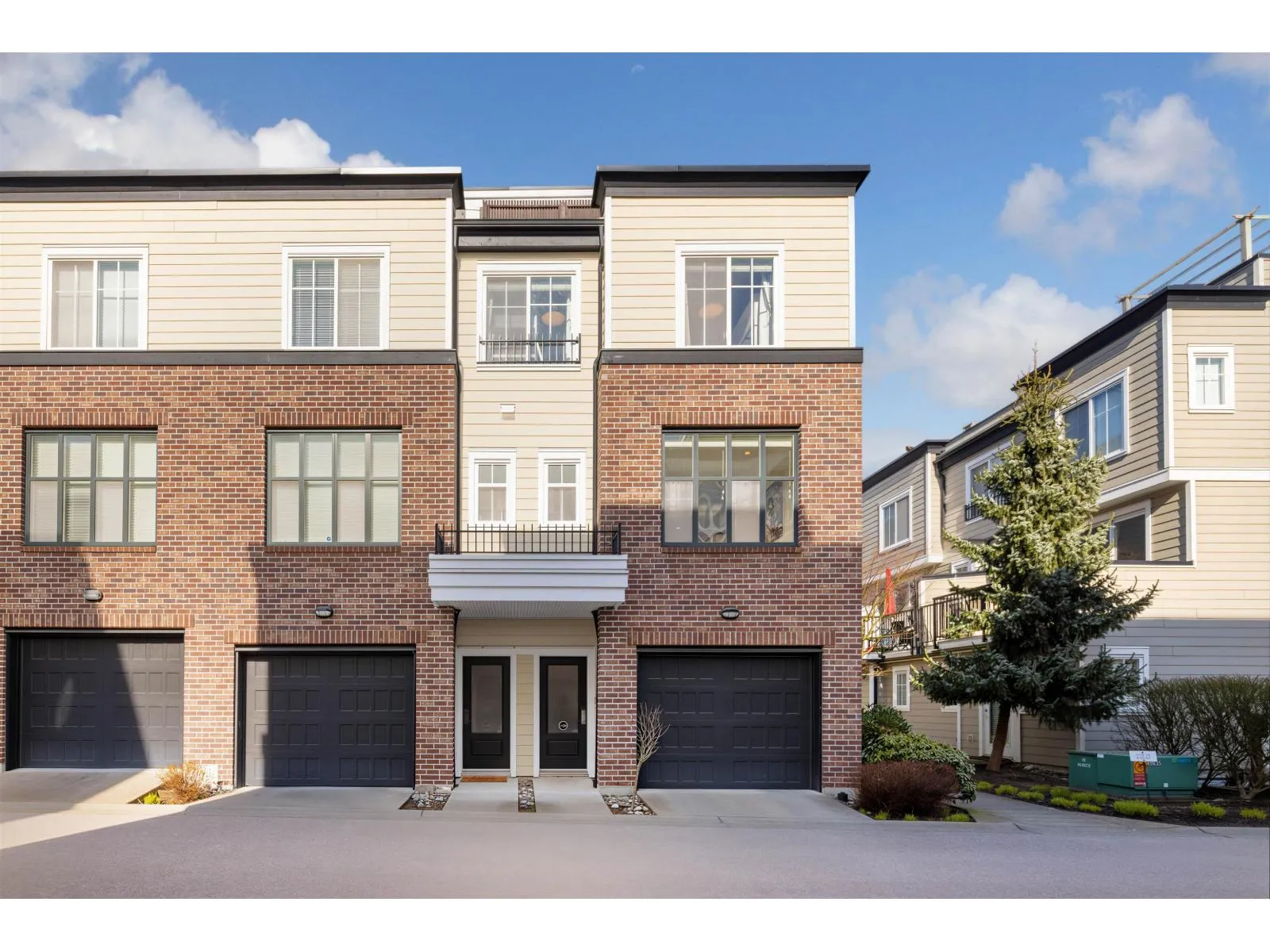 BEST LOCATION end-unit townhome in the Complex offering 3 bedrooms, 3 bathrooms plus a den, with bright, move-in ready living space. Enjoy two outdoor areas - a private main-floor balcony and a 388 sq.ft. rooftop deck featuring a custom wraparound bench and privacy wall, perfect for entertaining while overlooking peaceful greenbelt views. The open-concept kitchen showcases a large quartz island, ample cabinetry, a 2026 gas range, along with a convenient powder room on the main level. As a desirable end unit, extra windows throughout provide abundant natural light. Rare live/work zoning allows for a legal home-based business or private office with separate garden entry. Ideally located between Grandview and Morgan Creek Golf Course, with easy access to shopping, schools, transit, and Hwy 99. (id:27476)