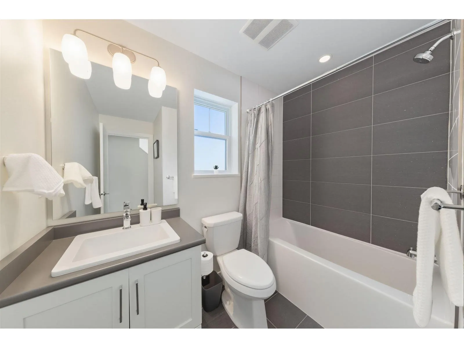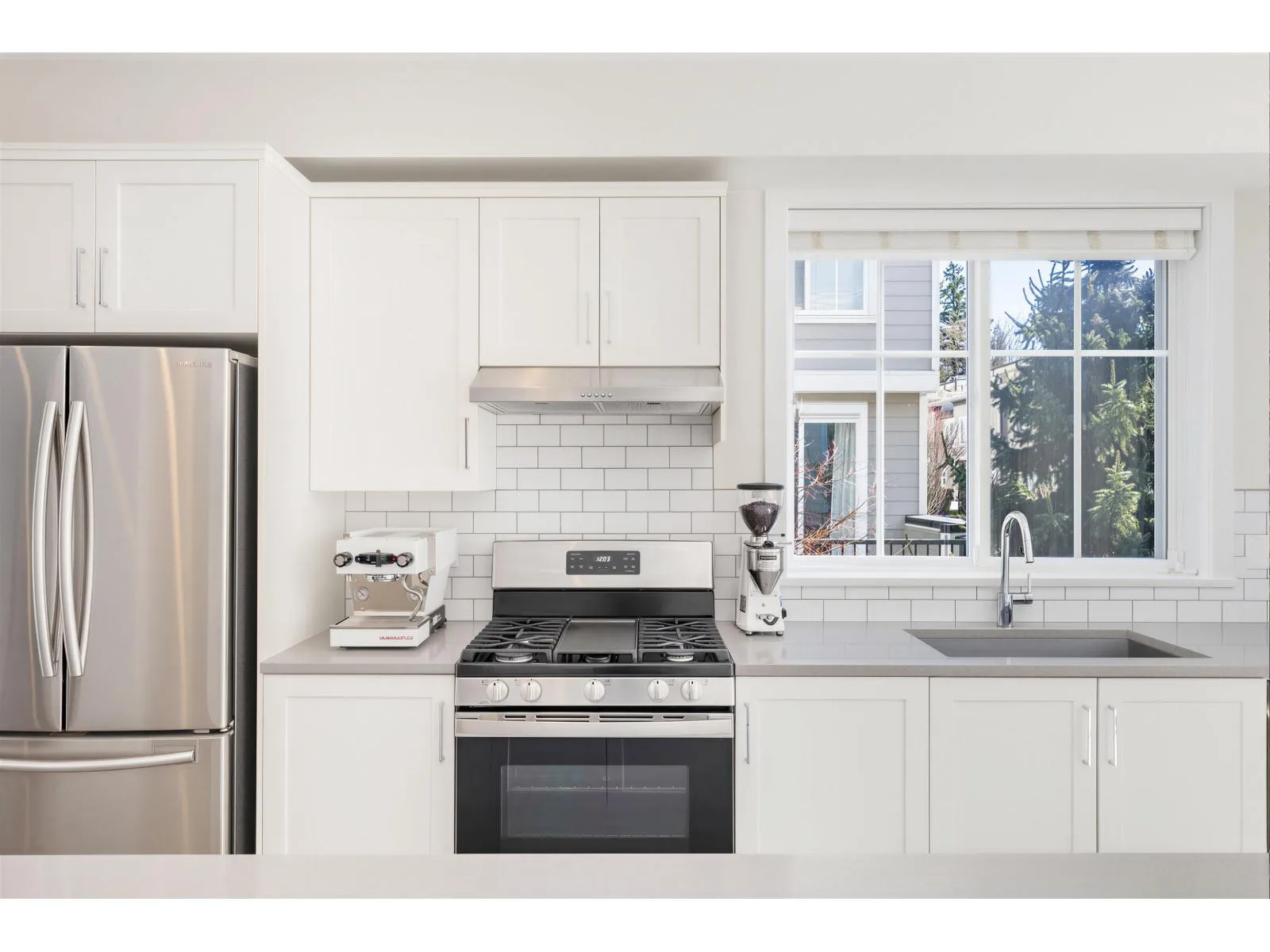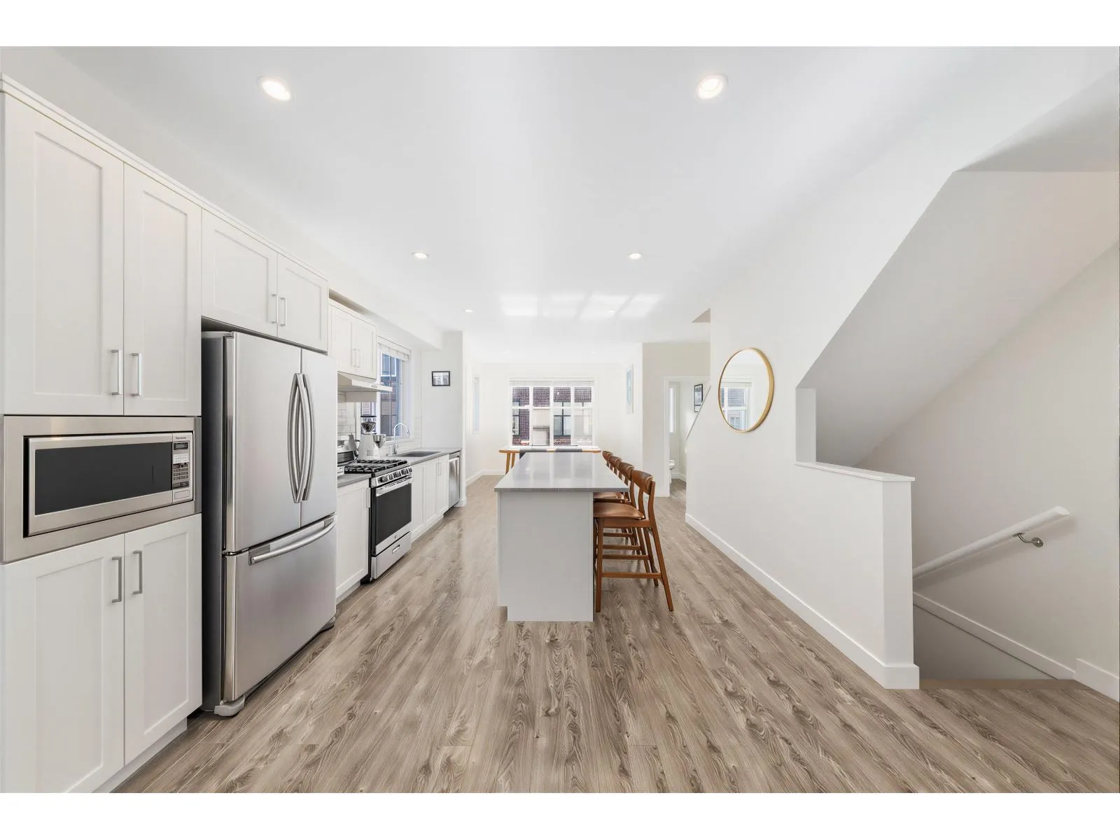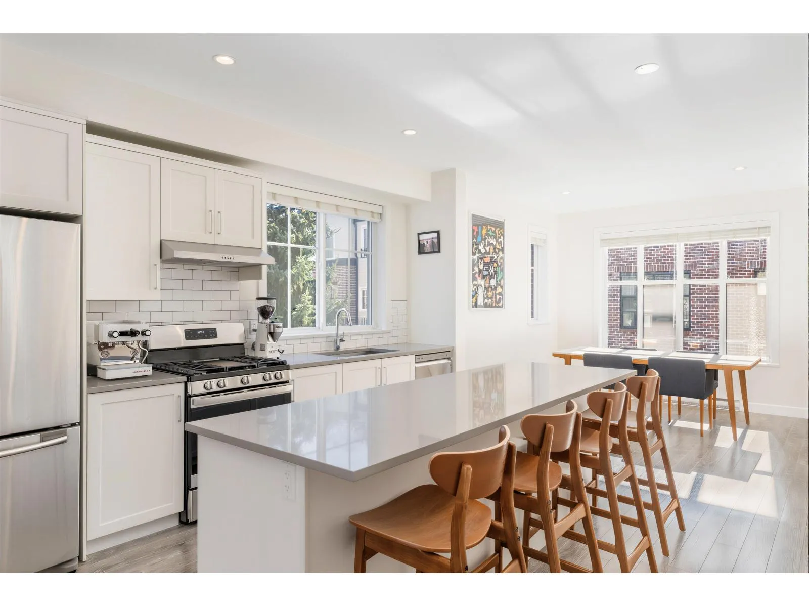 BEST LOCATION end-unit townhome in the Complex offering 3 bedrooms, 3 bathrooms plus a den, with bright, move-in ready living space. Enjoy two outdoor areas - a private main-floor balcony and a 388 sq.ft. rooftop deck featuring a custom wraparound bench and privacy wall, perfect for entertaining while overlooking peaceful greenbelt views. The open-concept kitchen showcases a large quartz island, ample cabinetry, a 2026 gas range, along with a convenient powder room on the main level. As a desirable end unit, extra windows throughout provide abundant natural light. Rare live/work zoning allows for a legal home-based business or private office with separate garden entry. Ideally located between Grandview and Morgan Creek Golf Course, with easy access to shopping, schools, transit, and Hwy 99. (id:27476)