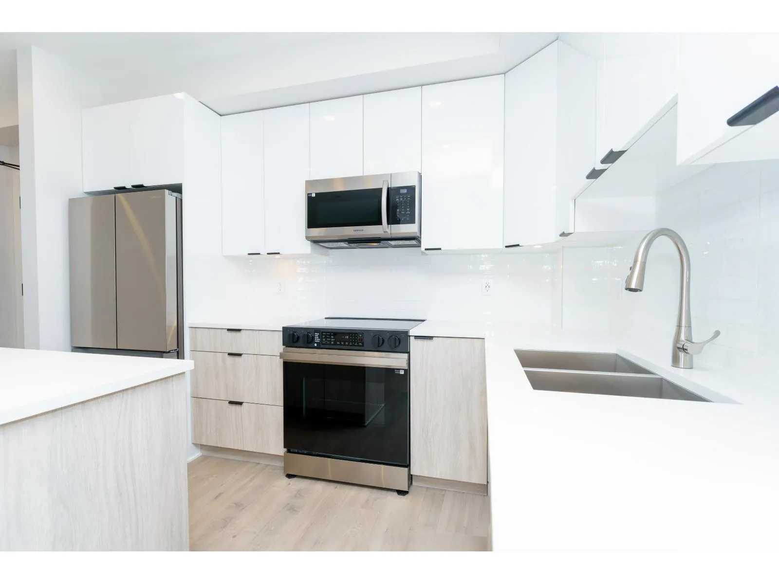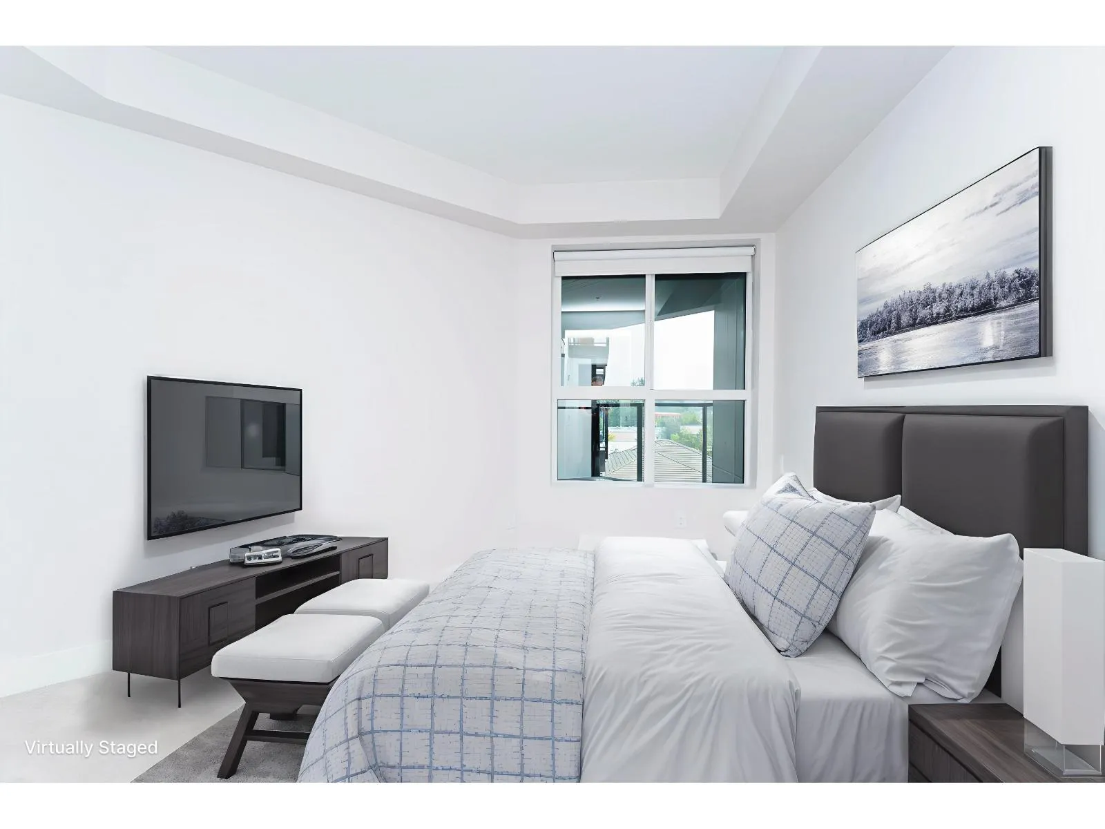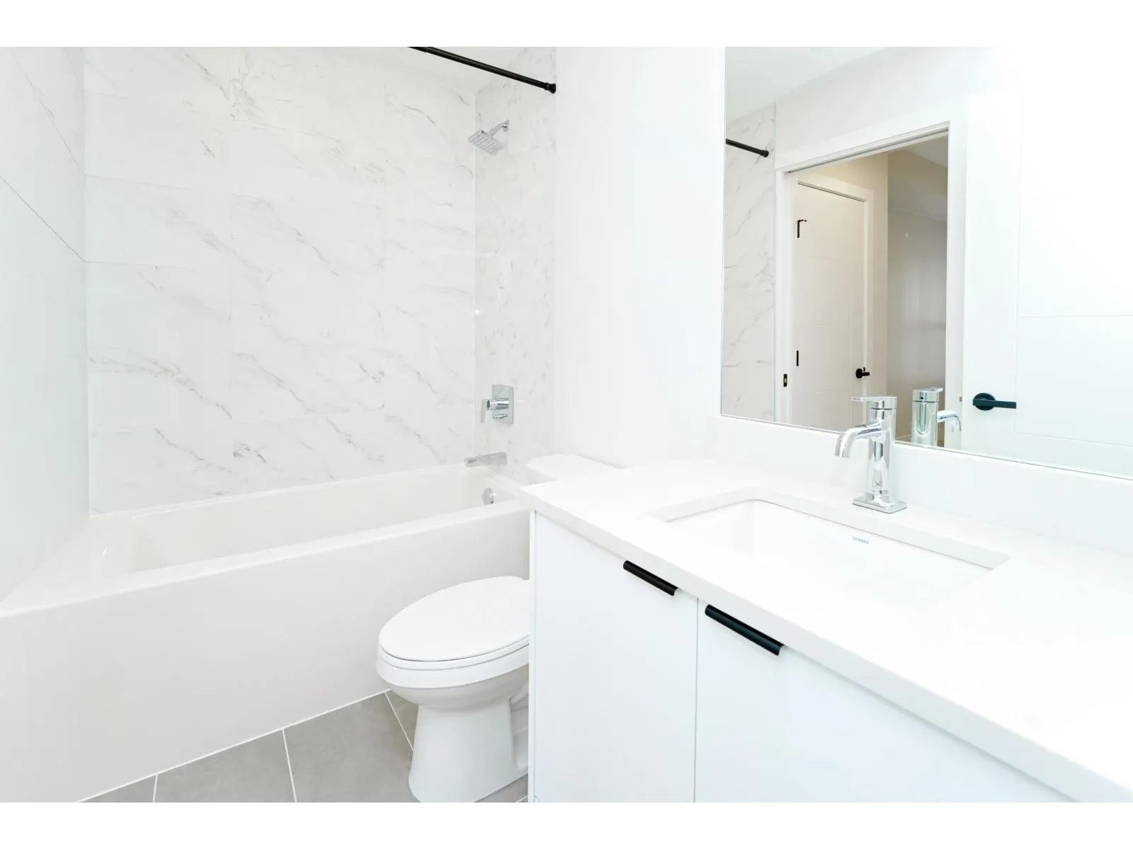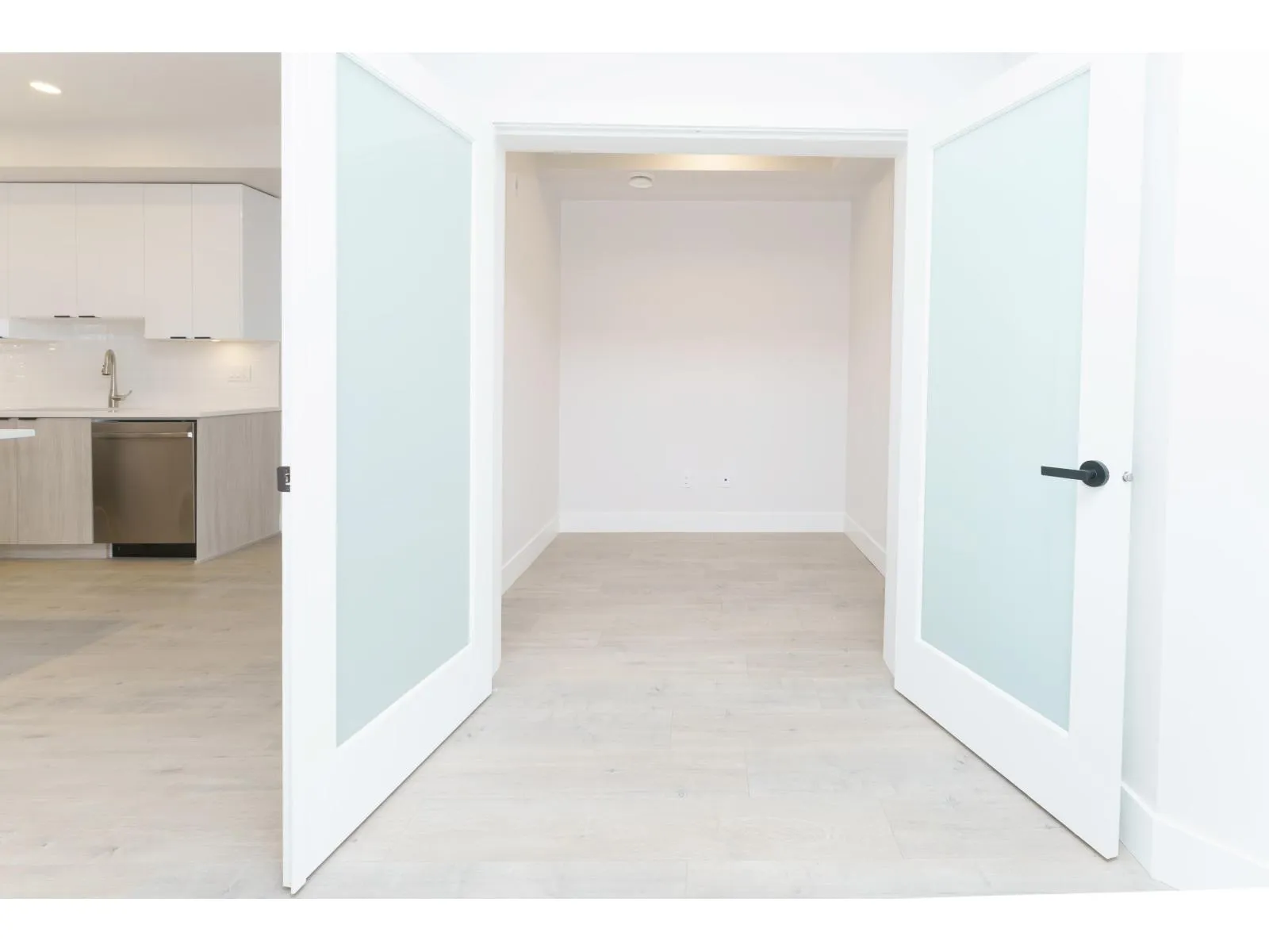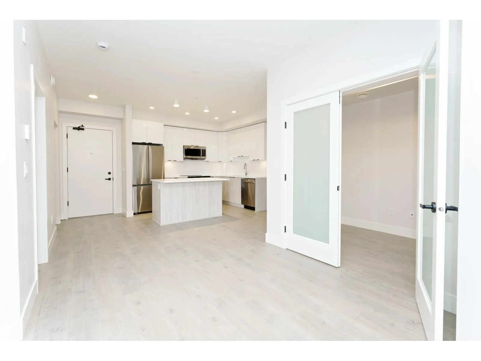 Welcome to Galilea by Whitetail Homes. Move-in ready, brand new 1 bed plus den, 1 bath home with a bright open layout and a large east-facing covered balcony. The kitchen features quartz counters, stainless steel appliances and a generous island, ideal for entertaining. The spacious den works well as a home office or guest space. Features include a walk-in closet, in-suite laundry and modern finishes throughout. Amenities include a gym, wellness centre, party room, gardens, playground and shared work space. Includes 1 parking stall near the elevator and 1 storage locker. Walk to SkyTrain, SFU, Surrey Memorial Hospital and QE Secondary. Strata Fees include HEAT and HOT WATER. Photos virtually staged. Pets allowed, 2 dogs or 2 cats or 1 of each (no size restrictions). (id:27476)