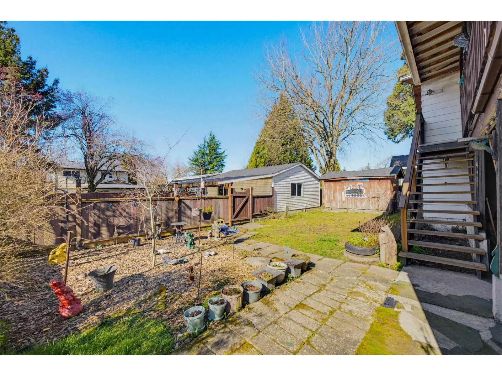 Large 4 Bed & 3 Bath Basement Entry Home with Front Parking and Rear Lane Access to a Detached Shop with Carport. Potential to add more parking in the back. A lot of Big Ticket Items have been done to this home. The Roof was done in 2018, Furnace in 2012, Windows & Sliders in 2016 & Hot Water Tank in 2022. Some Updated Laminate Flooring, New Carpet on Stairs, Newer Stainless Steel Appliances. The Main Bathroom has a Bath Fitter Insert and Newer Toilet. 1 Bedroom Suite & A Large Rec Room in Basement. Large Living Room and Large Primary Bedroom Upstairs - Great Room Sizes in this home! Covered Sundeck was Redone with epoxy deck coating and stairs have been redone as well. 2 Storage Sheds in the back yard. Close to Schools, Shopping, Restaurants, #10 & Fraser Hwy and Future Skytrain Line. (id:27476)