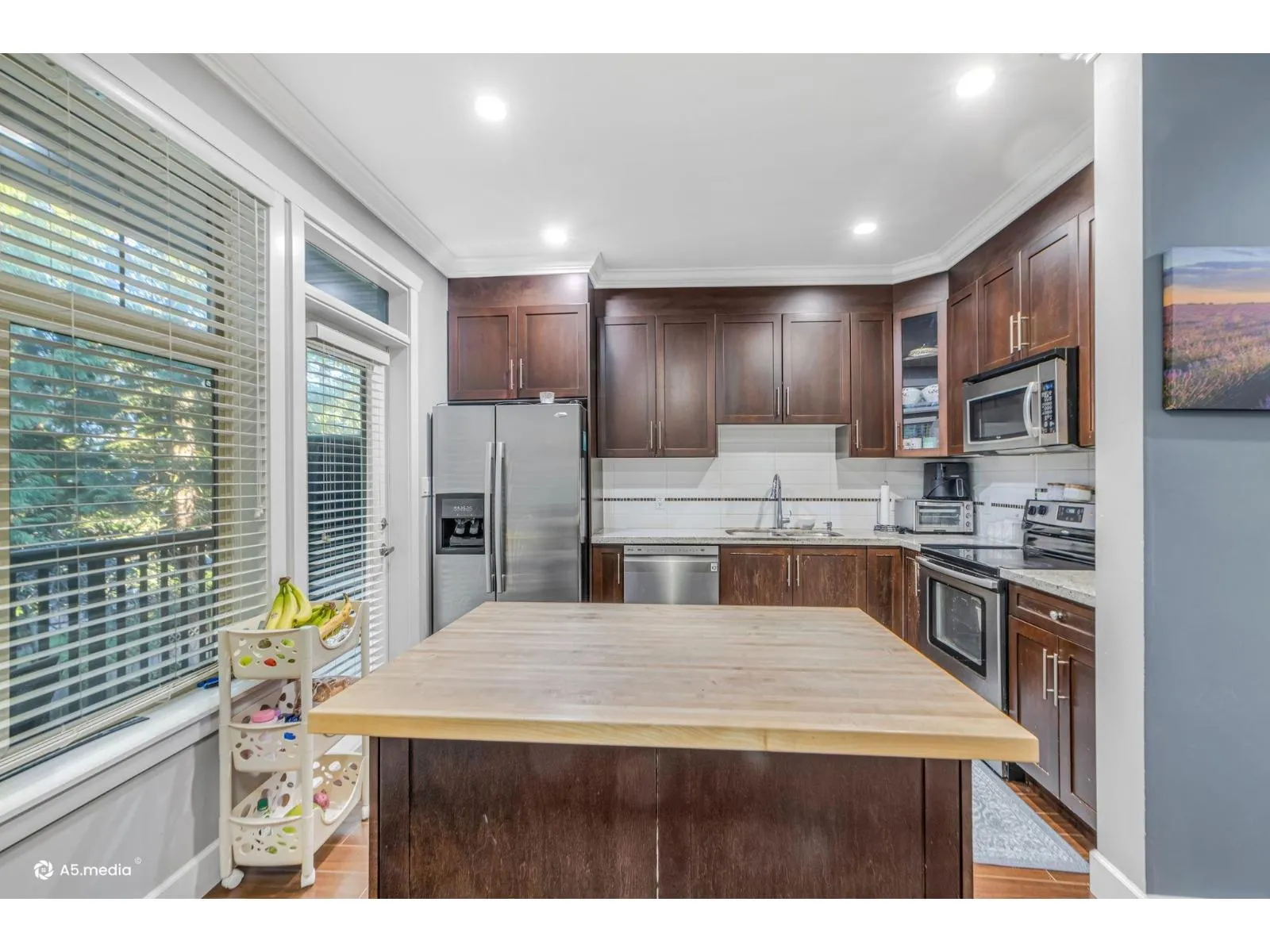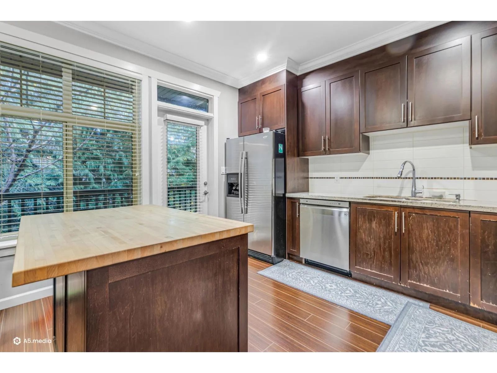 Dubb Villa - a meticulously maintained townhouse offering three generous bedrooms upstairs and 2.5 bathrooms. The main floor features laminate flooring throughout, a modern kitchen with stainless steel appliances, granite countertops, and a deck overlooking a private yard. Enjoy a spacious dining and living area filled with natural light. Conveniently located just steps from grocery stores, coffee shops, and major transit routes. Situated in a quiet corner of the complex, this home is an ideal option for a growing family. Very healthy contingency fund. (id:27476)