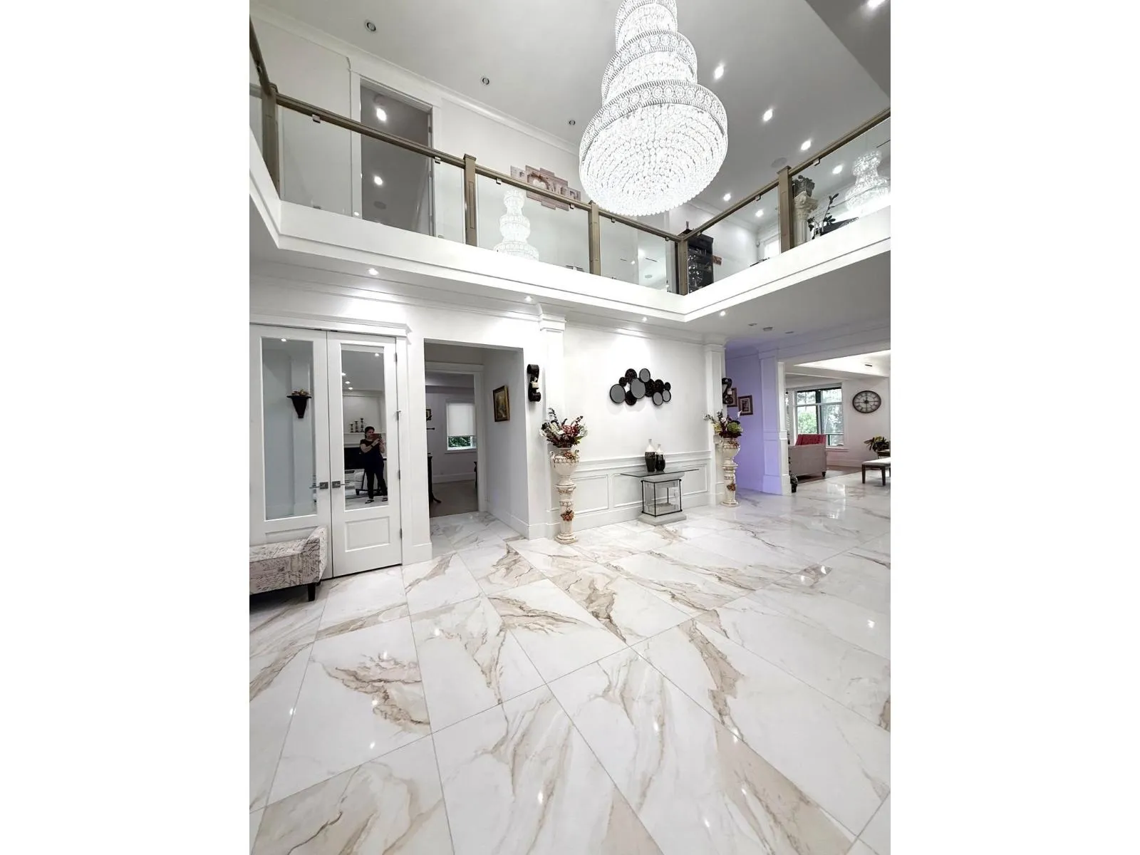 MANSION... Mega House in the most demanding Panorama area of Surrey with 8 bedrooms 7 full and 2 half bathrooms, & HIGH Ceiling entrance! approximately 7359 sq ft of floor area on 21,000+ sq ft lot. Features LUXURIOUS top of the line finishing. Multiple Master bedrooms & all bedrooms come with their own washroom. One legal suite with separate own laundry. Floor heating, Asphalt roof, AC, spice kitchen, long driveway, and much more. Custom built house with beautiful design and finishing throughout. Double car garage & 3 car garage on the back with roof patio for summer entertainment. Built in barbeque on the huge deck with ocean view for get together. Must see home. (id:27476)