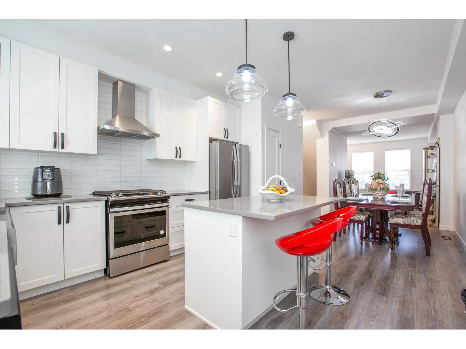 Welcome to Crimson by RDG! This like-new townhome in the heart of Downtown Cloverdale features a bright, open-concept main floor and a modern kitchen with shaker cabinetry, stainless appliances, and a large entertainer's island. With two spacious bedrooms, a versatile den, and three bathrooms, the layout offers exceptional flexibility. Enjoy outdoor living on the large deck with a built-in gas BBQ hookup, and benefit from effortless parking with an extra-wide garage and a full-sized driveway. Located just steps from Starbucks, groceries, schools, and local shops, this home offers the ultimate walkable lifestyle. (id:27476)