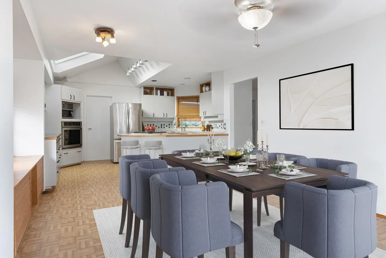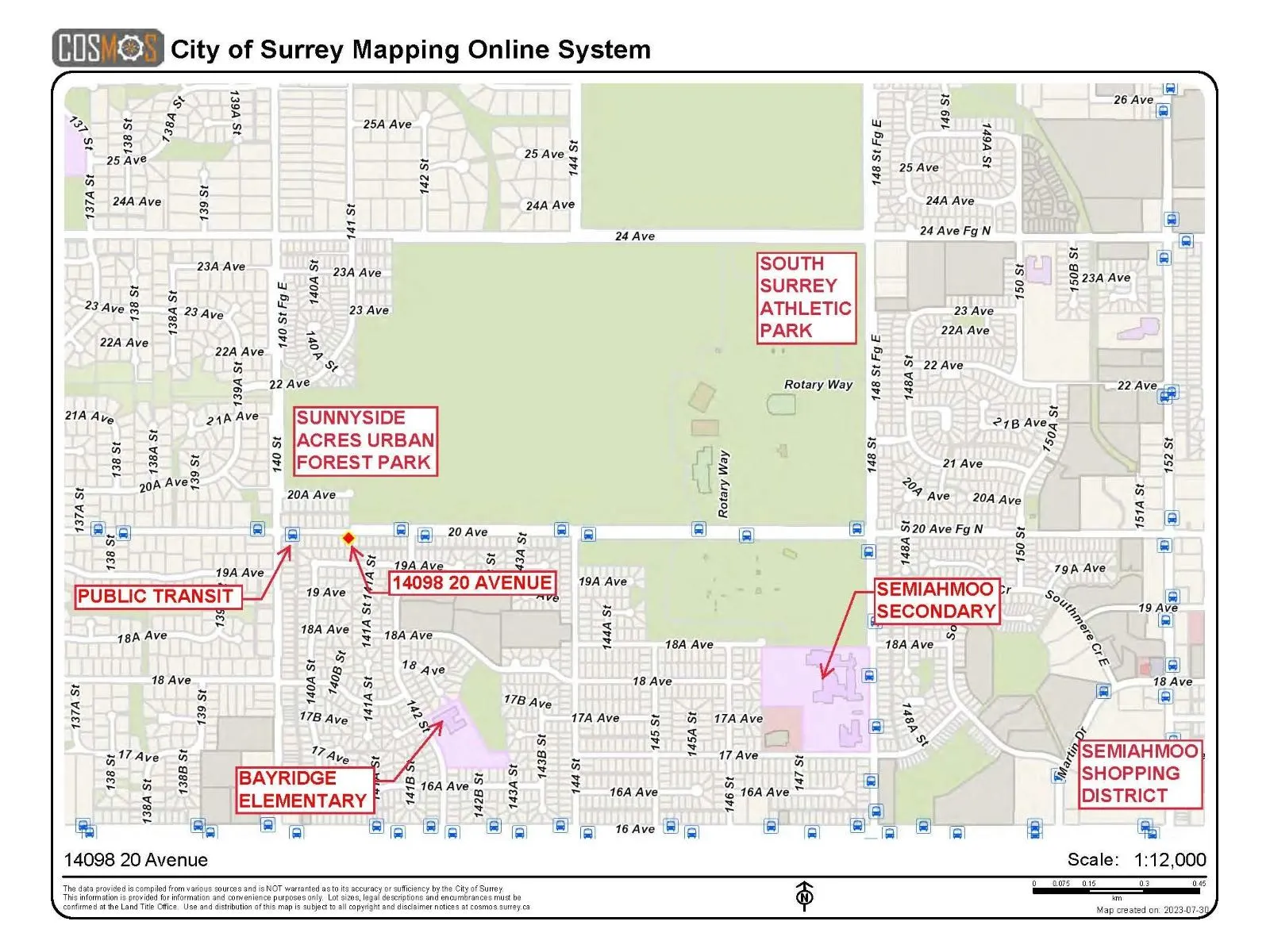 Rancher in Desirable Sunnyside/Elgin neighbourhood. Situated on a large 7,109 SF lot. Privacy fenced and gated. Backyard with South exposure and landscaped. Inside is welcoming, Maple floors, natural gas fireplace, vaulted ceilings & skylights provide lots of sunlight. Dual sliders to garden. Vaulted kitchen eating area overlooking and leading out to southern exposed garden. Bay window in bedroom 2, large main bathroom and second bath with walk-in jetted safe spa. Primary faces the gardens. Hot water on demand and central A/C. Double garage plus storage shed. Located close to Sunnyside Acres, enjoy the parks and trails. Easy walk to Rec Centre, Indoor Pool and Softball City. Best School catchments: Bayridge Elem & Semiahmoo Sec. Also, great home for downsizers. Virtual staging utilized. Tenants vacating April 30th. (id:27476)
