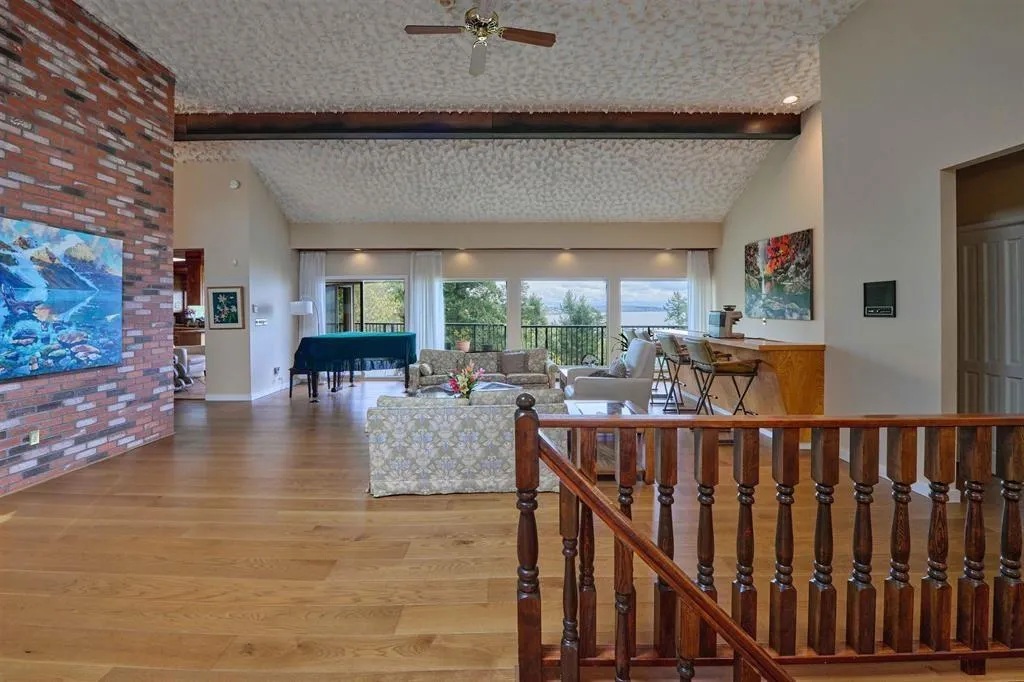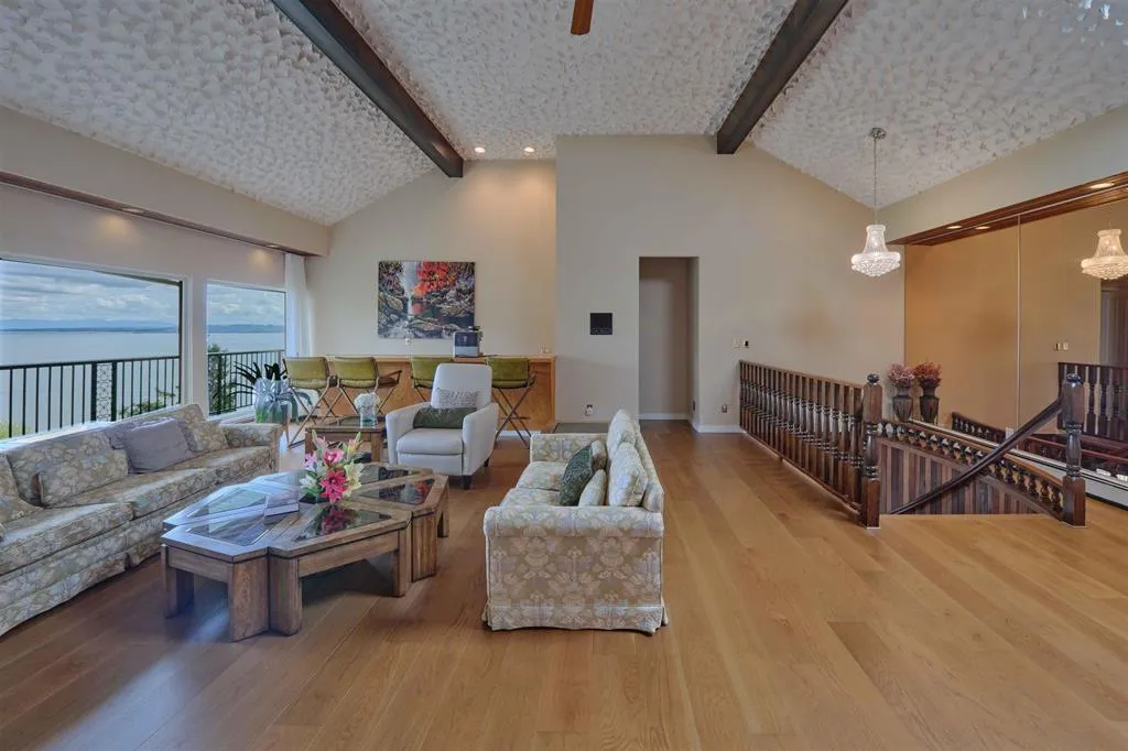 Discover this one-of-a-kind property offering unobstructed 180+ degree panoramic views stretching from White Rock to Mt. Baker to the Gulf Islands. A true West Coast retreat, this home delivers a private, resort-like with irreplaceable ocean vistas-complete with soaring eagles.Perched on a generous lot with subdivision potential, the home features a spacious, light-filled layout with vaulted ceilings, four skylights, and expansive sun-drenched deck space perfect for soaking in the scenery.Inside, you'll find a media room, games room, and a gourmet kitchen accented with rich California redwood, blending rustic charm with modern comfort. (id:27476)