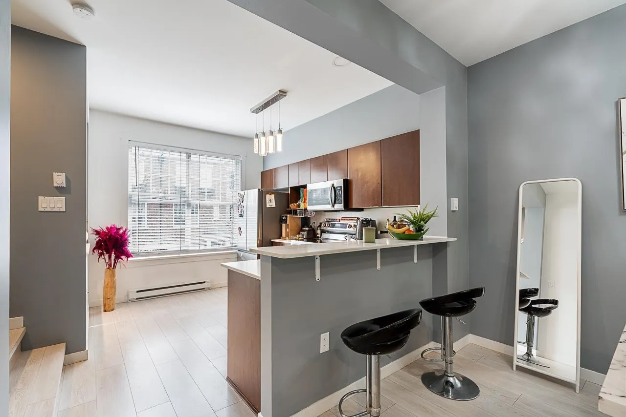 Welcome to Nature's Walk in the heart of Sullivan Station, one of Surrey's most desirable neighbourhoods. This beautifully maintained townhouse offers 2 spacious bedrooms upstairs plus a large den and 3 bathrooms, ideal for growing families or those working from home. The open-concept main floor features a modern kitchen with ample cabinetry, generous dining and living areas, and large windows that fill the home with natural light. Enjoy a private setting within a well-kept complex, just steps to parks, schools, shopping, and transit, with easy access to major routes for effortless daily living. (id:27476)
