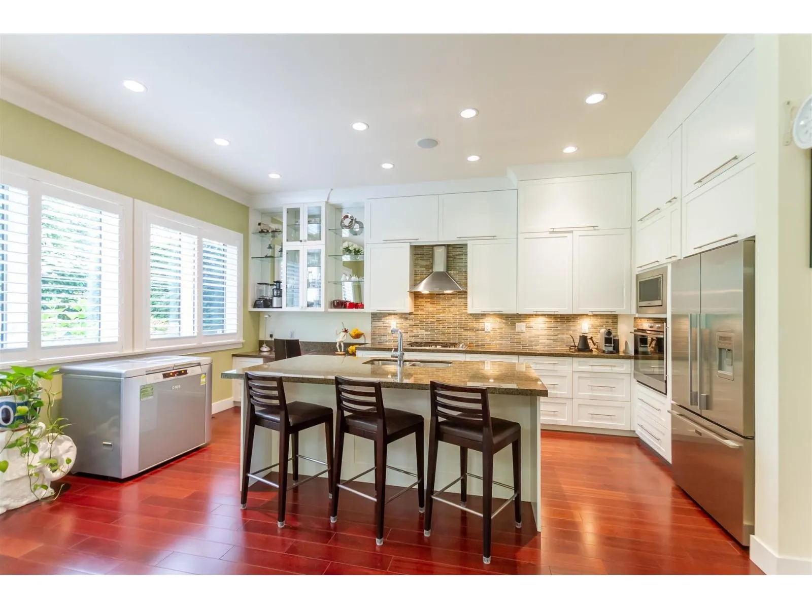 Welcome to WILLS CREEK, a prestigious townhome community in Grandview, South Surrey. This beautifully maintained 4 bedroom home features 10' ceiling, creating a bright and spacious environment. The chef-inspired kitchen boasts granite countertops, stainless steel appliances, and upgraded extended cabinet. Enjoy year-round comfort with Geothermal heating/ AC. Thoughtful upgrades including Floor Heating on upper and lower levels, California shutters, and expanded patio backing onto a tranquil Greenbelt. Resort style amenities including an outdoor pool, hot tub, gym, clubhouse and beautifully maintained gardens. Walking distance to the Southridge School, and close to top rated public schools, Grandview Aquatic Centre, shopping, golf and HWY 99. **OPEN HOUSE : Mar 08, Sun (2-4pm) (id:27476)