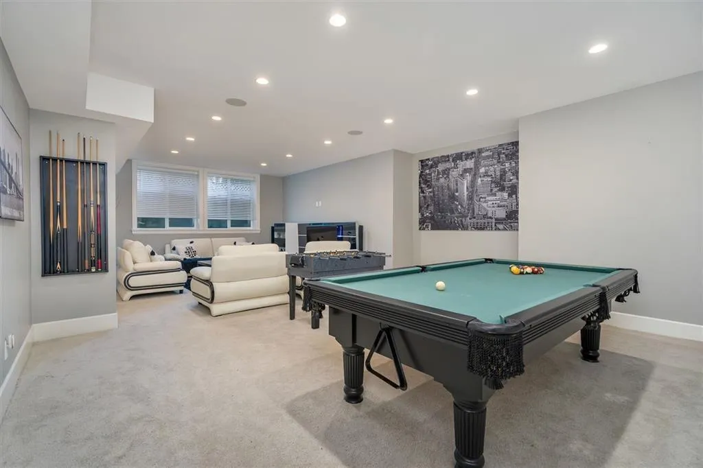 This exceptional custom home has exquisite craftsmanship and premium features. The well-designed floor plan includes a stunning great room, dining area, and covered patio. The gourmet kitchen has high-end appliances, a wine bar, and a spacious quartz-topped island, with abundant built-in cabinetry throughout. The upper level has a master bedroom with a luxurious ensuite, two bedrooms with ensuites, and a loft area. The lower level has a media room, full bath, and another bedroom, with a rec room that has its own entrance and can be converted into one or two bedrooms. The home's interior/exterior sound system adds to its allure, making it a must-see for those seeking a luxurious and functional living space. New refrigerator, freezer, and hood fans. (id:27476)