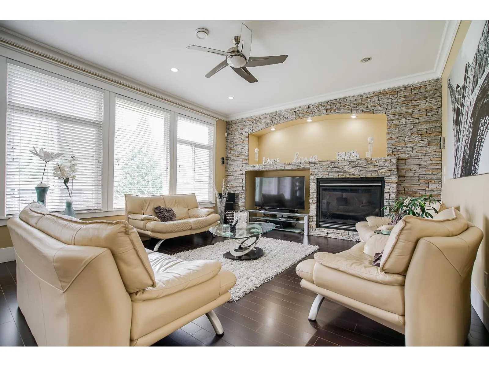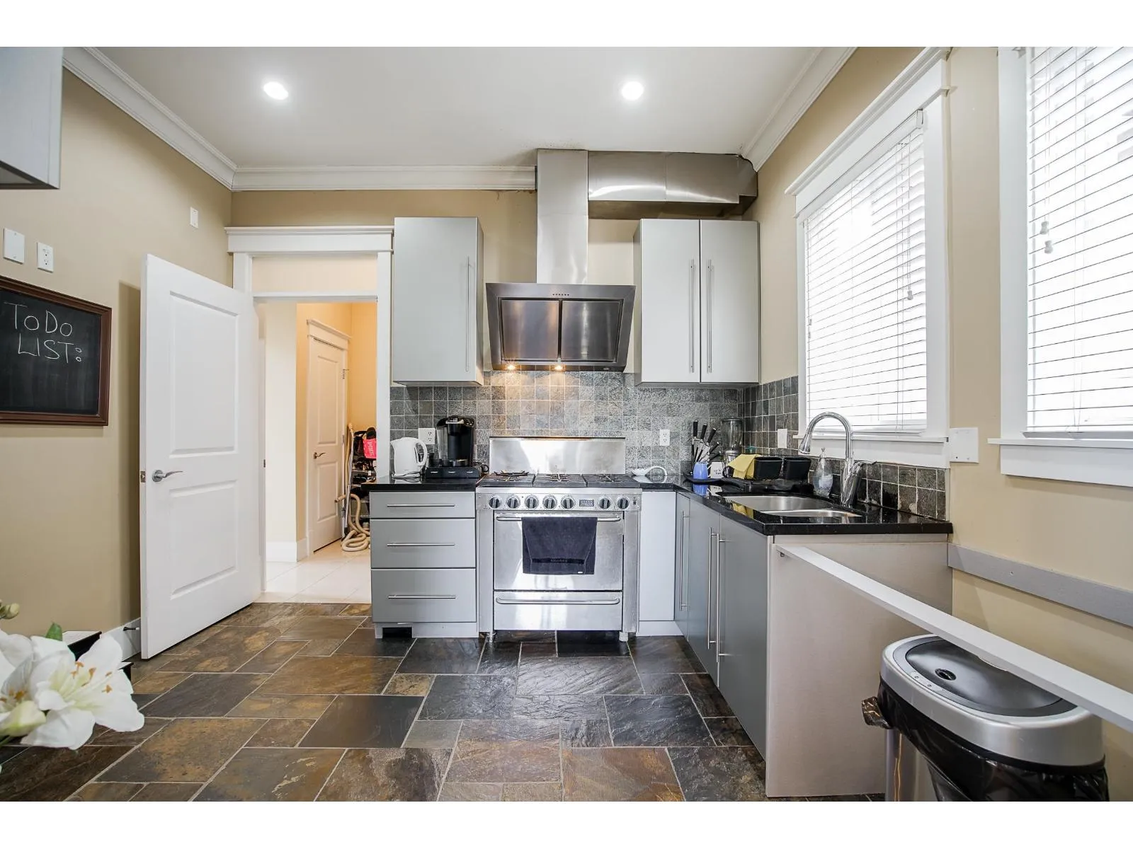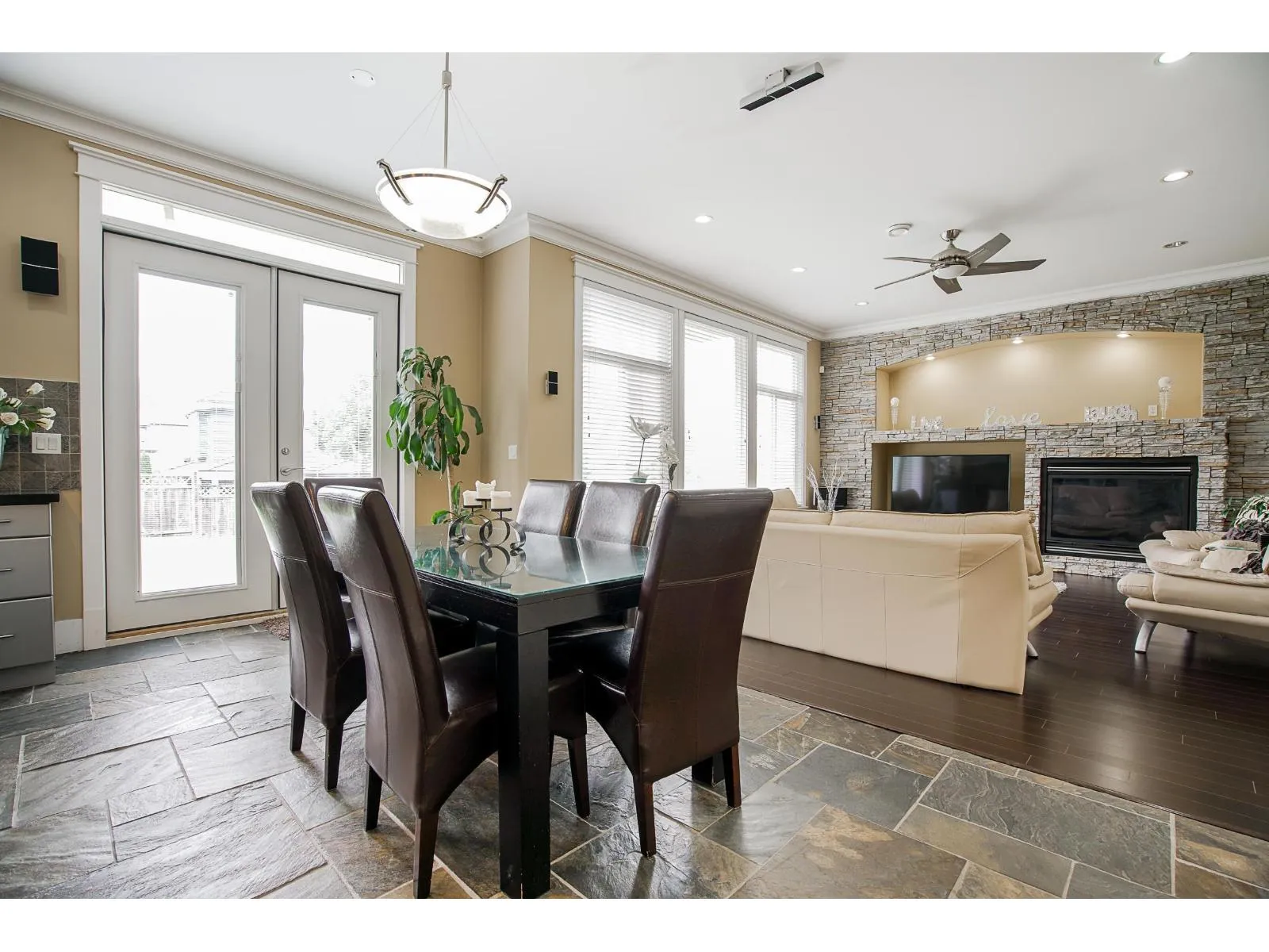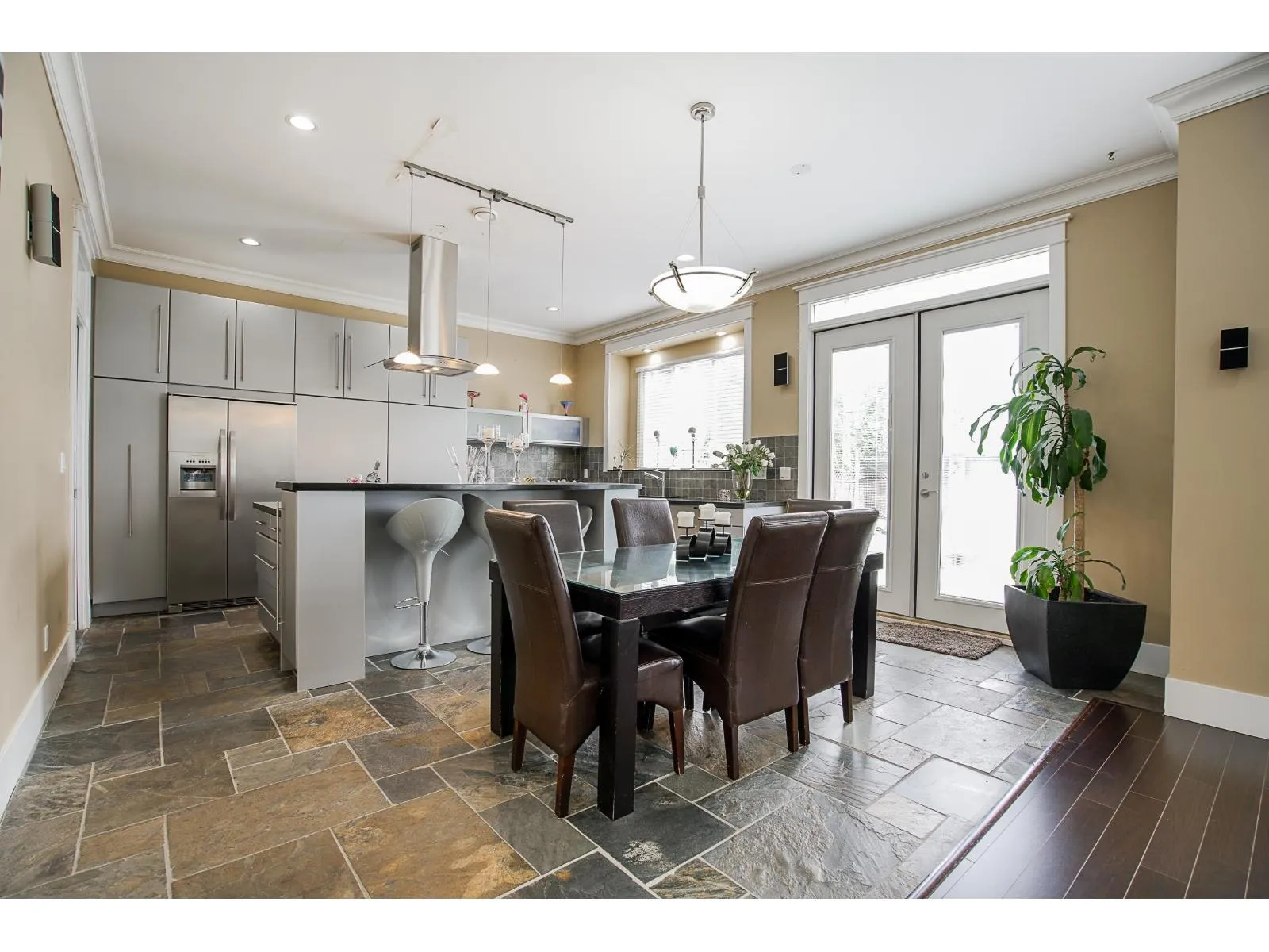 Welcome to this beautifully custom-built home in a quiet neighbourhood, offering almost 4,800 sq ft of luxury living. Designed with quality craftsmanship, it features an open-concept layout with soaring ceilings, oversized tiles, hardwood flooring, and elegant finishes throughout. The European-style main kitchen and separate spice kitchen include soft-closing drawers and Black Galaxy granite countertops. Radiant in-floor heating spans all three levels, along with 4x4 skylights, tile roof, Hardyplank siding, central A/C, and built-in vacuum. Upstairs offers 4 bedrooms and 3 baths, including two primary bedrooms with ensuites and jacuzzi tubs. Two 2-bedroom suites provide excellent rental income potential. (id:27476)