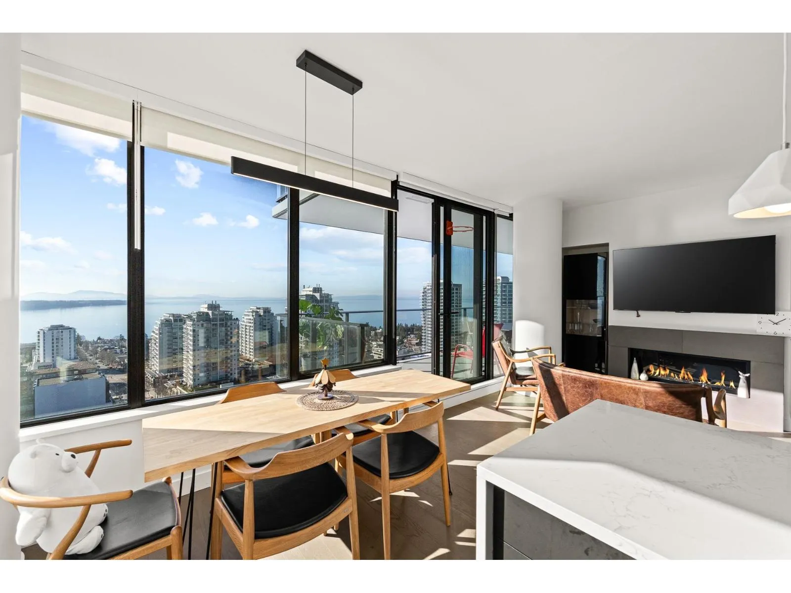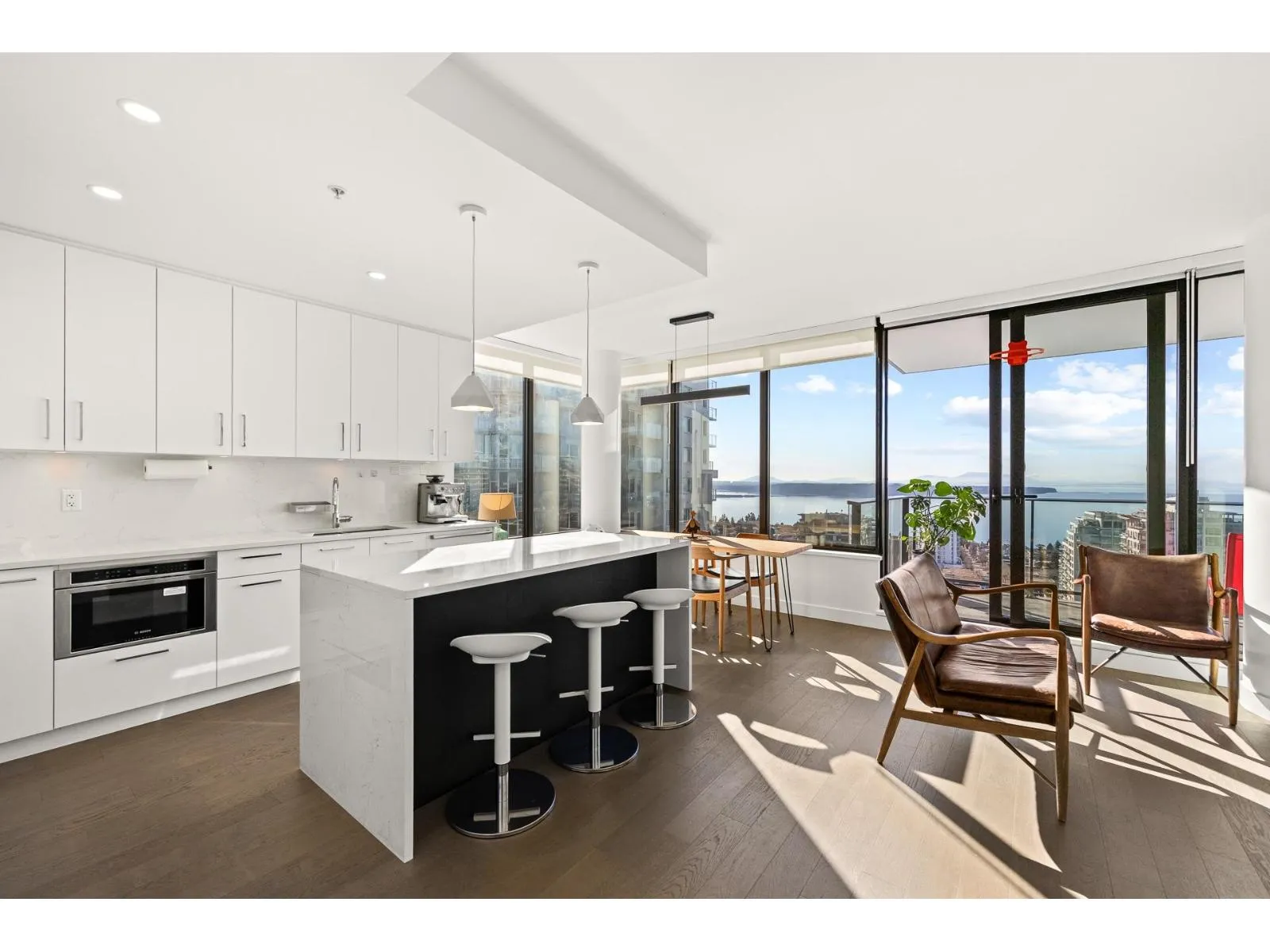 Experience elevated coastal living at Soleil, in the heart of White Rock. Perched on the 21st floor with a prized south-facing exposure, this stunning residence offers breathtaking, unobstructed panoramic OCEAN VIEW from sunrise to sunset. Thoughtfully designed, this spacious 2-bedroom plus bedroom-sized flex home provides exceptional versatility-perfect for a home office or guest room. The modern open-concept kitchen features premium Bosch appliances, and elegant finishes throughout. Meticulously maintained and in almost brand-new condition, this home shows beautifully. Comes with TWO side by side EV ready full-size parkings and one storage locker.Steps to shops, restaurants, beach, and all that vibrant White Rock living has to offer. Luxury, location, and Lifestyle-this one has it all. (id:27476)