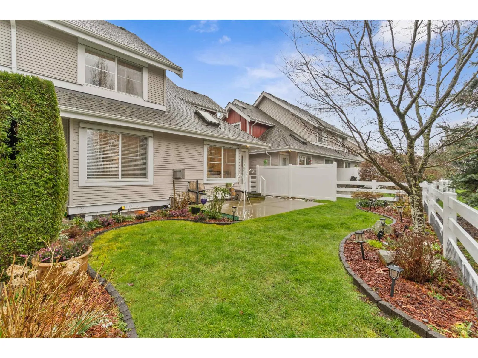 Welcome to Lexington, a beautifully maintained gated townhome in the heart of Cloverdale. Quietly positioned at the back of the complex, this private home offers over 3,100 sq ft of bright, well-appointed living space with no rear neighbours. The main floor features a spacious primary bedroom with walk-in closet and 5-piece ensuite. Updated kitchen with white cabinetry, granite counters, stainless appliances, and an island. Vaulted ceilings, large windows, and gas fireplaces in both living and family rooms add warmth and light. Fully finished basement with rec/flex space, full bath, and ample storage. Double garage. Clubhouse with gym and amenities. Close to Northview Golf & Country Club, Parks, Schools, and Shopping. (id:27476)
