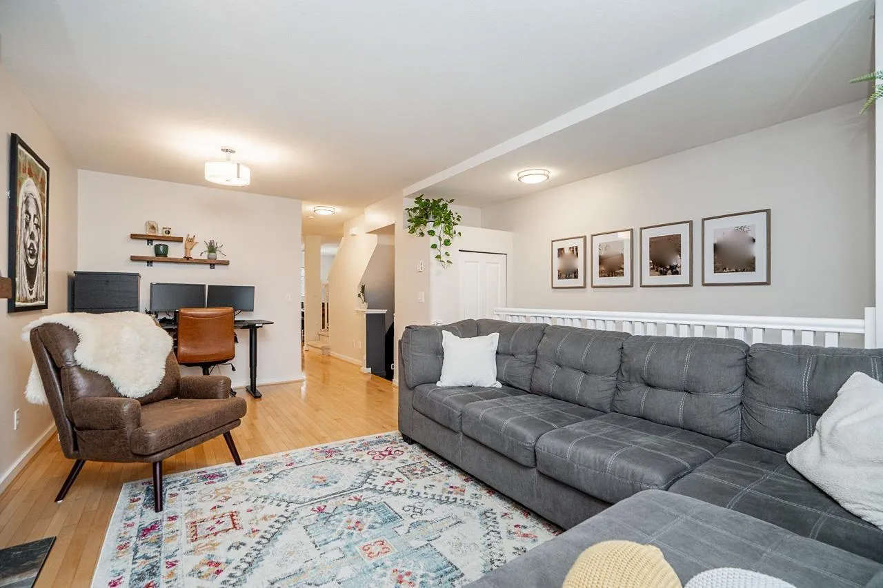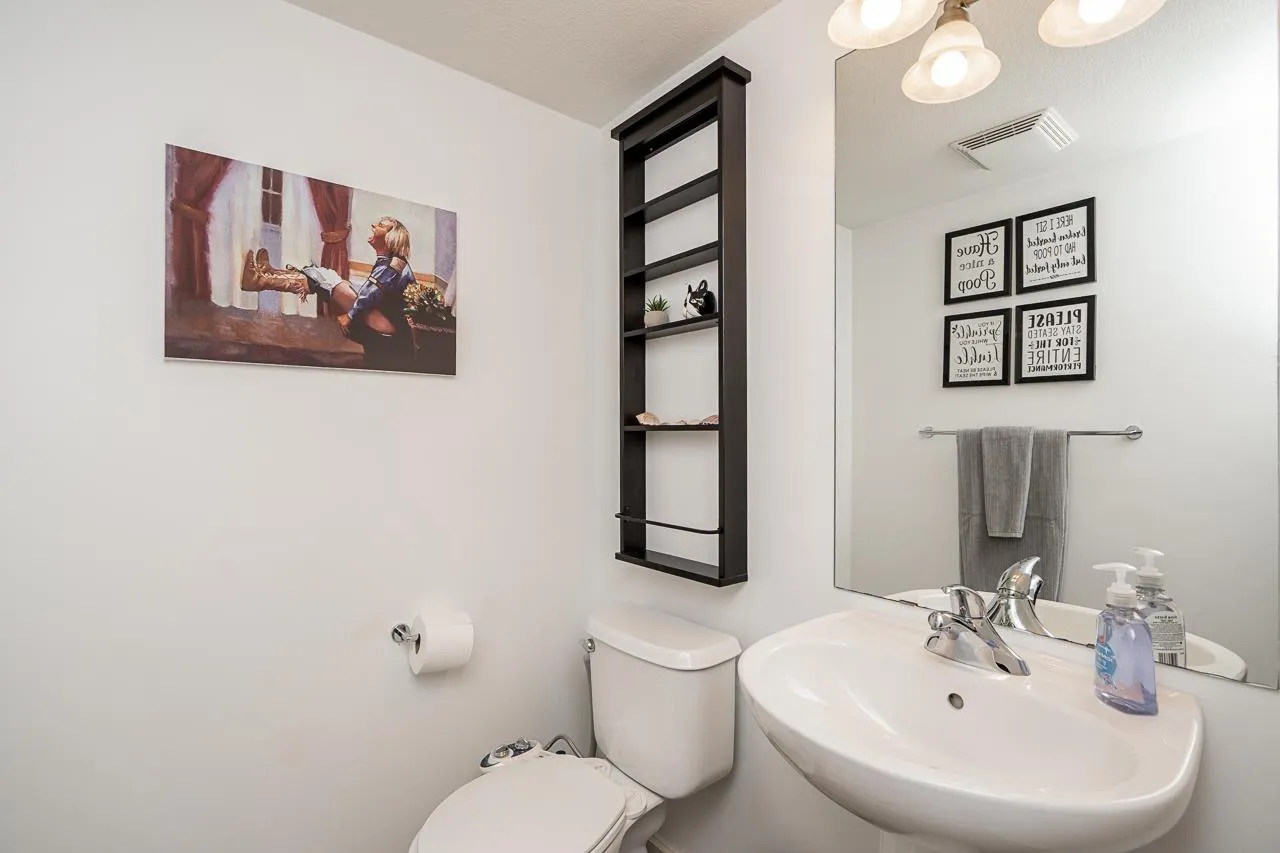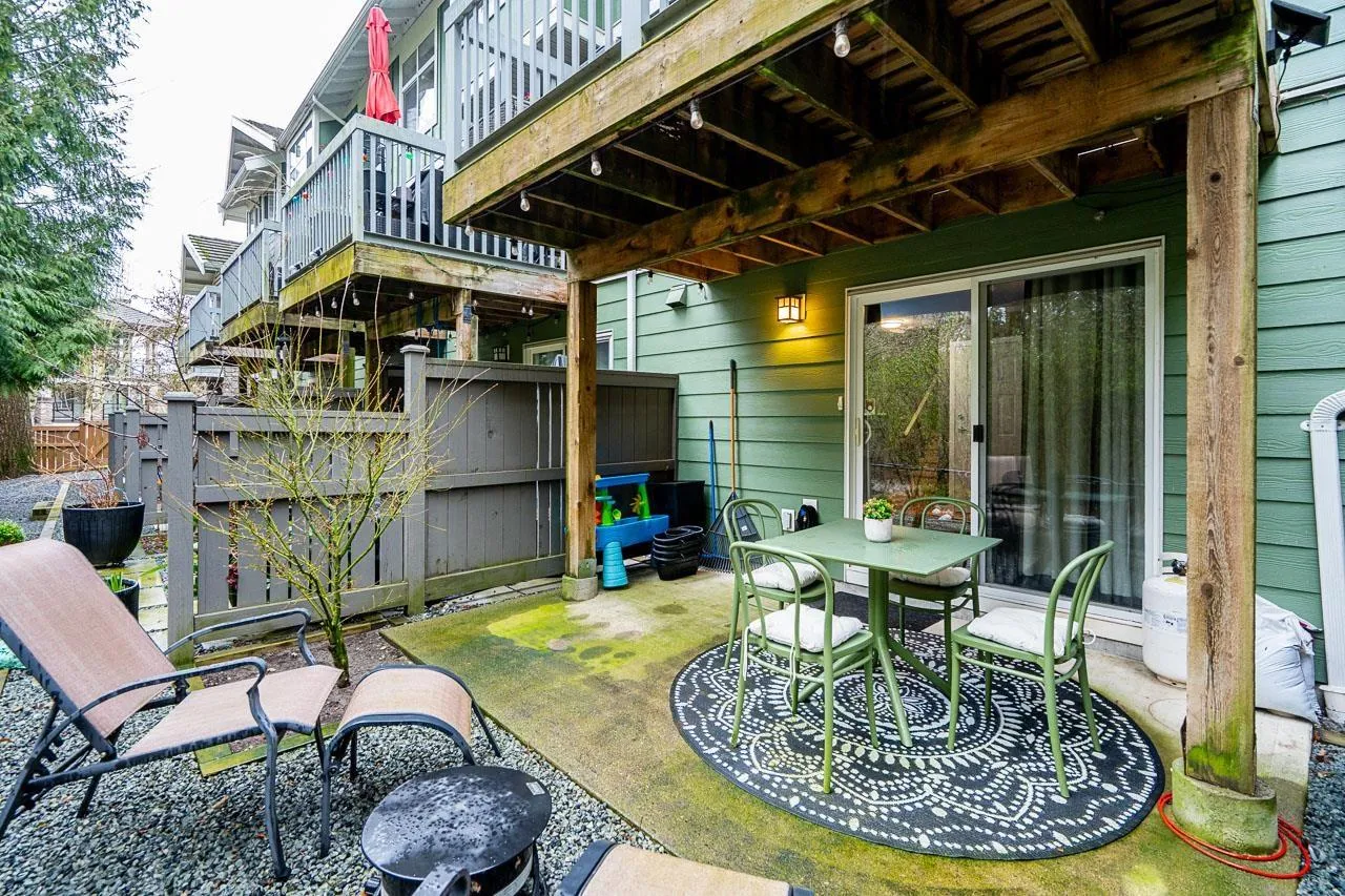 Solay by Adera presents a charming gated community nestled in the desirable Rosemary Heights neighbourhood. This 3 bdrm, 2 bath home is ideally located backing onto a serene private greenbelt. The main floor features a spacious layout with a cozy living/dining area highlighted by a layered stone fireplace. The functional kitchen is complemented by a family area and an additional eating space. Upstairs, the primary bedroom impresses with a vaulted ceiling and a large semi-ensuite while secondary bedrooms and laundry complete the upper level. The lower floor offers a generous games/media room leading to a rear patio/yard (R/I for bathroom also). Fantastic complex amenities includes clubhouse, pool, exercise facilities and children's play area. A great family home! O/H Sat Mar 7., 2 - 4pm. (id:27476)