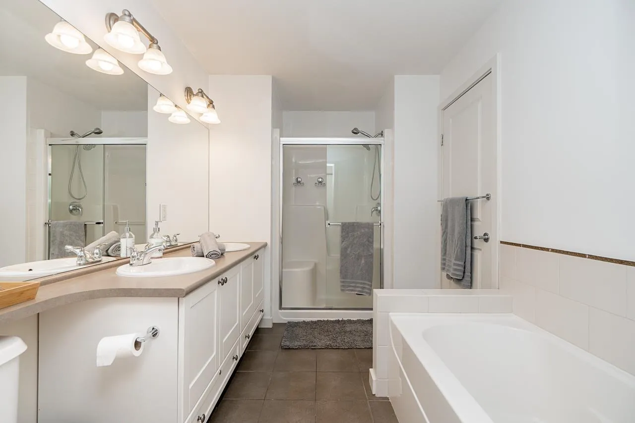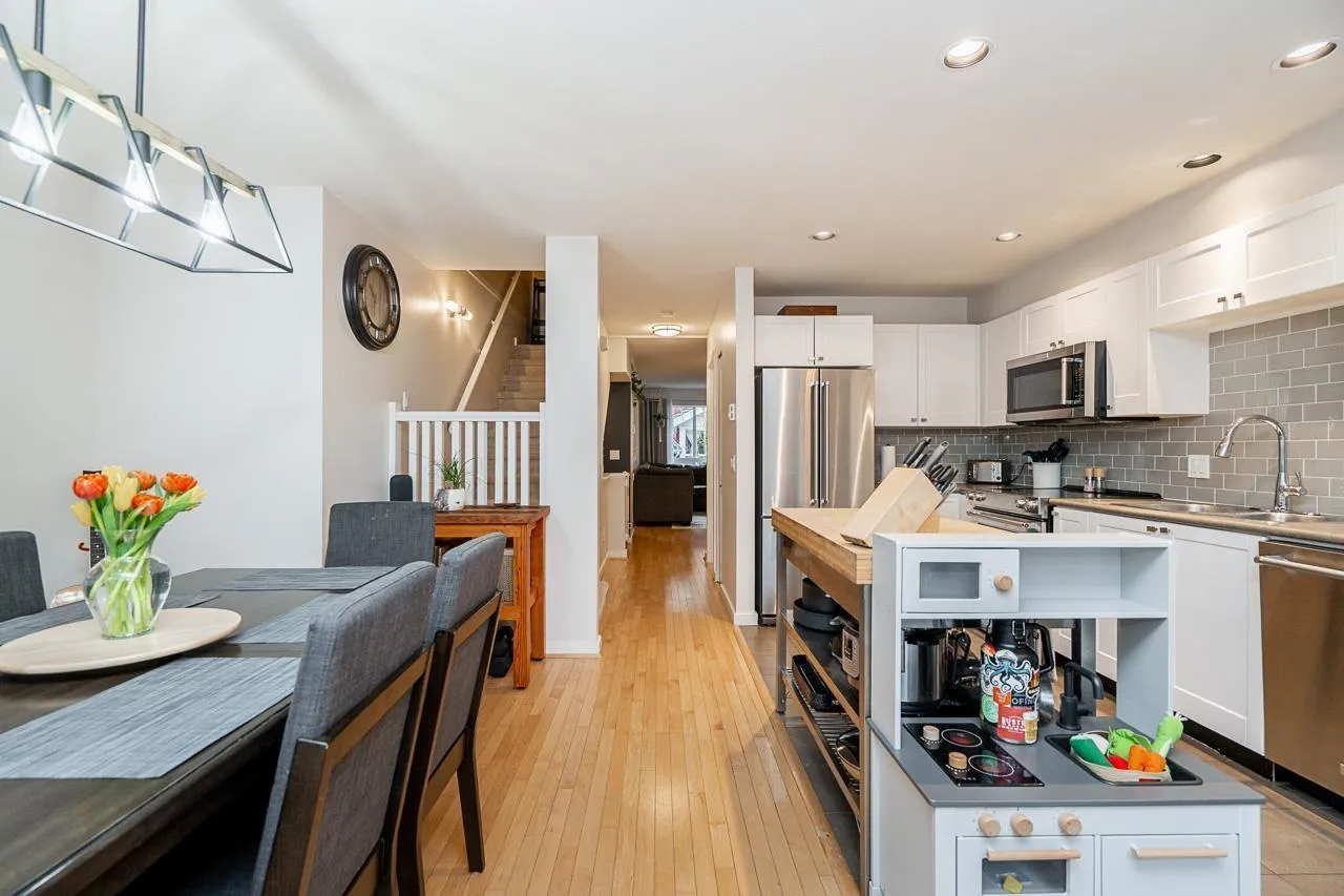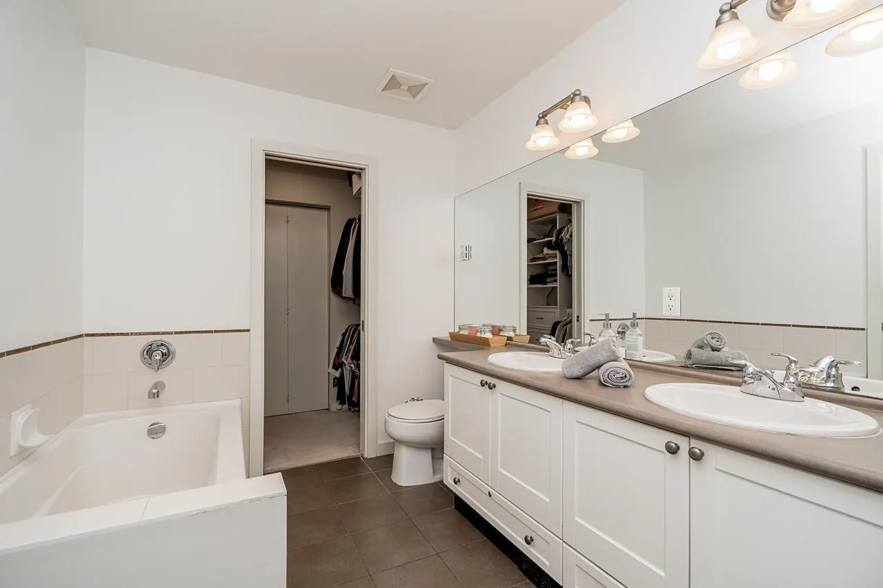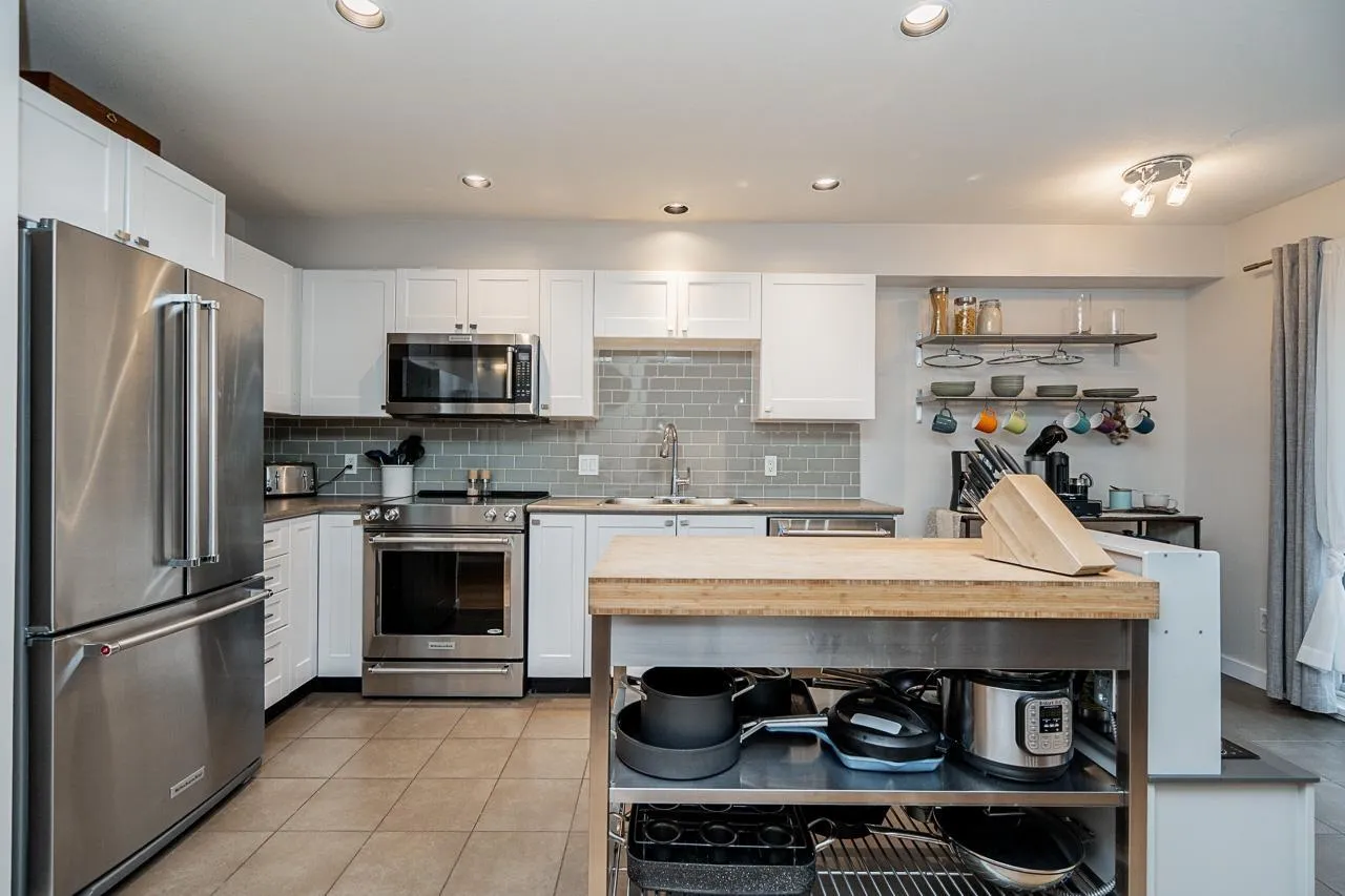 Solay by Adera presents a charming gated community nestled in the desirable Rosemary Heights neighbourhood. This 3 bdrm, 2 bath home is ideally located backing onto a serene private greenbelt. The main floor features a spacious layout with a cozy living/dining area highlighted by a layered stone fireplace. The functional kitchen is complemented by a family area and an additional eating space. Upstairs, the primary bedroom impresses with a vaulted ceiling and a large semi-ensuite while secondary bedrooms and laundry complete the upper level. The lower floor offers a generous games/media room leading to a rear patio/yard (R/I for bathroom also). Fantastic complex amenities includes clubhouse, pool, exercise facilities and children's play area. A great family home! O/H Sat Mar 7., 2 - 4pm. (id:27476)
