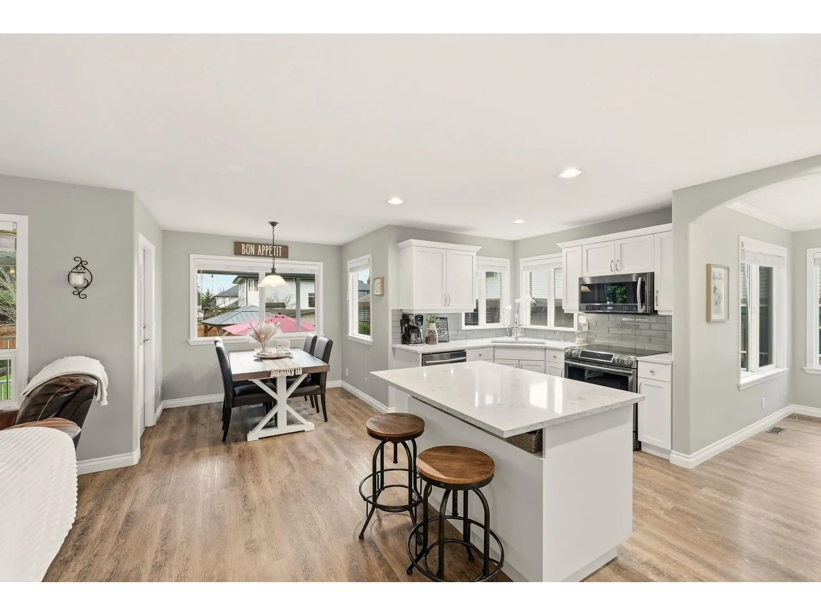 First time on the Market! Beautifully renovated Cloverwoods 6bds & 4baths home with fully self-contained 2bdrm unauthorized suite. All white kitchen w/island, quartz counters, black s/s appliances. 4bds up, primary w/walk-in & 5pce ensuite. Fenced south facing b/yard w/covered sundeck & large patio area with gazebo for those w/end bbqs & storage shed too. New high-end roof w/full transferable warranty, high efficiency furnace & extra parking. Lots of upgrades throughout & all beautifully maintained. (id:27476)