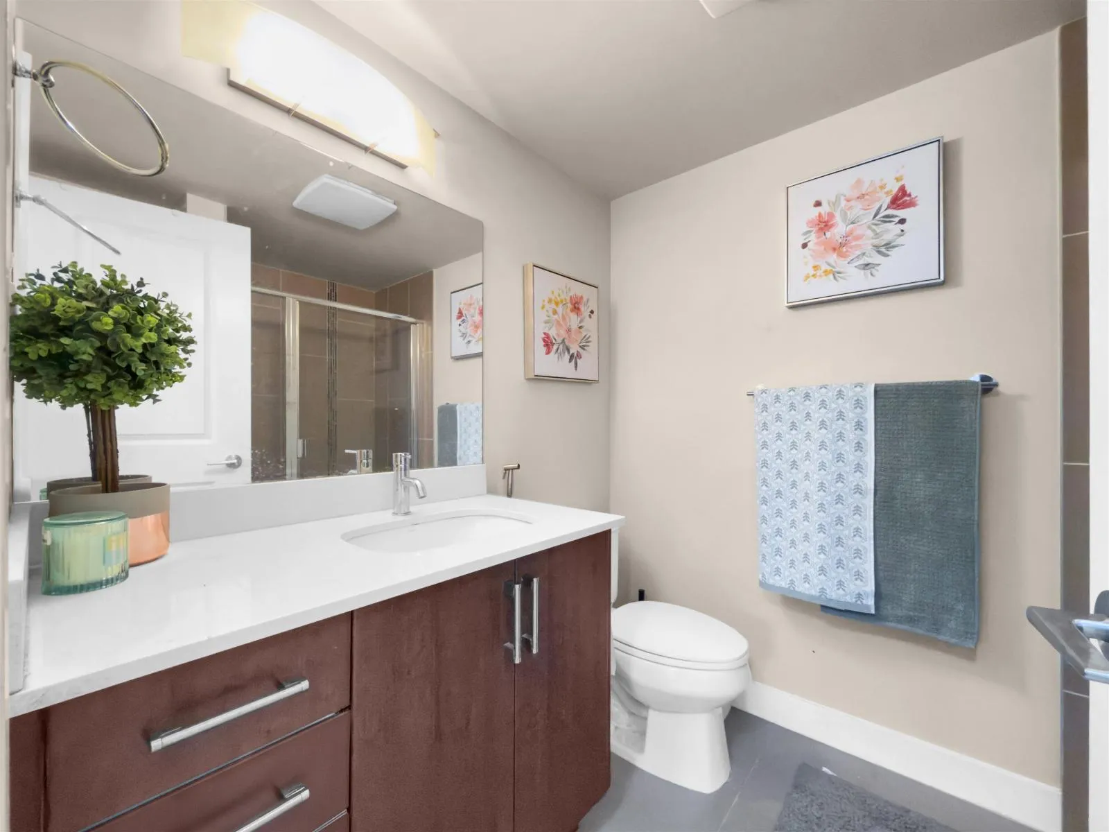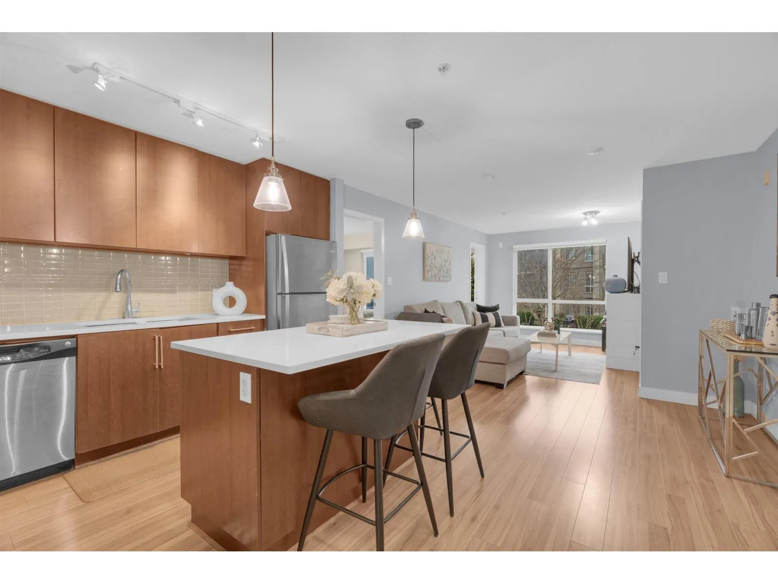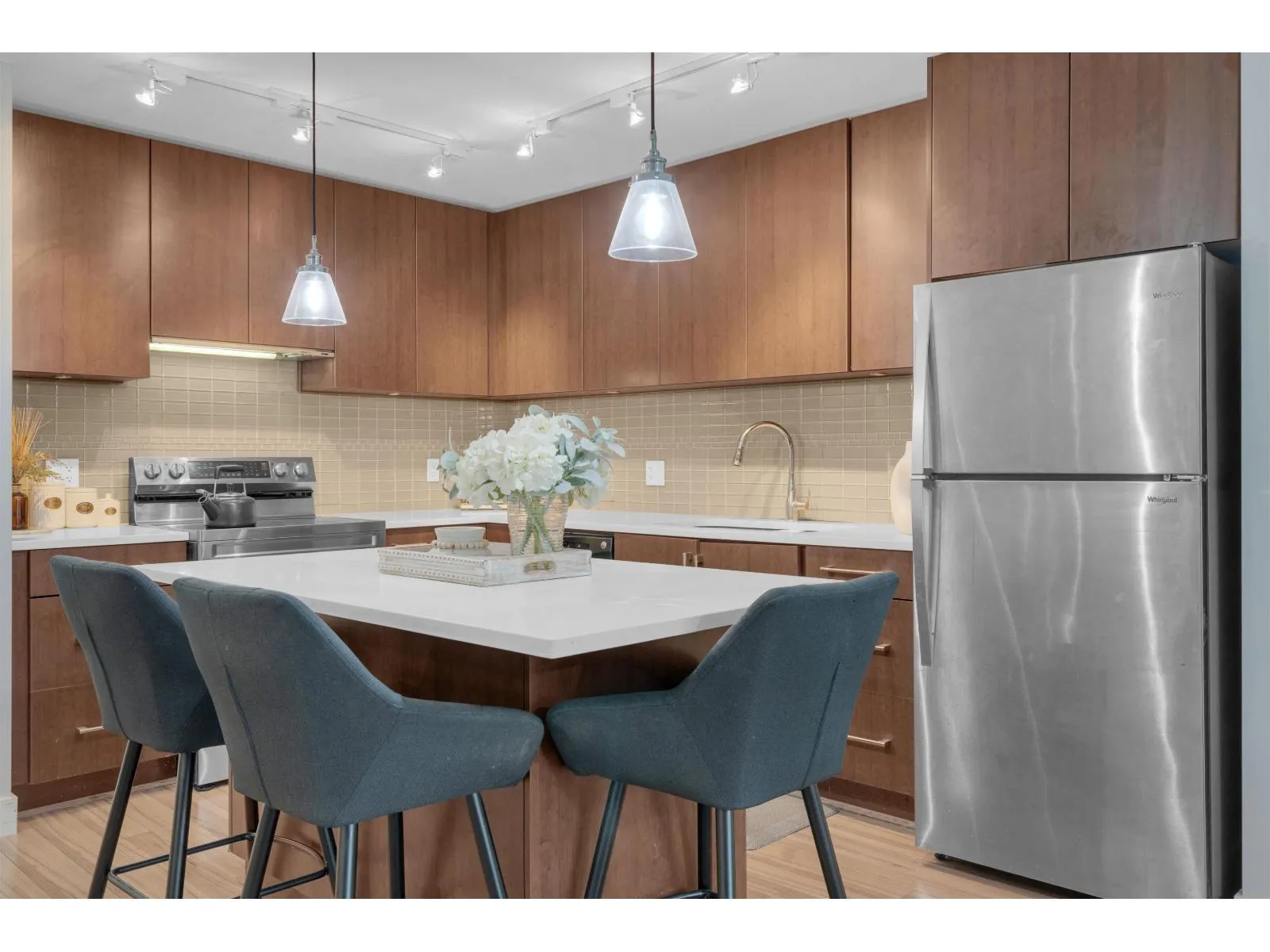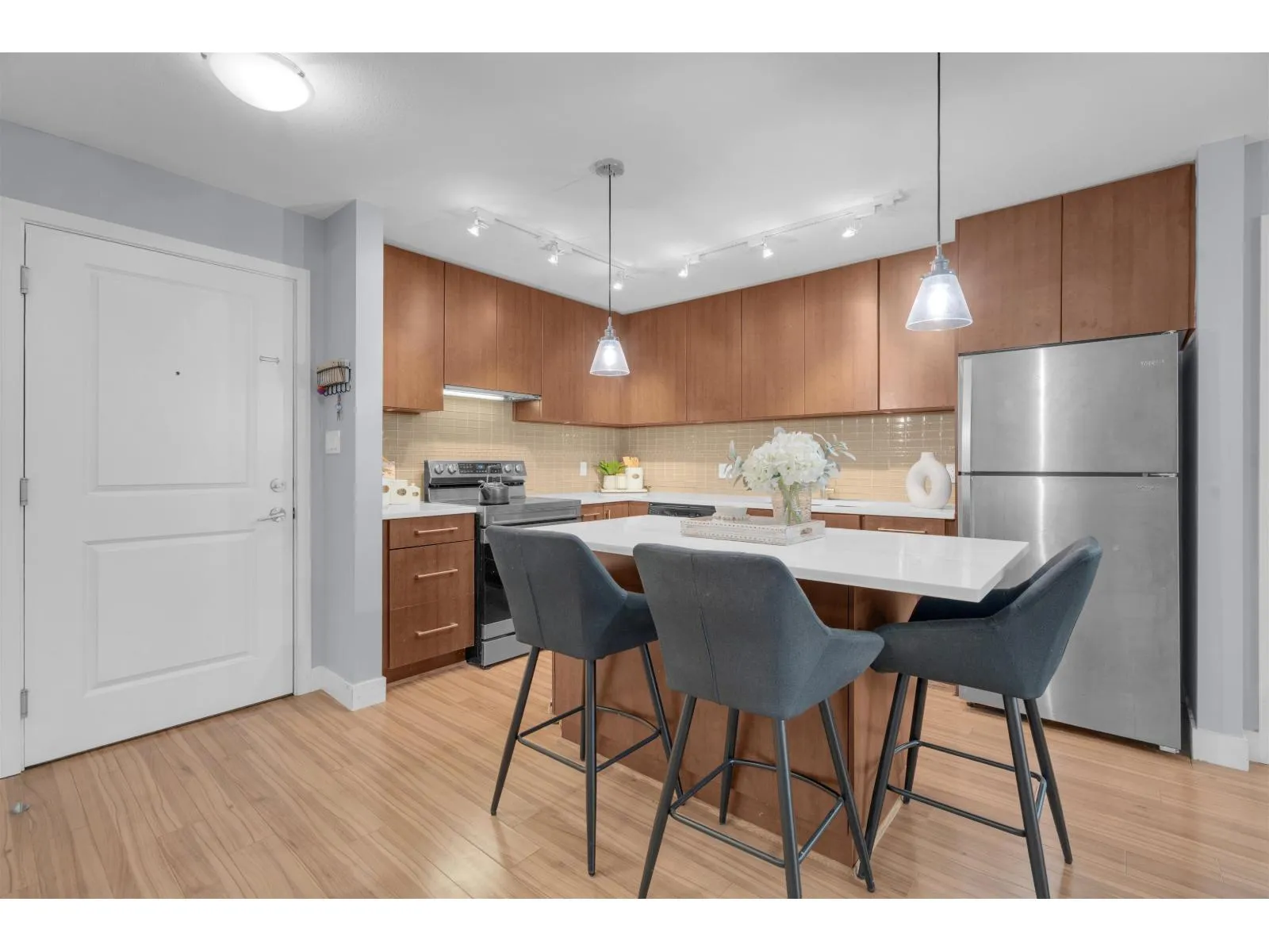 Experience the pinnacle of urban luxury at Summit House in Morgan Crossing. This sophisticated 2-bedroom, 2-bathroom home features an open-concept layout oversized windows and a gourmet kitchen boasting quartz countertops and a high-end appliances. The floor plan is designed for spaciousness with a private balcony overlooking beautifully manicured rooftop gardens. Nestled in the heart of South Surrey's premier "urban village," you are steps away from over 60 shops, cafes, and restaurants. Top-tier schools include, Sunnyside Elementary and Semiahmoo Secondary. Easy access to Highway 99 and the US border, this home perfectly balances cosmopolitan energy with local charm. Includes secure underground parking and a guest suite. Open House Mar 14 & 15 - 2 to 4 (id:27476)