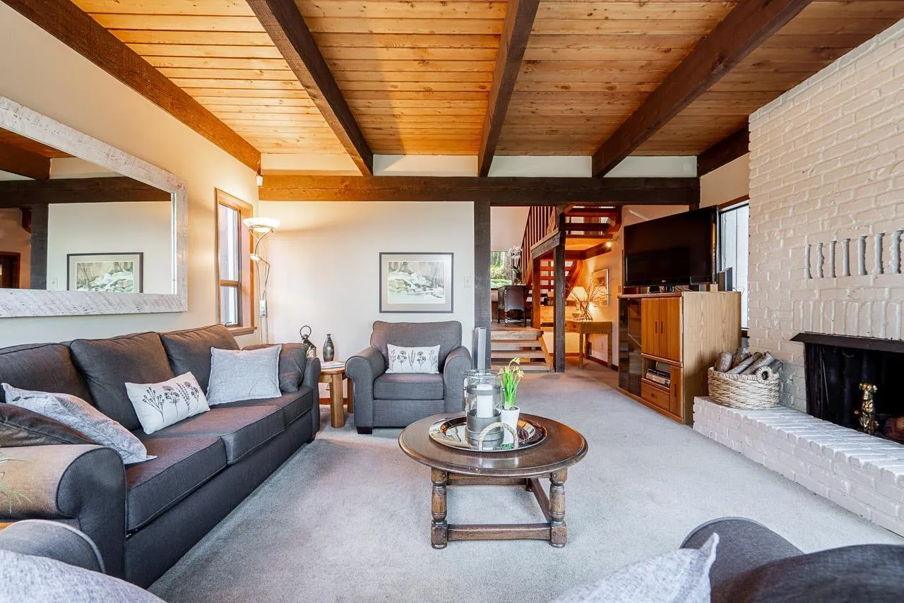 Discover a rare, private ONE ACRE park-like retreat surrounded by nature with breathtaking OPEN VIEWS of the ocean, city skyline, and North Shore mountains. Watch bald eagles soar over the marina! This enchanting West Coast classic features vaulted cedar ceilings, exposed beams with complementary staircase offering 4 spacious Bedrooms, 3 Baths & approx 2600 sq ft of living space. Prestigious Crescent Road location in Ocean Park, just steps to Crescent Beach, with a convenient bus stop at the driveway & elementary school nearby. Future potential under Surrey's 2025 small-scale multi-unit housing initiative. Live In - Build New - or Invest!! (id:27476)