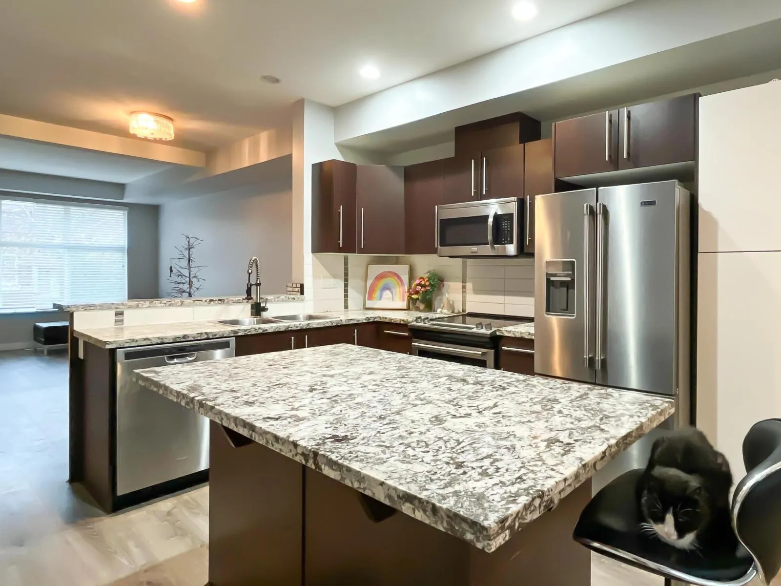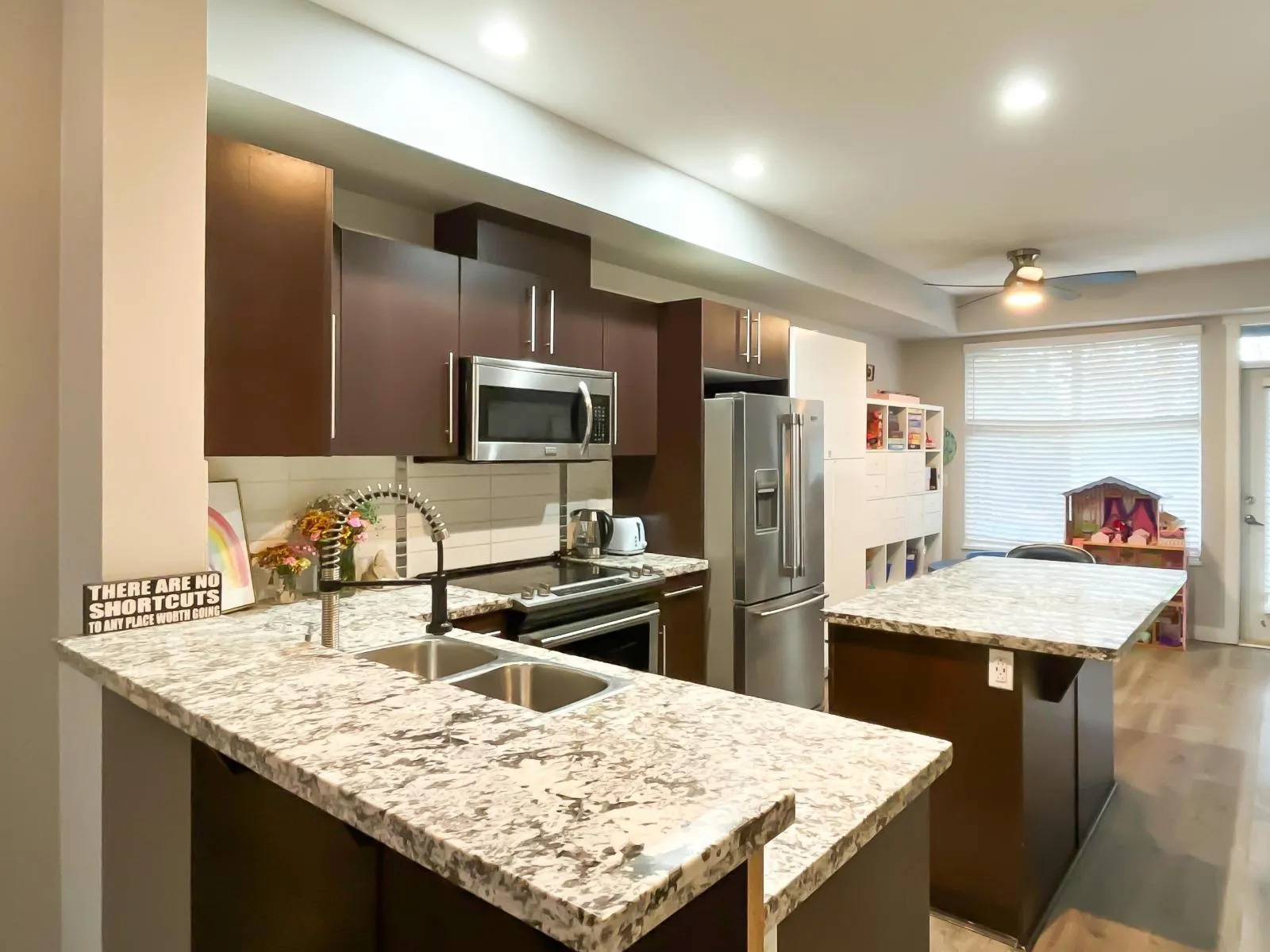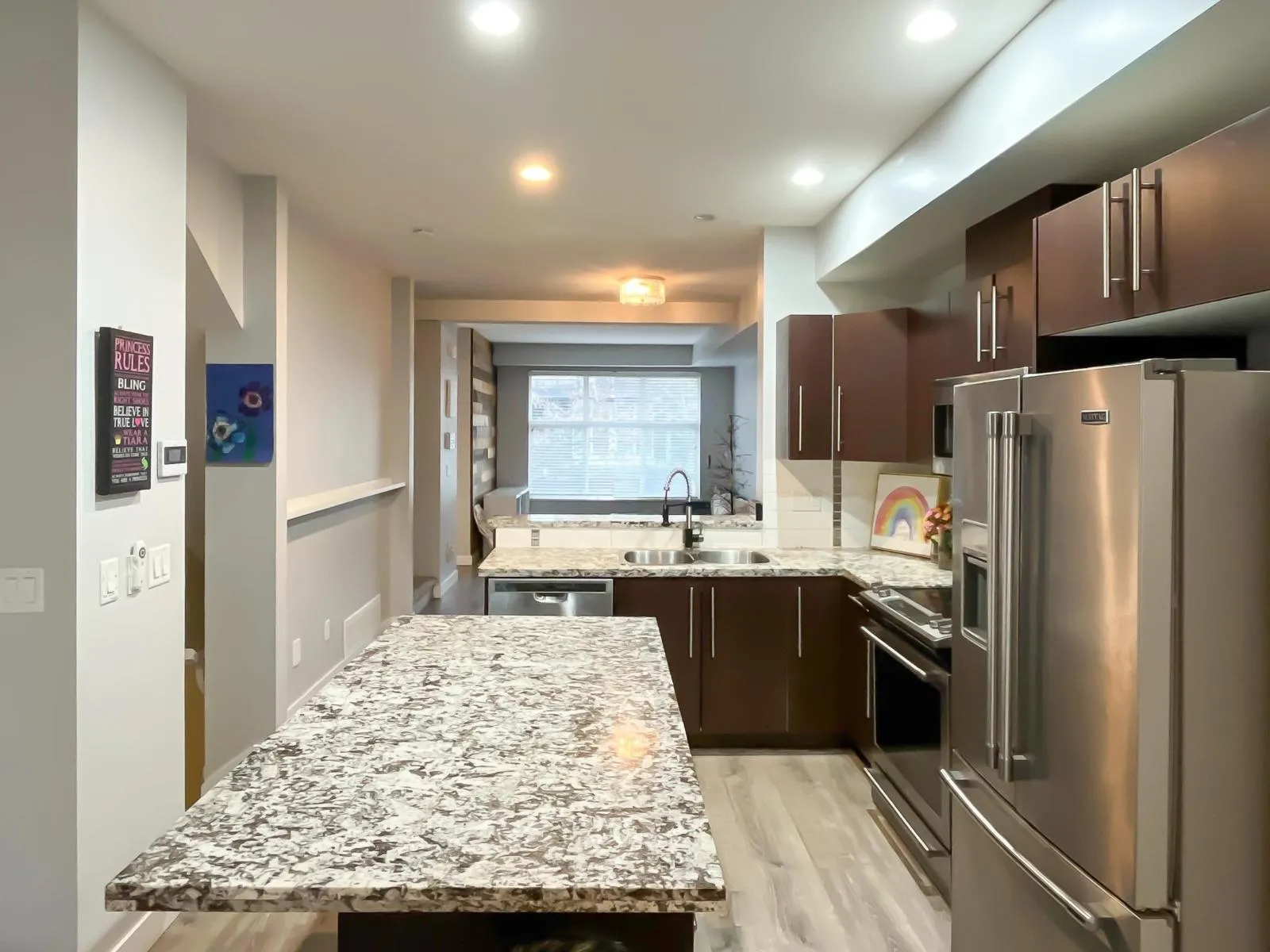 Welcome to this spacious 3-level townhome offers a bright open-concept layout with 9' ceilings on the main floor, a modern kitchen with granite countertops, and generous living and dining areas perfect for everyday living and entertaining. Enjoy multiple bedrooms upstairs including a large primary suite, plus a versatile lower level ideal for a rec room, office, or guest space. Complete with private outdoor space, this well-maintained community is close to schools, parks, shopping, transit, and major routes for an easy commute. (id:27476)