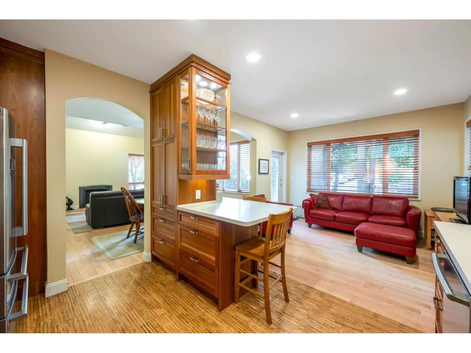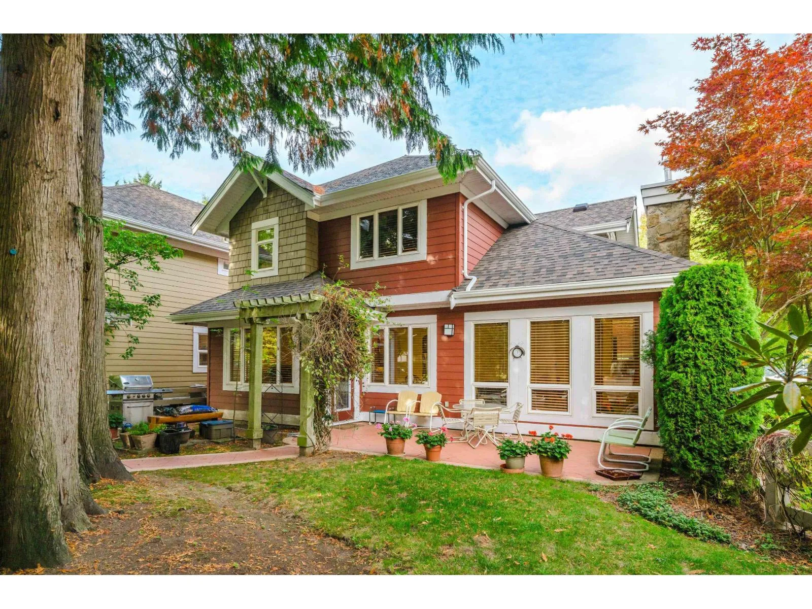 A DETACHED townhome in desirable Highgrove! This home enjoys privacy due to its corner location. The main floor is spacious and airy with a flexible and open floor plan. Dining room sides onto large living room with vaulted ceilings, lots of windows and a lovely gas fireplace. Warm and inviting kitchen has been updated with cherrywood cabinets, Corian counters and pantry with pullouts (2016). Huge primary room has an updated ensuite with a large shower (2016). Loft area is suitable for a home office/studio or even a third bedroom. This home has A/C and a new roof in March 2025. Double garage and no age restrictions. One of the most desirable complexes in South Surrey, close to most amenities and a bus stop close by! HT Thrift or Semiahmoo Secondary catchment area (id:27476)
