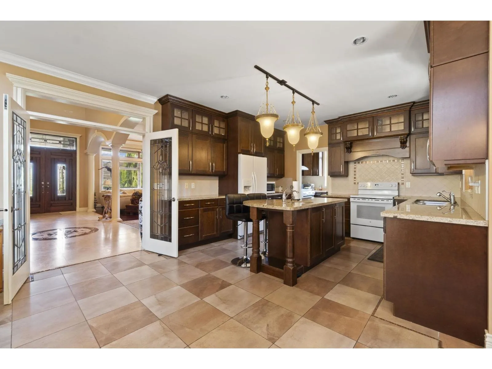 Welcome to this extraordinary 7-bedroom, 7-bathroom luxury estate in prestigious Fleetwood Tynehead, offering over 5,600 sq. ft. of refined living on a landscaped 12,000+ sq. ft. lot. Featuring soaring 39-ft ceilings, three gourmet kitchens, and a self-contained 2-bedroom legal suite ideal for multi-generational living or rental income, this home is designed for both comfort and sophistication. The master retreat boasts a spa-inspired ensuite with Jacuzzi, walk-in closet, and private balcony, while highlights include a steam bath, multiple covered outdoor lounges, and a triple garage with room for 9+ vehicles. Perfectly blending elegance, space, and functionality, this is a rare opportunity to own one of Surrey's most distinguished residences. (id:27476)