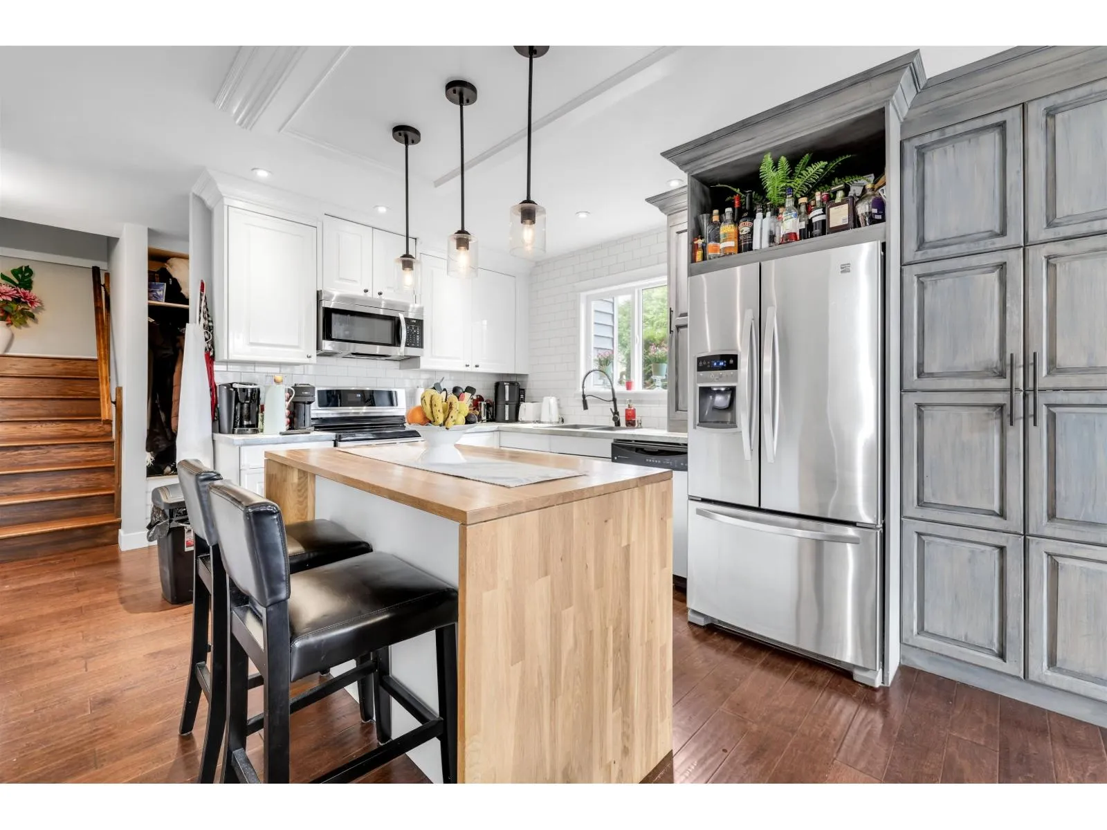 Bring your most discerning buyers-this one will impress! END UNIT! Renovated unit featuring a custom kitchen with stainless steel appliances and LED pot lighting & a Butcher Block island. Bathroom includes in-floor heating and spa-style rain shower. Engineered flooring on the main level, upgraded designer lighting and more! Vaulted living room ceiling fills the space with natural light. Step outside to a HUGE and PRIVATE backyard/outdoor space rarely found in the complex. Amenities include outdoor pool, gym, and a short walk to the elementary school. Fantastic location and well-run complex. A home you won't want to miss-call today to book your private showing. (id:27476)