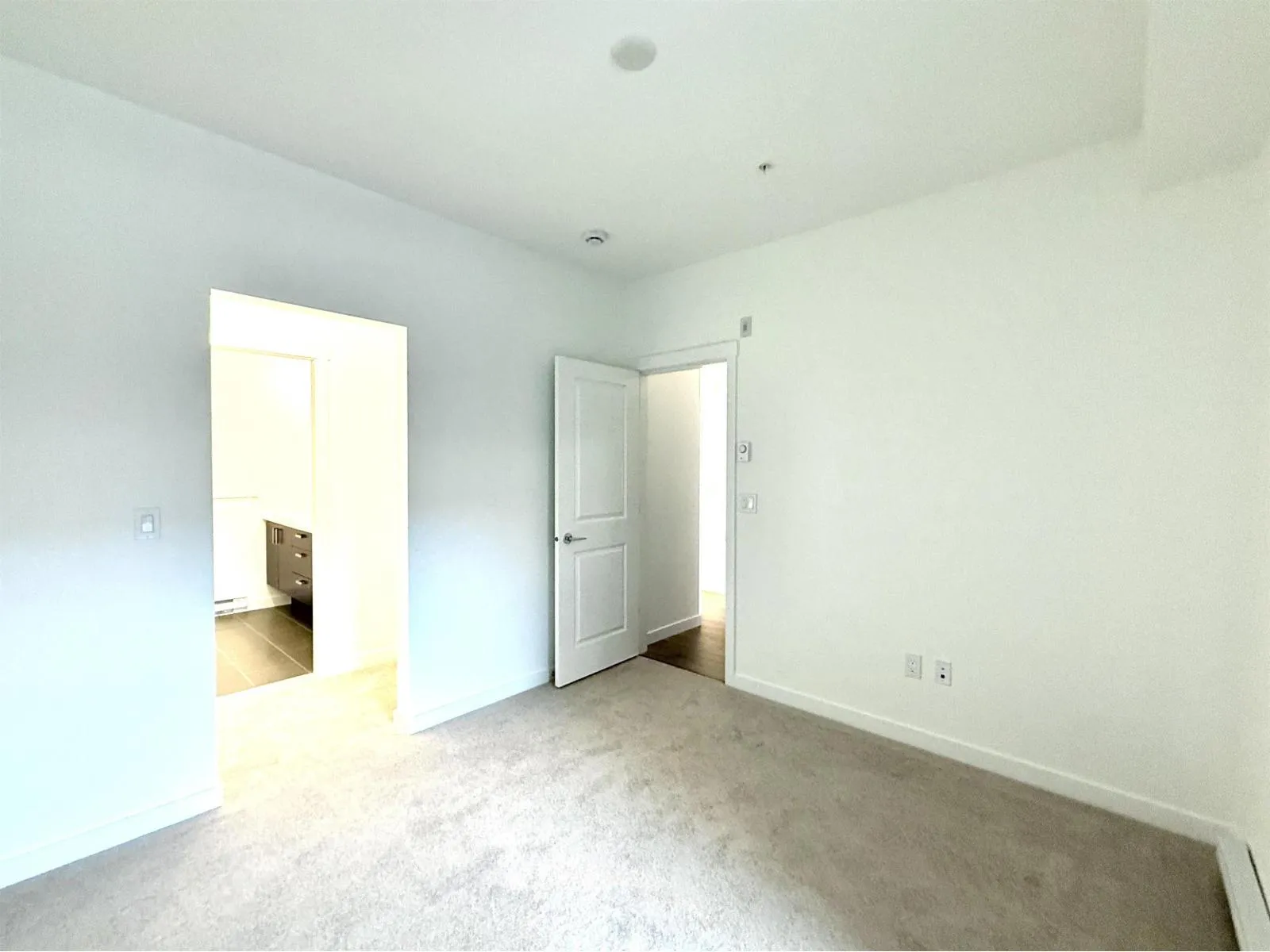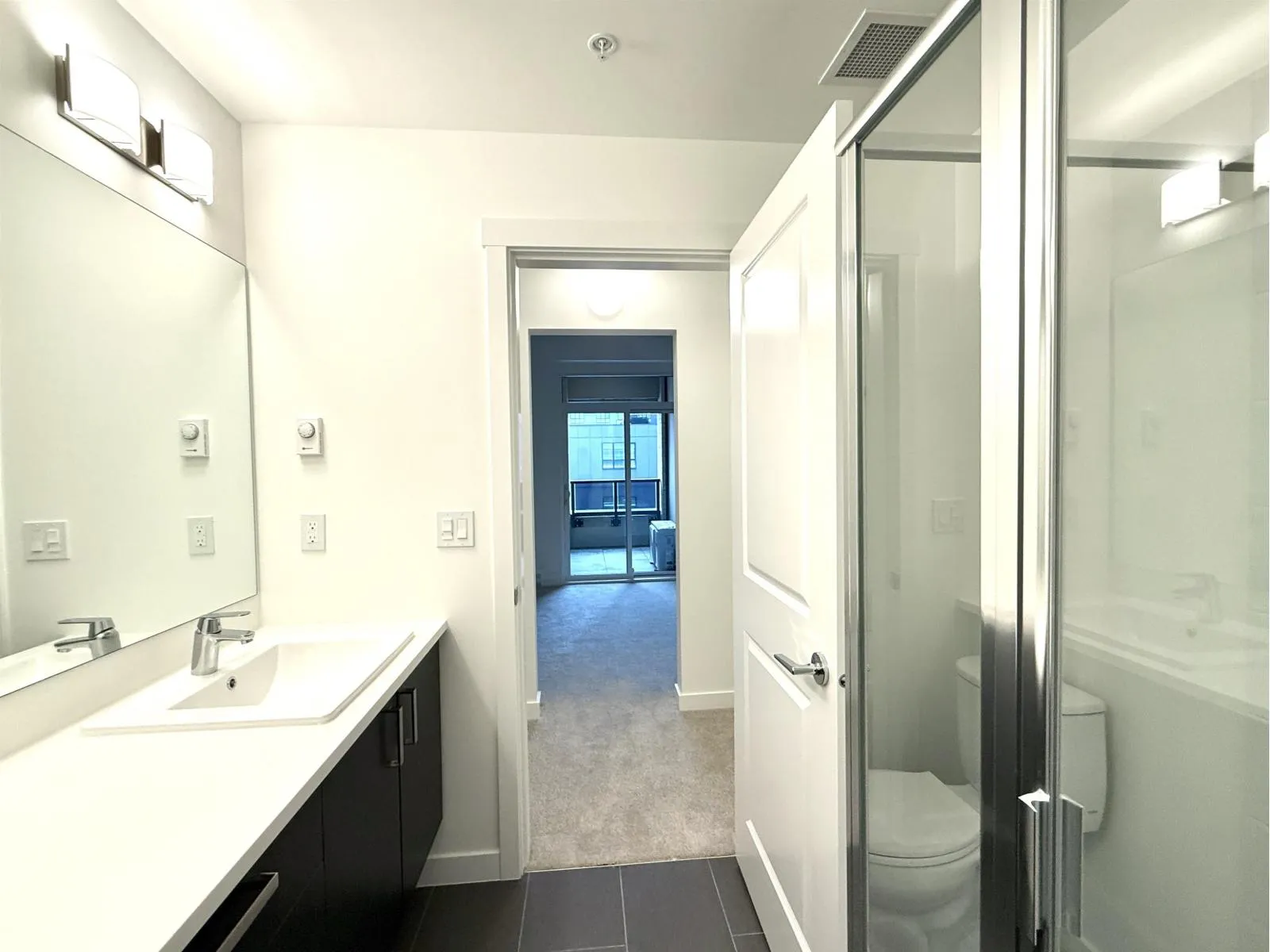Brand new 3 bedroom, 2 bathroom corner condo offering 840 sq.ft total (750 sq.ft interior + 90 sq.ft private balcony). This bright modern home features an open-concept layout with large windows, stainless steel appliances, quartz countertops, a spacious kitchen island, air conditioning, and full-size in-suite laundry. The primary bedroom includes a private ensuite and walk through closet space. One parking stall and storage locker included. Conveniently located close to shopping, restaurants, parks, schools, transit, and major commuter routes. Available April 1, 2026 with first showings starting April 1. (id:27476)