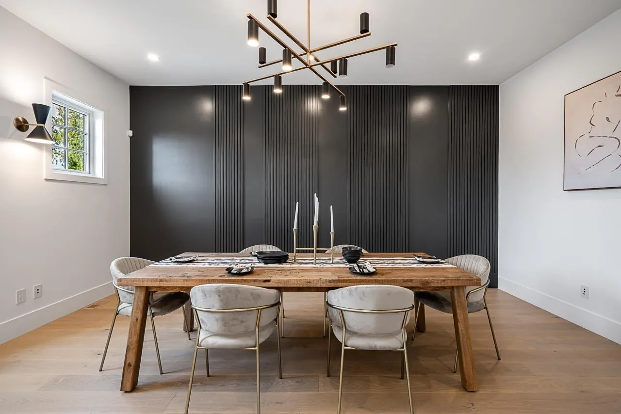 This breathtaking designer home blends Craftsman architecture with Farmhouse elegance, offering 5,560 sq ft of luxurious living in sought-after West Cloverdale. Bright, airy interiors feature expansive windows with automatic blinds, exquisite millwork, and premium flooring. The showstopping great room centers around a stunning fireplace and a custom two-tone white oak kitchen with top-tier appliances, a spice kitchen, and walk-in pantry. Upstairs boasts 4 vaulted bedrooms including a dreamy primary suite, plus a main-level bedroom. The lower level features a 2-bed legal suite, media room with wet bar, 3-pc bath, storage, and mudroom. Enjoy central A/C, smart home features, and the 2/5/10 New Home Warranty-a perfect blend of sophistication, comfort, and functionality. (id:27476)