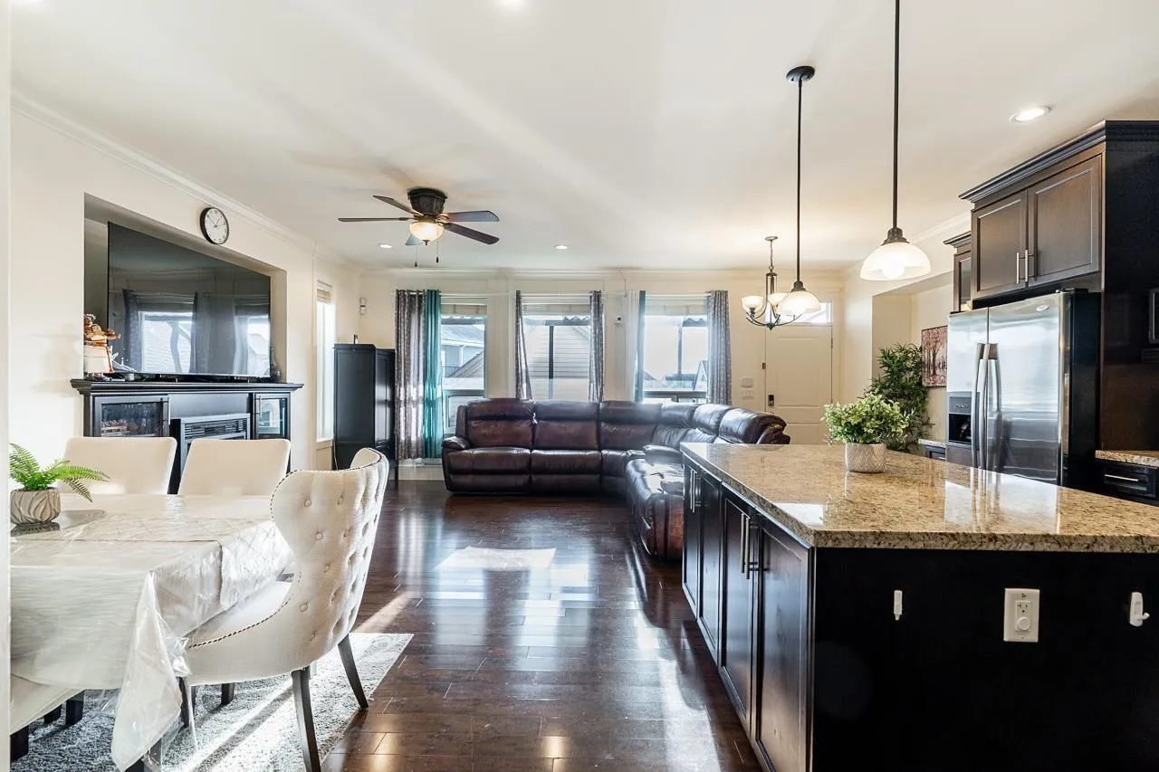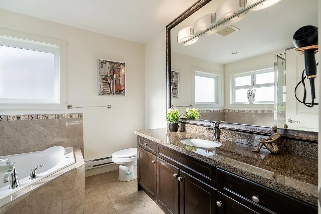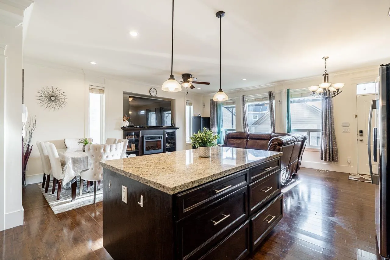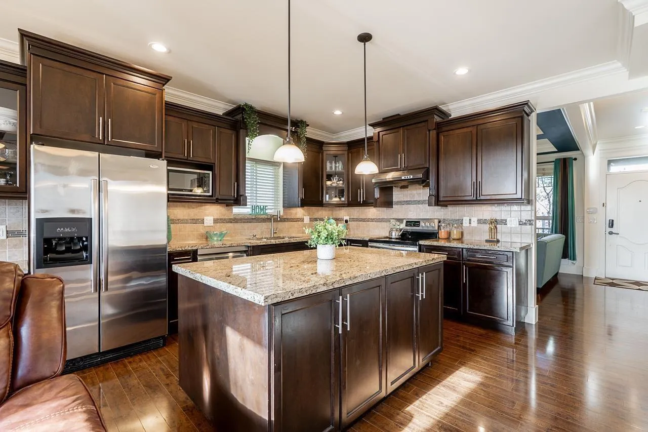 Elegant 5BR & 3.5BTH Panorama Ridge residence. Ideally located directly across from Panorama Park, this well-maintained home welcomes you with rich laminate flooring flowing throughout the main level. Just past the convenient powder room and formal living area is a stunning eat-in kitchen featuring granite countertops, stainless steel appliances, and a large island-the perfect gathering place for family and guests. The upper level is dedicated to comfortable bedrooms, with the primary offering vaulted ceilings, a charming window seat, walk-in closet, and a serene ensuite. A bonus loft provides an ideal play area or home office, plus a separate-entry 2BR 1BTH basement suite. Access the detached double garage via lane and enjoy walking distance to both levels of schools and bus stops. (id:27476)