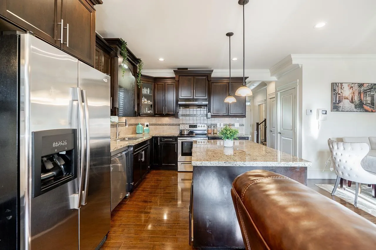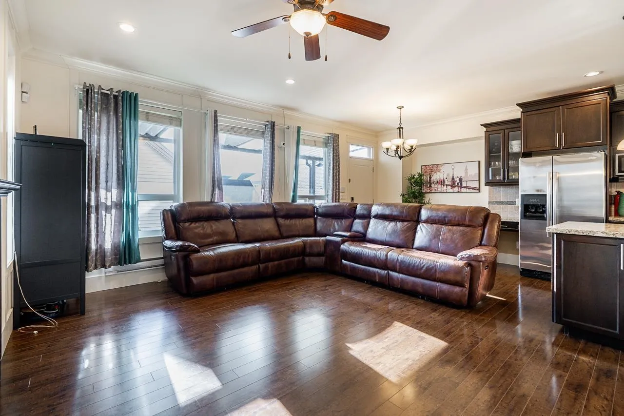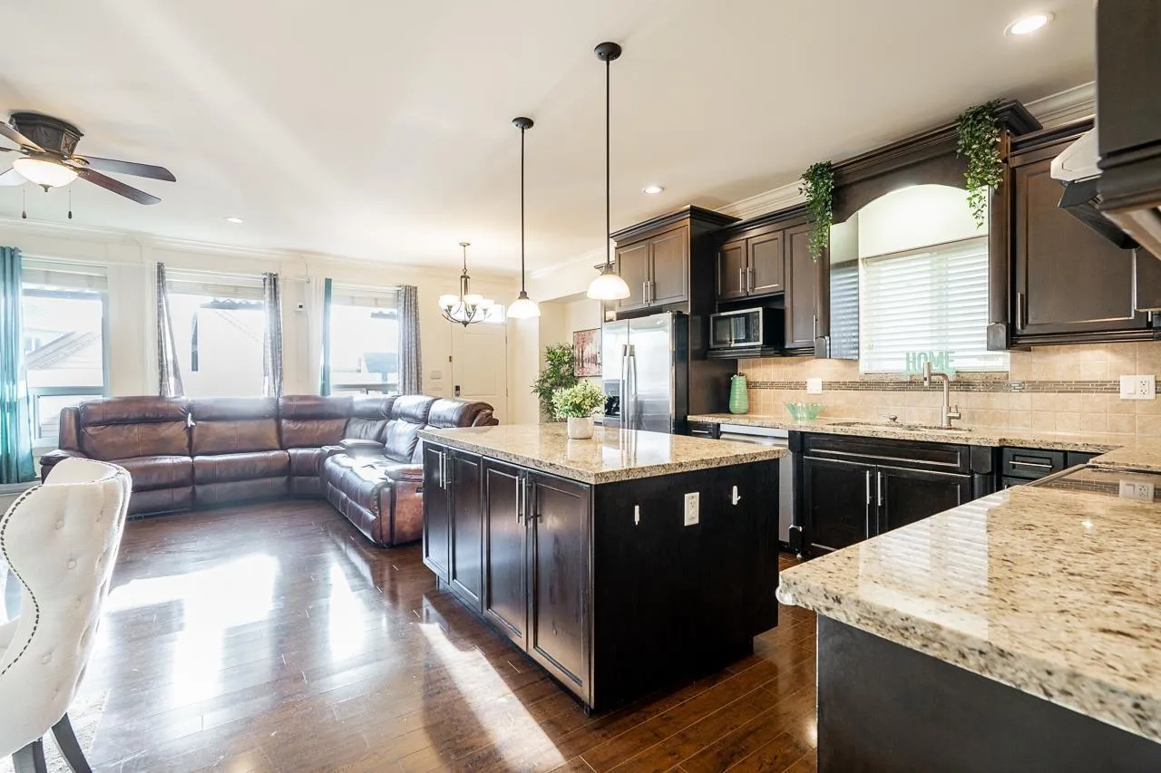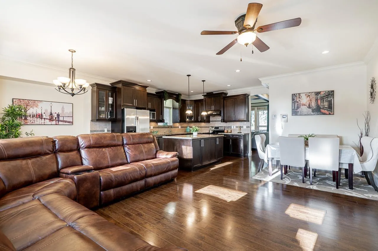 Elegant 5BR & 3.5BTH Panorama Ridge residence. Ideally located directly across from Panorama Park, this well-maintained home welcomes you with rich laminate flooring flowing throughout the main level. Just past the convenient powder room and formal living area is a stunning eat-in kitchen featuring granite countertops, stainless steel appliances, and a large island-the perfect gathering place for family and guests. The upper level is dedicated to comfortable bedrooms, with the primary offering vaulted ceilings, a charming window seat, walk-in closet, and a serene ensuite. A bonus loft provides an ideal play area or home office, plus a separate-entry 2BR 1BTH basement suite. Access the detached double garage via lane and enjoy walking distance to both levels of schools and bus stops. (id:27476)