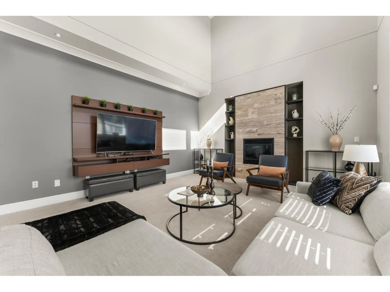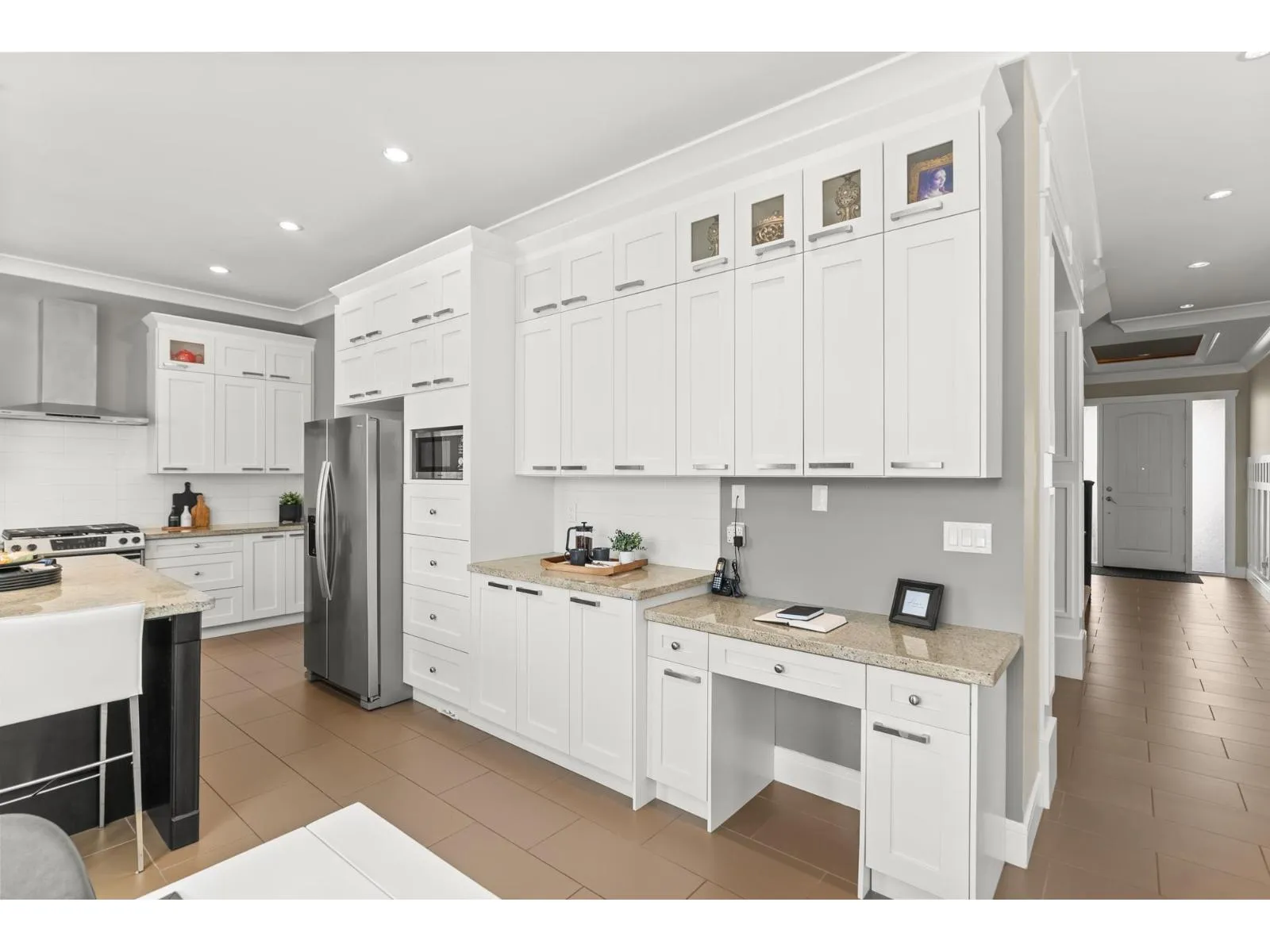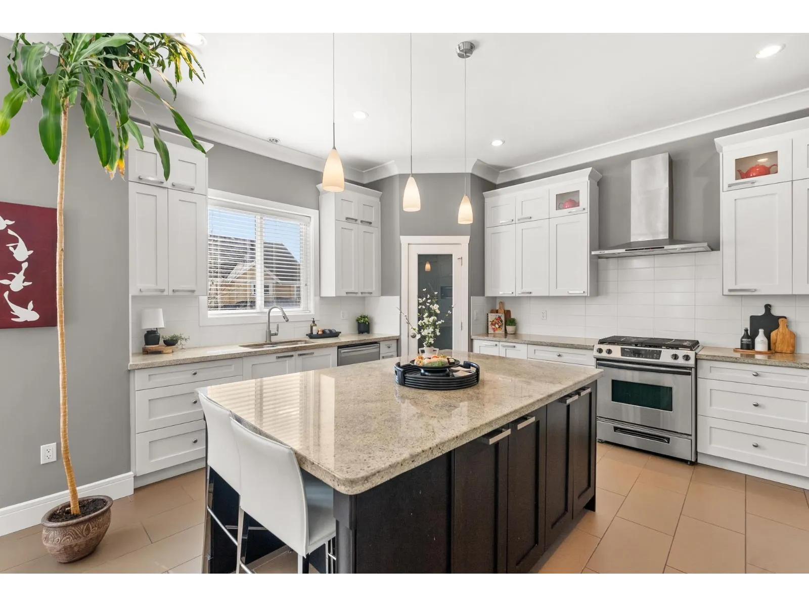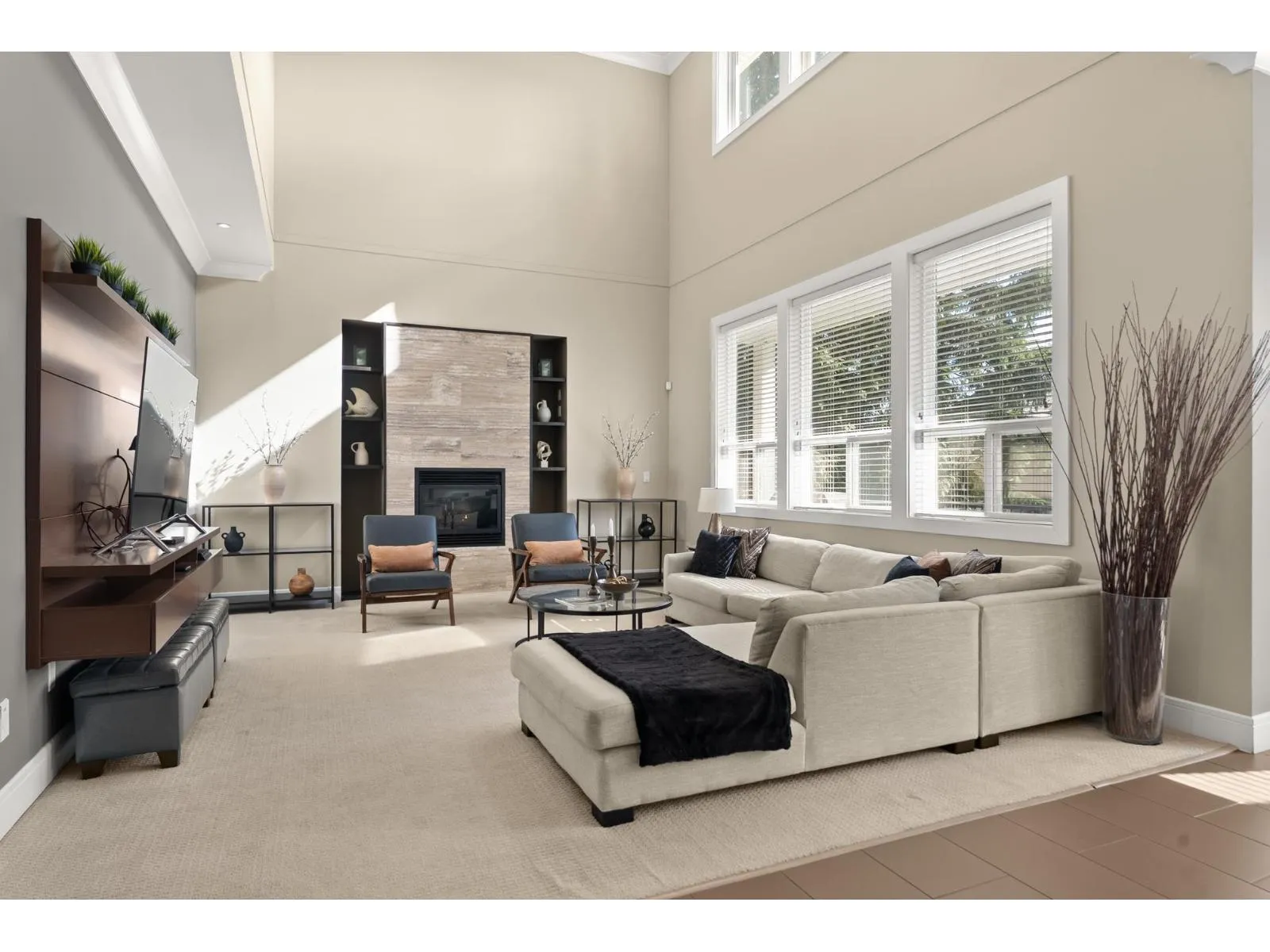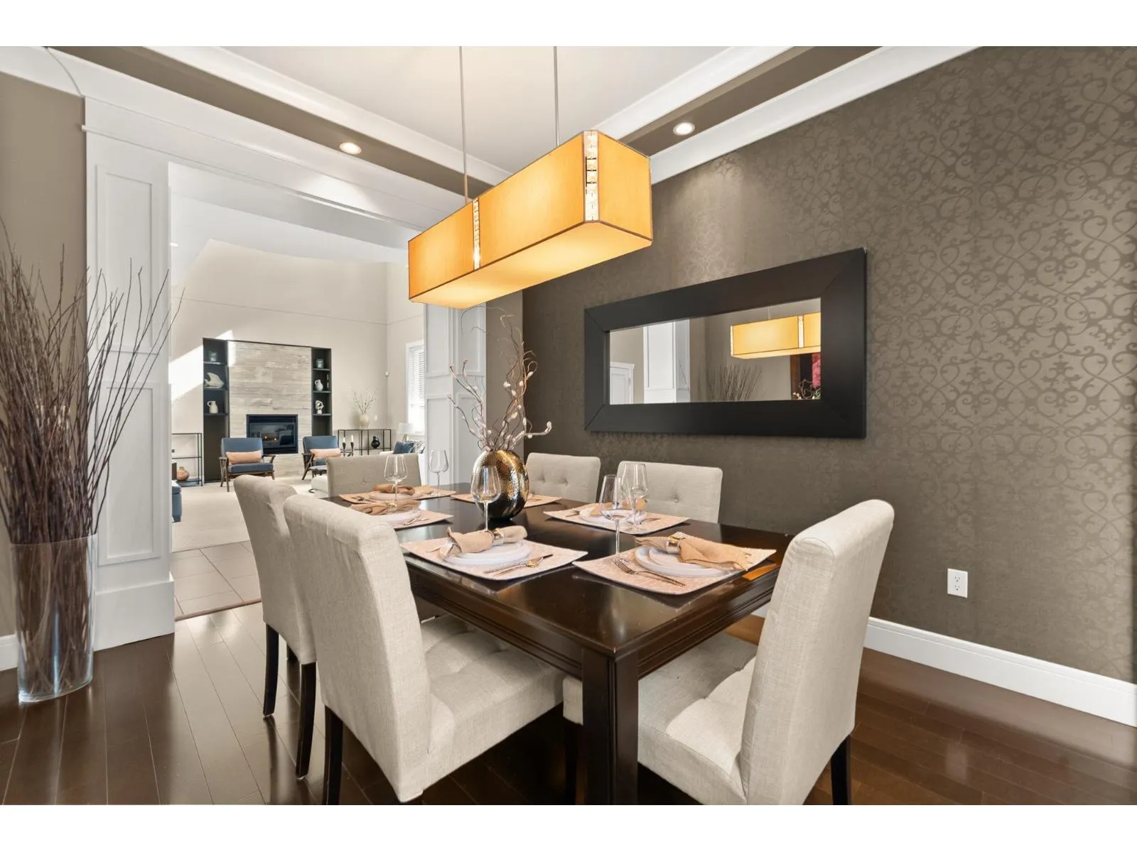 Tucked away on a quiet cul-de-sac, this custom-built executive home showcases exceptional quality and timeless elegance. Impressive from the moment you enter, the grand living room offers soaring ceilings, expansive windows flooding the room with natural light, and a statement fireplace. Notable highlights include a formal dining room with butlers pantry-perfect for entertaining. The chef-inspired kitchen includes a large island, gas range, and eating area with access to a large deck overlooking the sunny south-facing backyard. Radiant in-floor heating adds warmth and comfort. Upstairs offers 4 BD and 3 BA, including a gorgeous primary retreat with vaulted ceiling, WIC, and spa-inspired ensuite with soaker tub. The lower level offers a media room, flex room, and a bright 2-BD suite. (id:27476)