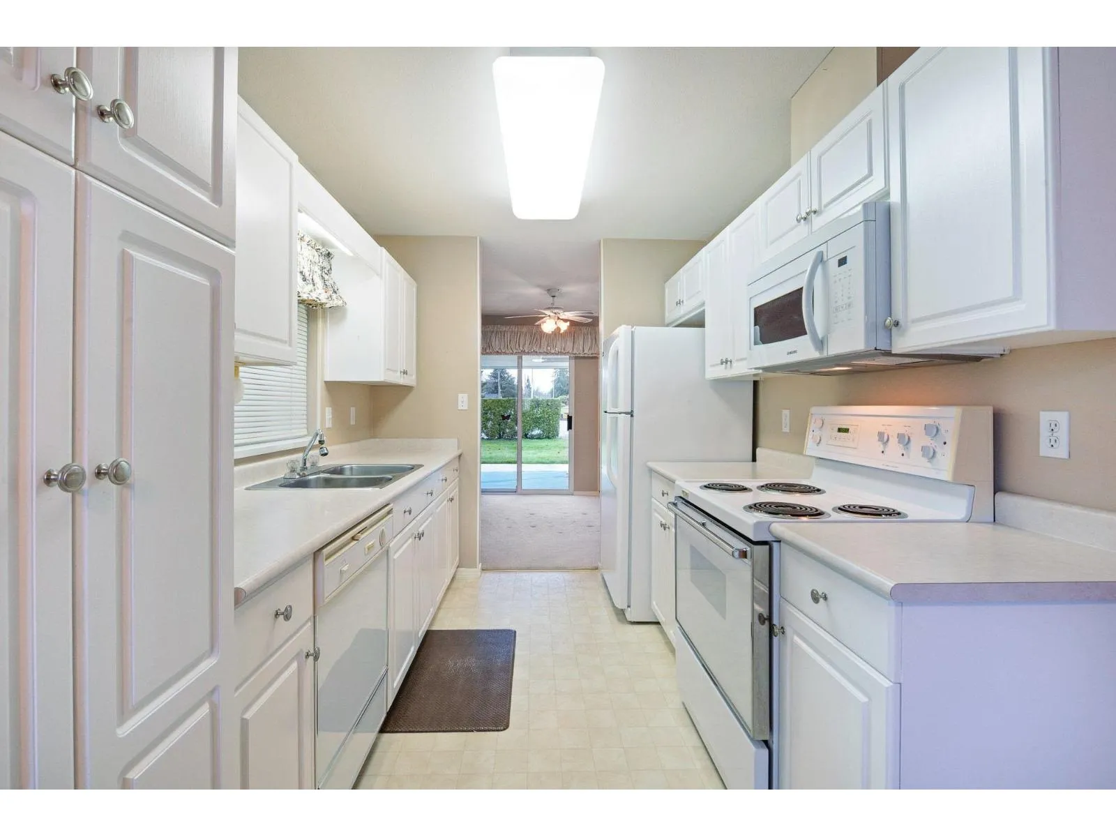 AFFORDABLE RETIREMENT! This is a perfect final destination for people looking for quiet community living! This is a RARE bungalow style end unit. Nobody living above you. Next to the garden area so lots of greenspace and parking. 2 bedroom and 2 bath unit in Sullivan Mews. Kitchen with bright eating area, huge laundry room and under stairs storage. Gas fireplace in generous living room and full sized dining room steps out to your private covered back patio! Large master with 3 piece ensuite and good sized second bedroom for guests! BE AWARE THIS IS NOT STRATA OWNERSHIP. It is a society so no mortgages. $540 monthly fees include taxes, insurance, electricity, gas, heat, maintenance and management. This will go fast so call for more info! (id:27476)