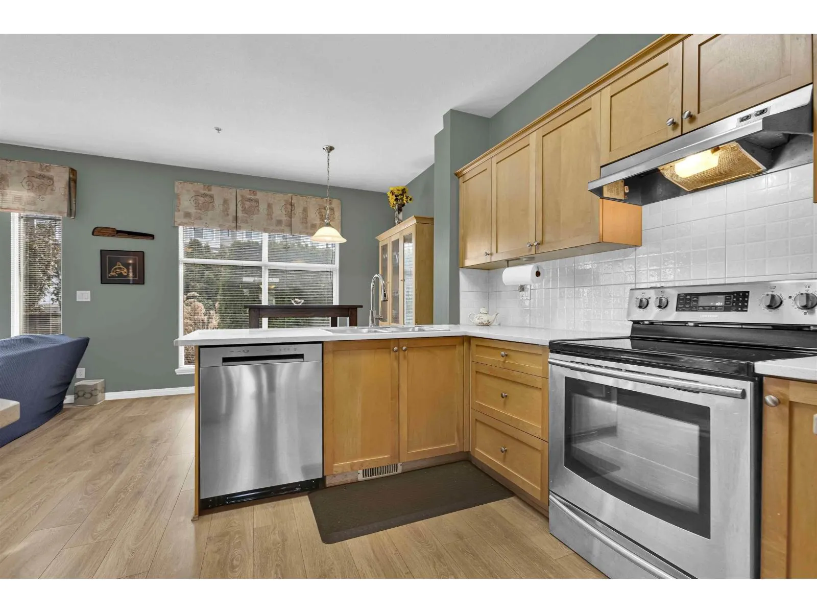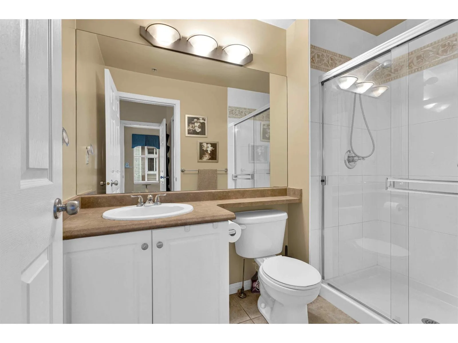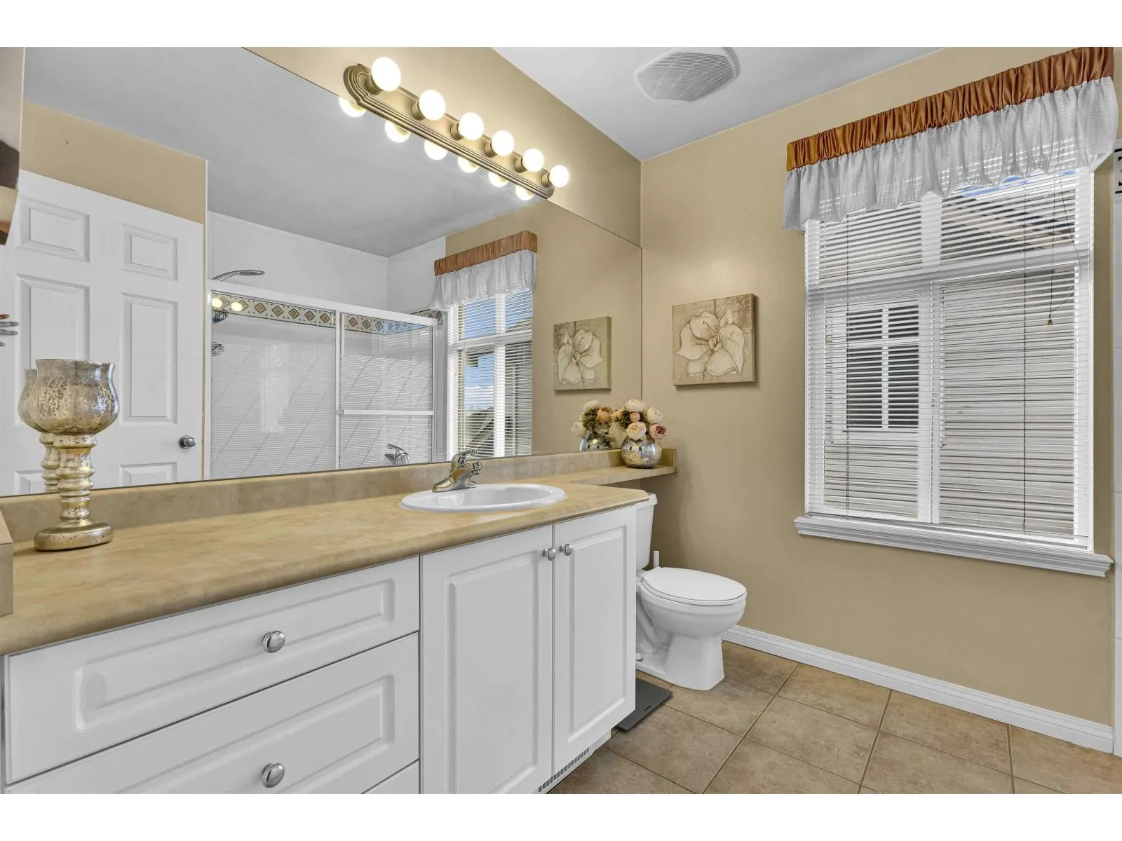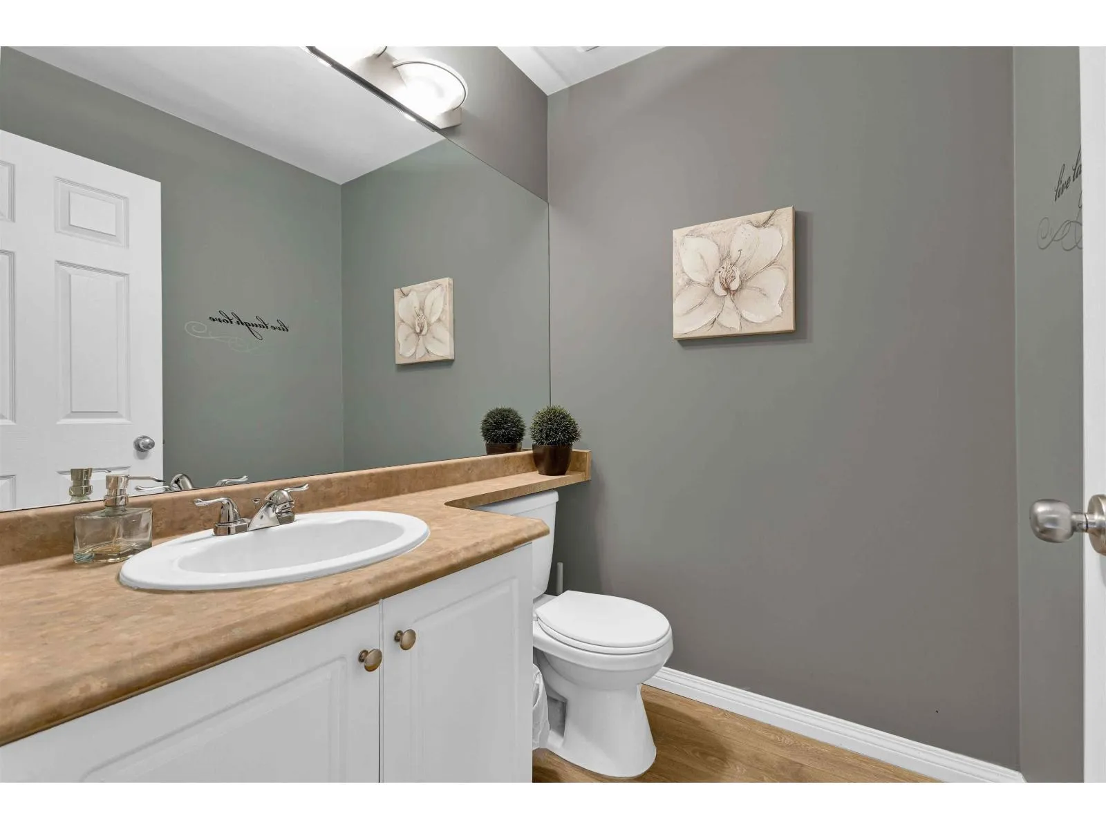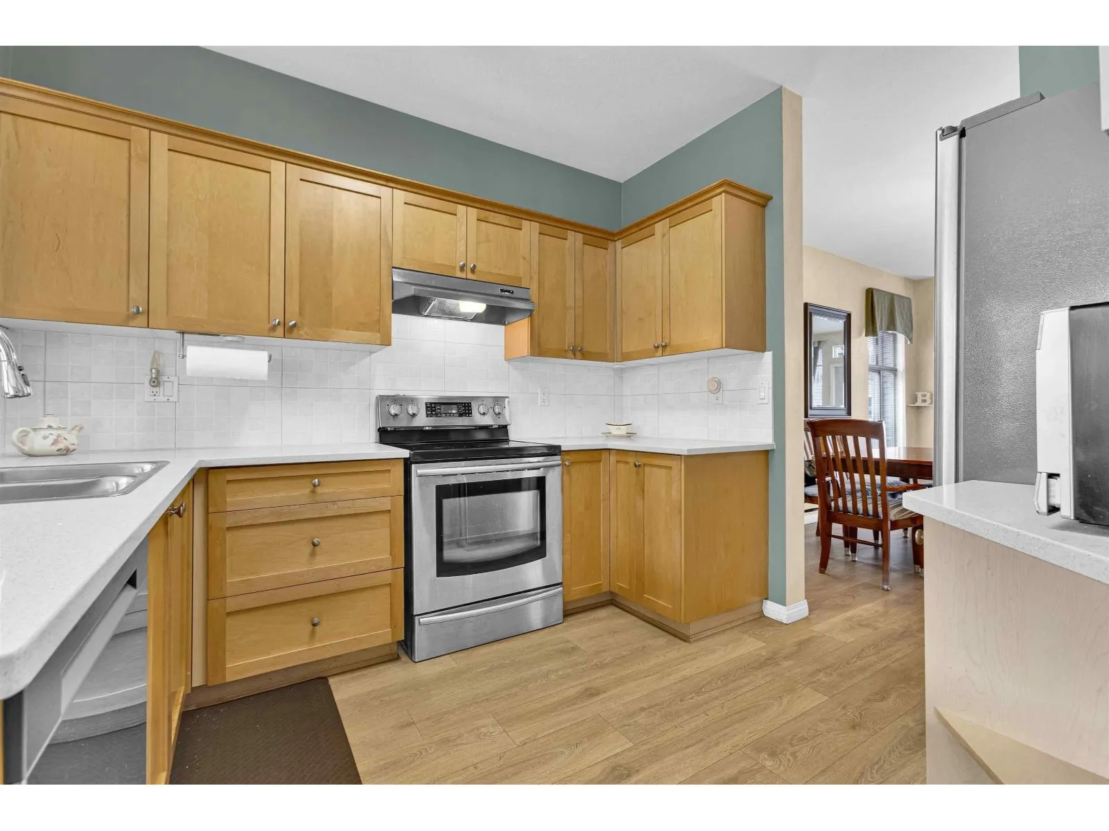 This END unit offers stunning views of New West and the mountains. It was originally a show home, offering extra attention to detail and quality finishes throughout.The spacious main floor features a bright family/living room with a cozy gas fireplace, providing plenty of room to relax. The layout is perfect for entertaining, with a powder room, patio, and balcony all conveniently located on the main level. The primary bedroom on the main floor has a full ensuite bathroom and a walk-in closet. Upstairs, you'll find two generous bedrooms with full bath. Recent updates include laminate flooring, granite countertops, custom drapes, dishwasher 6 months old), hot water tank (2 years old), roof and leaf-guard gutters (2 years old). A must see home. Open House Saturday March 28 2-4 pm (id:27476)