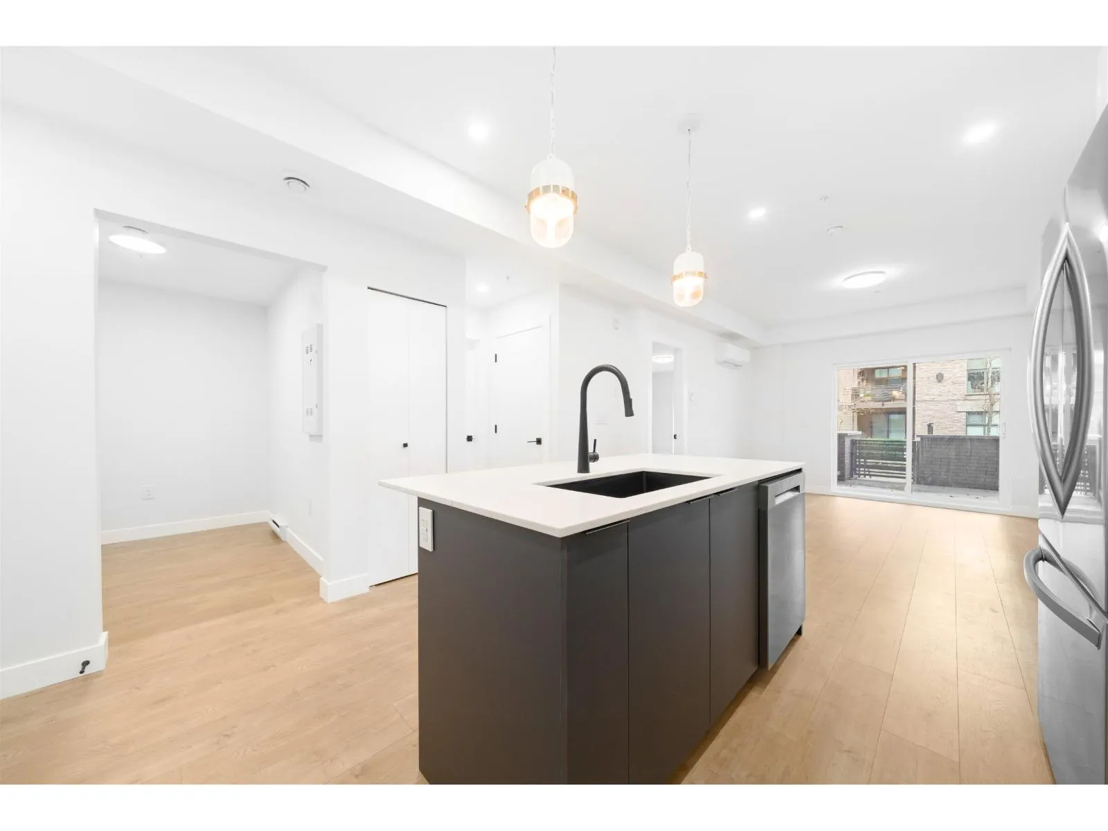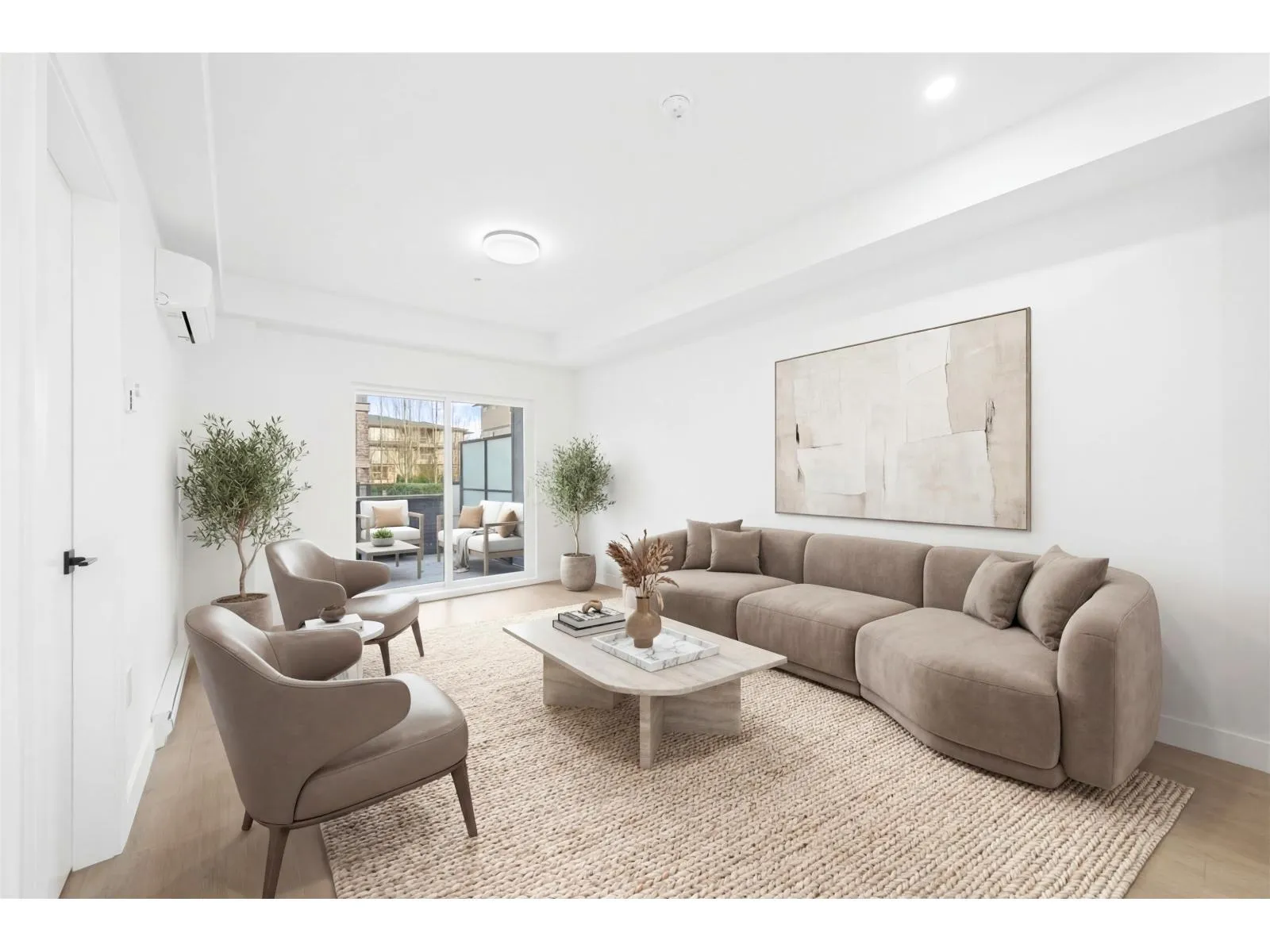 Brand New 1 Bed + Den, 707 SQFT Ground level unit with private 122 SQFT walk-out patio!! Perfect for BBQ's, Pets & entertaining! This move-in ready home features a bright & open-concept layout, high ceilings, air conditioning, & gourmet kitchen with large island, gas stove, S/S appliances & clean modern finishes! The spacious bedroom includes a walk-through closet, and large Den provides flexibility of a home office or guest space. Building amenities include an indoor lounge, outdoor rooftop patio, putting green, gym & children's playground. Bordering White Rock & steps to Semiahmoo Mall, White Rock beach, transit, theatre, parks, coffee shops, hospital & more! Includes 1 large parking & 1 HUGE storage locker. Click link for virtual tour. *Call to schedule your showing today! (id:27476)