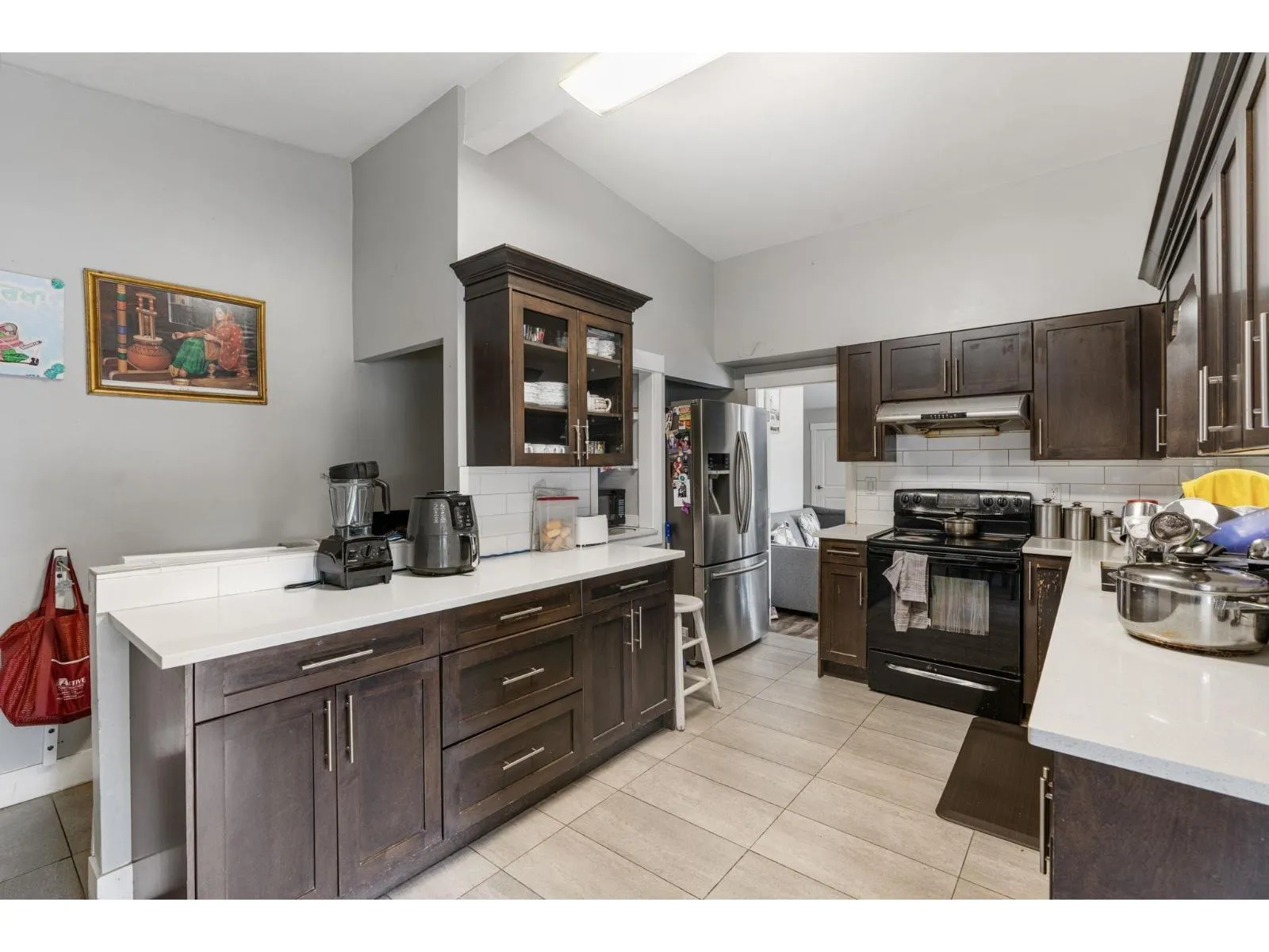 Incredible opportunity on a massive 9,200 SQFT corner lot with 68 ft frontage, flanking street, and back lane access-ideal for future development. Zoned for potential 3-level home or explore new options under updated SSMUH bylaws. This spacious home features 6 bedrooms, 3.5 baths, including a 1-bedroom suite. Roof was replaced -4 years ago, with major plumbing and electrical upgrades done in 2016. Stay cool with central AC. Prime location-walking distance to KB Woodward Elementary, Kwantlen Park Secondary, and Gateway SkyTrain. Quick access to major routes and bridges. Surrounded by new homes in a fast-growing area. Great holding property or build your dream home. (id:27476)