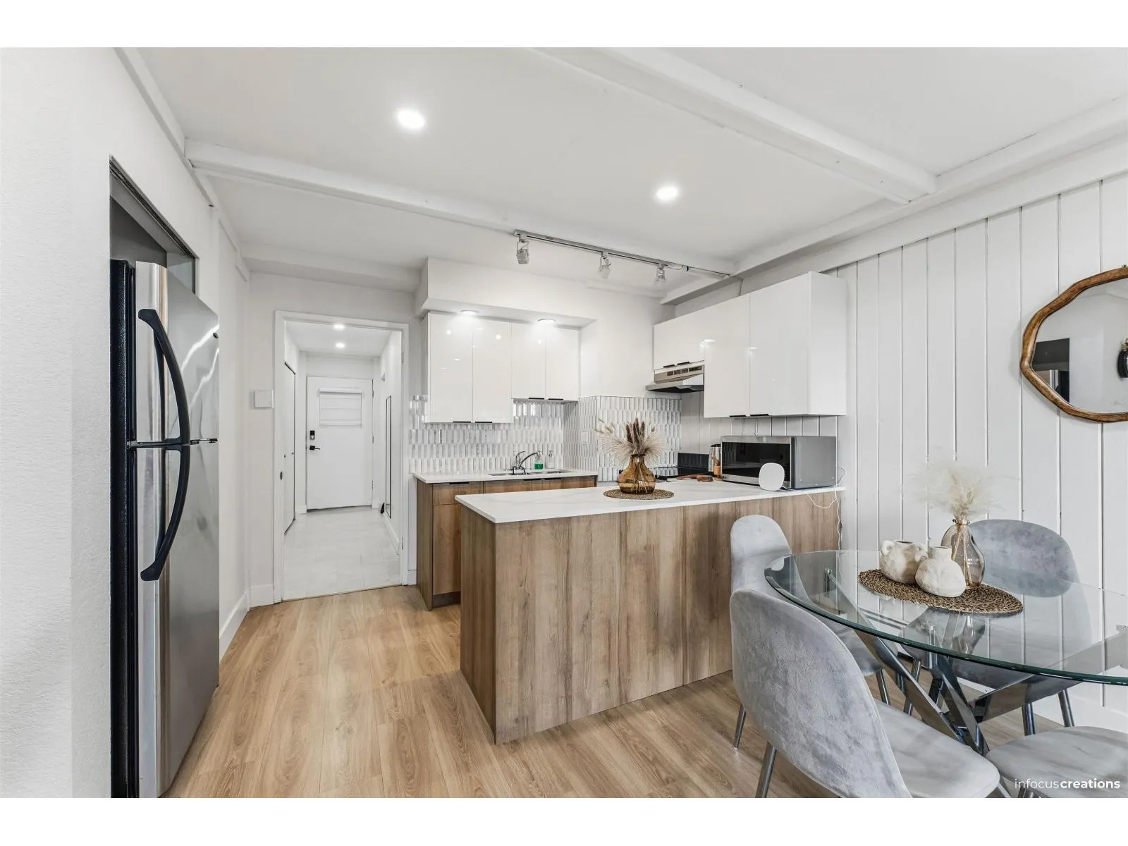 Beautifully renovated home in the heart of Ocean Park, offering bright, modern living with timeless coastal charm. Featuring spacious open-concept interiors, updated kitchen and bathrooms, and quality finishes throughout. Enjoy ocean views from multiple areas of the home, perfect for everyday living and entertaining. Private balcony off primary suite .Detached work/ studio/ gym at the back and noted as basement in listing Three separate washer/ dryer units . Entry level separate in law suite with one bed / den with ocean views and plenty of sunlight. Situated on a generous lot in a quiet, prestigious neighborhood close to Crescent Beach, parks, schools, and shops. A rare move-in-ready opportunity in one of South Surrey's most sought-after locations. Showings by appointment. (id:27476)