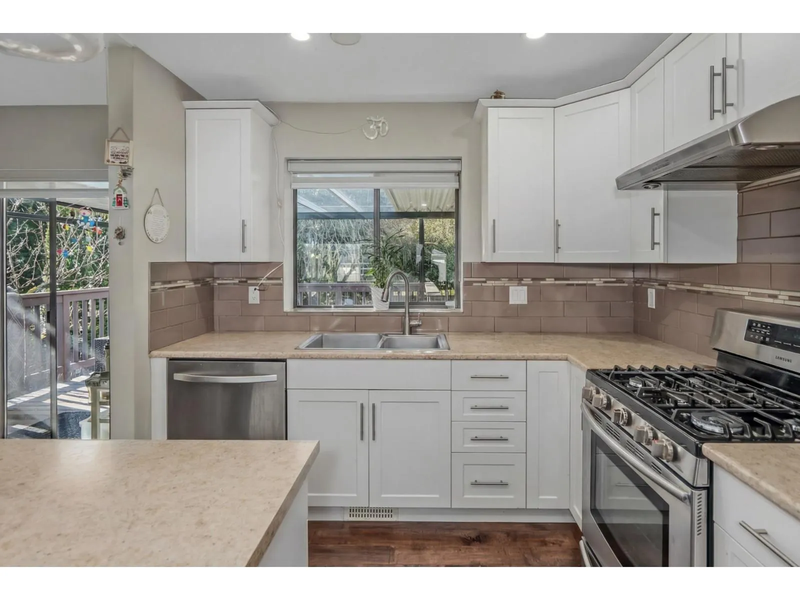 This charming home sits on a fantastic street in a highly desirable neighbourhood and could be yours! Offering nearly 1900sq ft on a 7,253 sq ft lot, it including a 2-bedroom mortgage helper. The main floor features a renovated white kitchen with island seating for two, stainless steel appliances, and a gas range. The primary bedroom offers a 4-piece ensuite and dual closets, plus two additional spacious bedrooms and another full bath. Brand new electric roller blinds throughout main, and upgraded potlights. Enjoy your private yard from the upper deck, complete with raspberry, blueberry, and plum trees. The bright 2-bedroom suite has fresh paint, white cabinets, new lighting, blinds, and its own patio. Minutes to Peninsula Village, Semiahmoo, and Morgan Crossing. (id:27476)