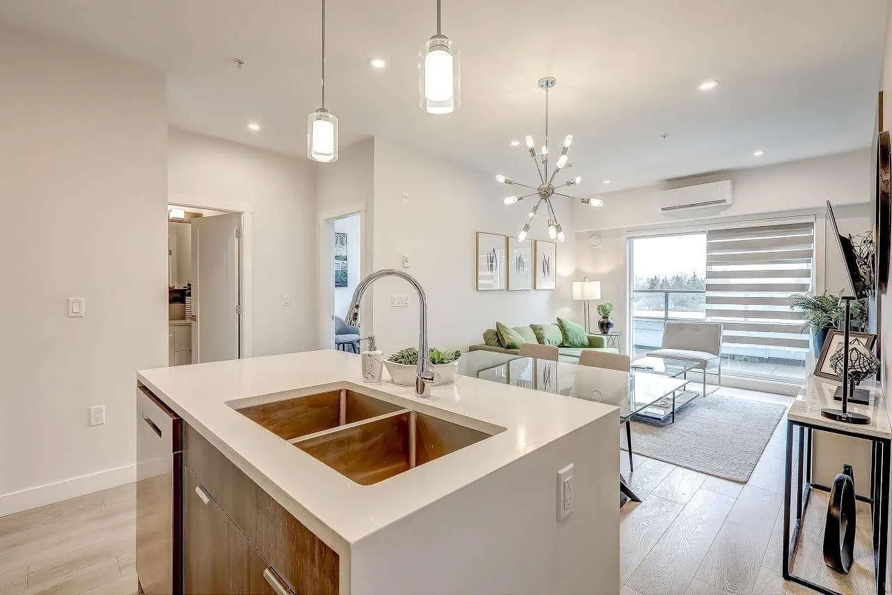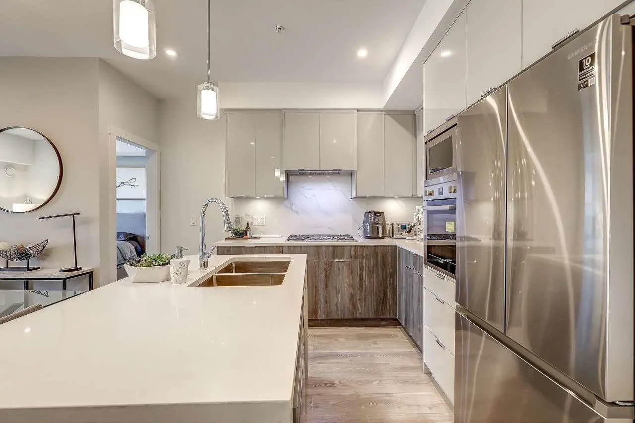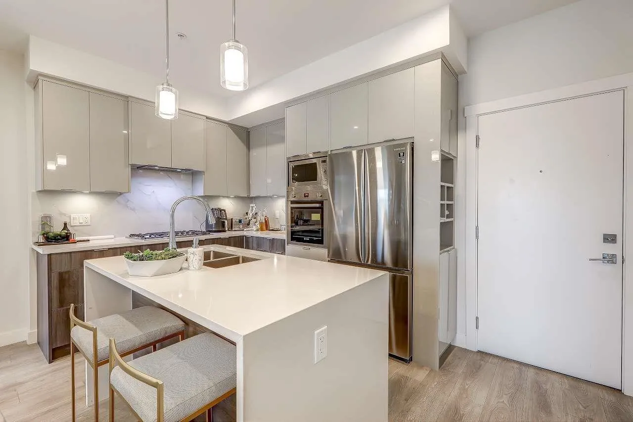 Top-Floor Corner Penthouse with Stunning Valley & Mountain Views featuring 2 Bedrooms and 2 Bathrooms. Bright corner unit with expansive valley views. Premium kitchen with Bosch stainless steel wall oven & gas range Quartz countertops and custom closet organizers. Air conditioning in the main living space, private patio, with gas hookup for BBQ with beautiful mountain views ideal for relaxing or entertaining. With 645 sq ft of balcony for your personal use. Building amenities include a party lounge and kids' play area, includes 2 parking stalls. Prime location minutes to Newton Exchange, Kings Crossing Shopping Centre, restaurants, and recreation. Convenient local shops located just below the building. (id:27476)