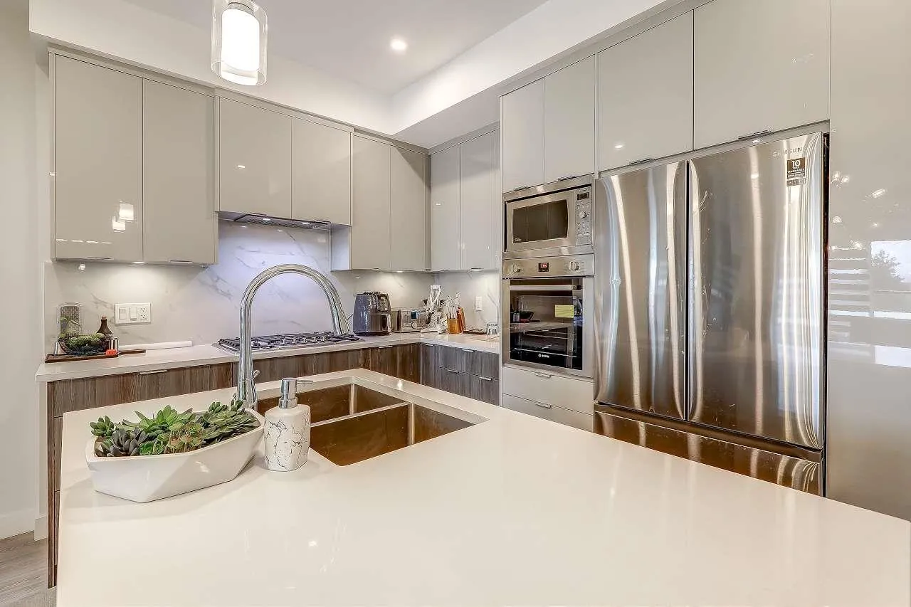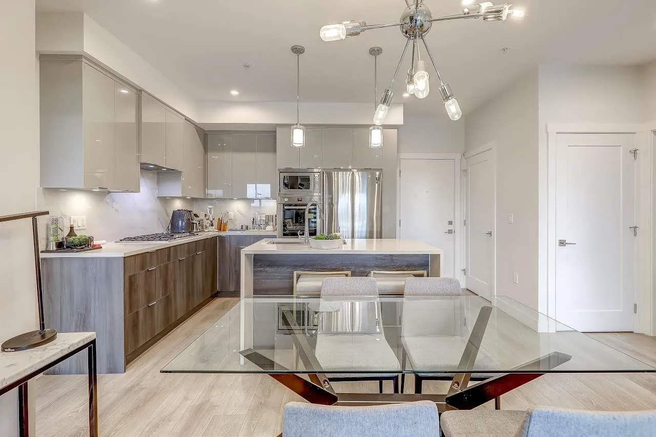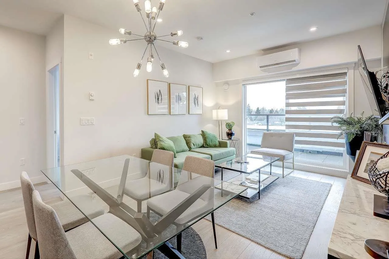 Top-Floor Corner Penthouse with Stunning Valley & Mountain Views featuring 2 Bedrooms and 2 Bathrooms. Bright corner unit with expansive valley views. Premium kitchen with Bosch stainless steel wall oven & gas range Quartz countertops and custom closet organizers. Air conditioning in the main living space, private patio, with gas hookup for BBQ with beautiful mountain views ideal for relaxing or entertaining. With 645 sq ft of balcony for your personal use. Building amenities include a party lounge and kids' play area, includes 2 parking stalls. Prime location minutes to Newton Exchange, Kings Crossing Shopping Centre, restaurants, and recreation. Convenient local shops located just below the building. (id:27476)