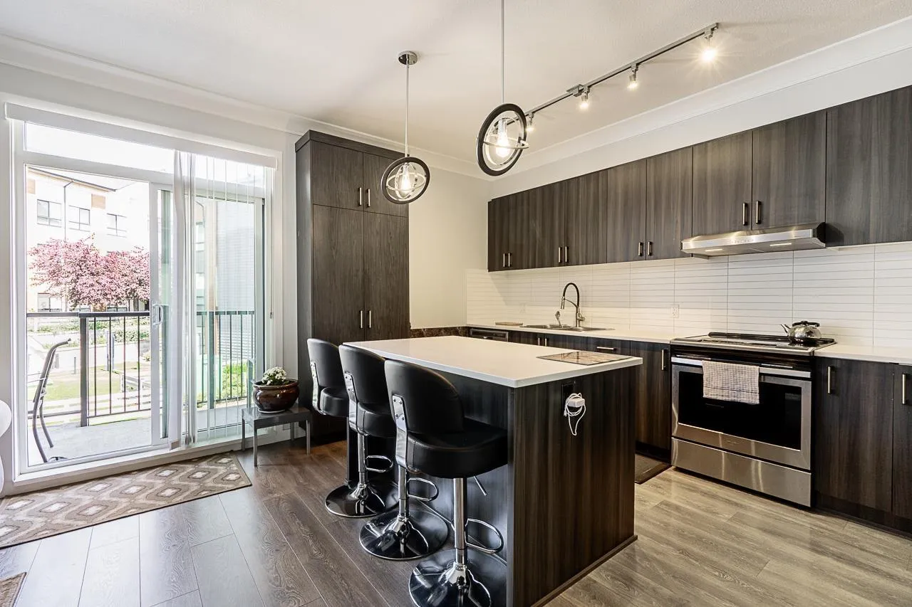 BEAUTIFUL 3 STOREY CORNER UNIT TOWNHOUSE development by Polygon. This 2084 sf 4 bed+ 4 bath townhome is within walking distance to shopping centre, YMCA Rec Centre, restaurants, and much more. The townhome is well designed with a functional layout offering 9ft ceilings in the main, open floor plan as you come into the open foyer, living room & kitchen w/beautiful s/s appliances and island w/quartz countertop, lots of windows to let natural light in and generous sized balcony and lots of parking. (id:27476)