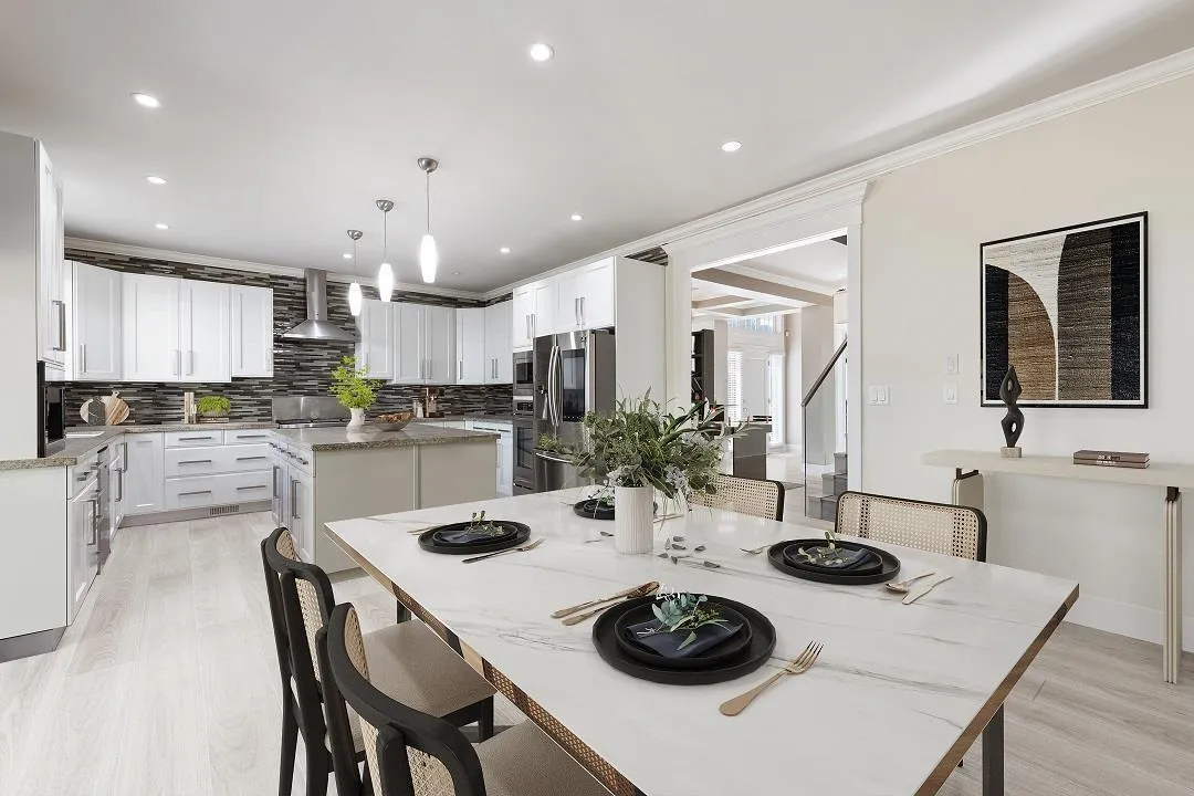 Morgan Acres Corner Property, quiet cul-de-sac executive home. Three levels, vacant 2 bdrm suite below. Total SF 4,173, craftsman design. Great room floor plan on main floor.+ 2 bedroom suite in Basement w/laundry- Numerous updates 2022-23, new A/C. Traditional 4 bedrooms & three full bath at 1,279 SF upstairs. Spacious main floor at 1,457 SF inc: all new flooring, 2 new gas f/places, formal dining rm/living room, large new white kitchen w/ island 2022 & quality appl pkg. Eating area & family rm w/ outdoor access, both open & covered . Grassed fenced backyard w/ outdoor built in BBQ wall & custom fire table. Dbl garage + parking for 4 cars in driveway/ has EV. Floor plan + brochure w/ updates. Close to Morgan Creek Golf Course. Easy access transit & commuting. Digital brochure available. (id:27476)