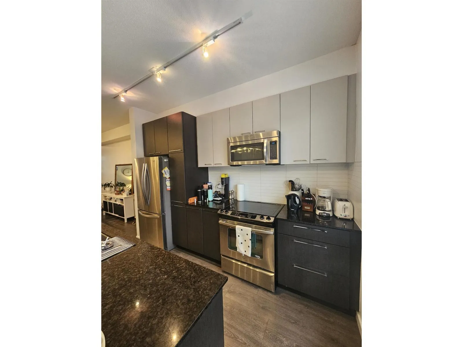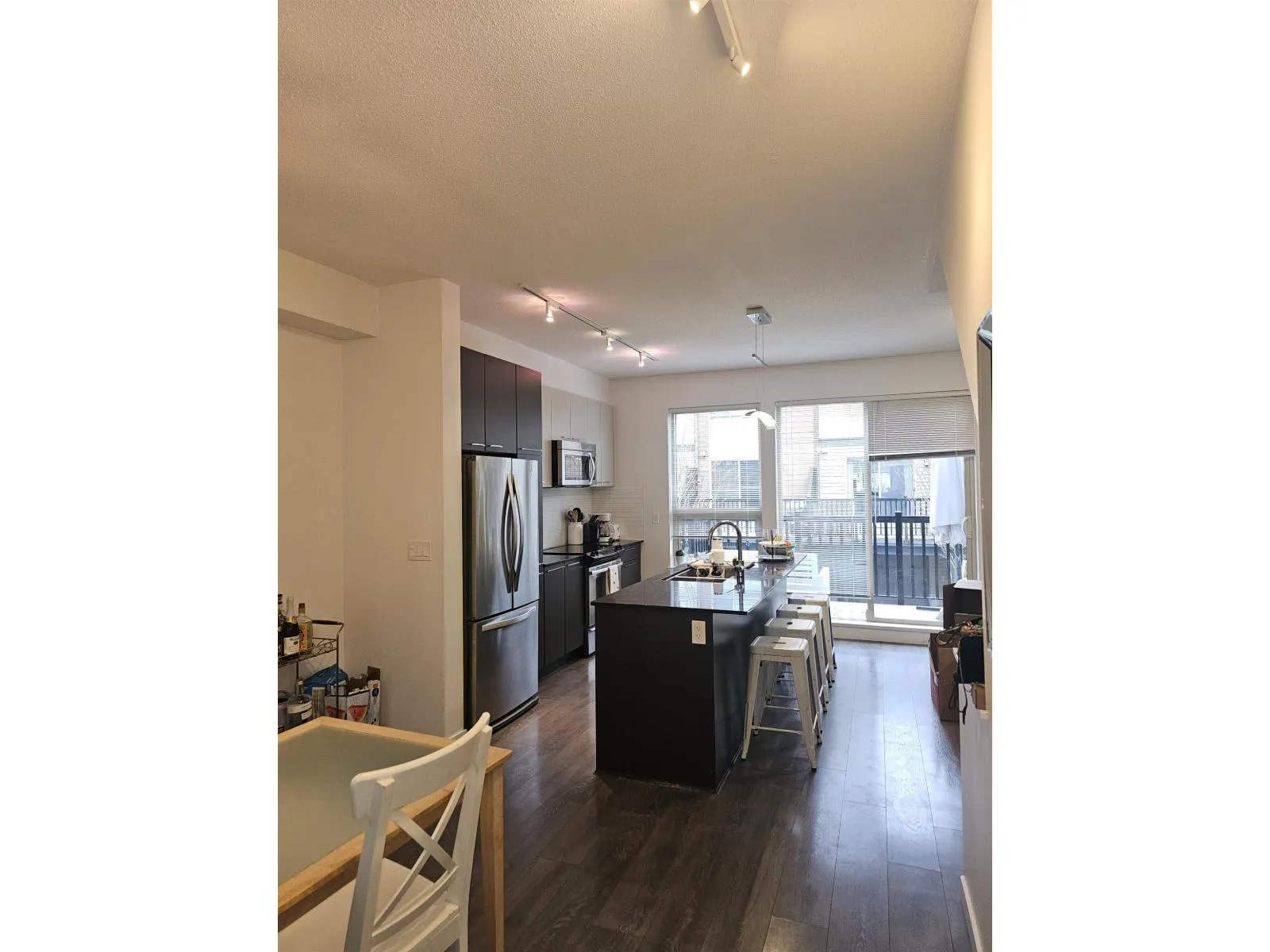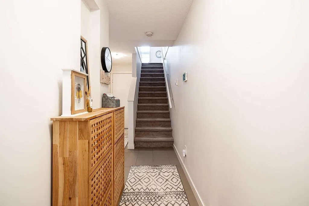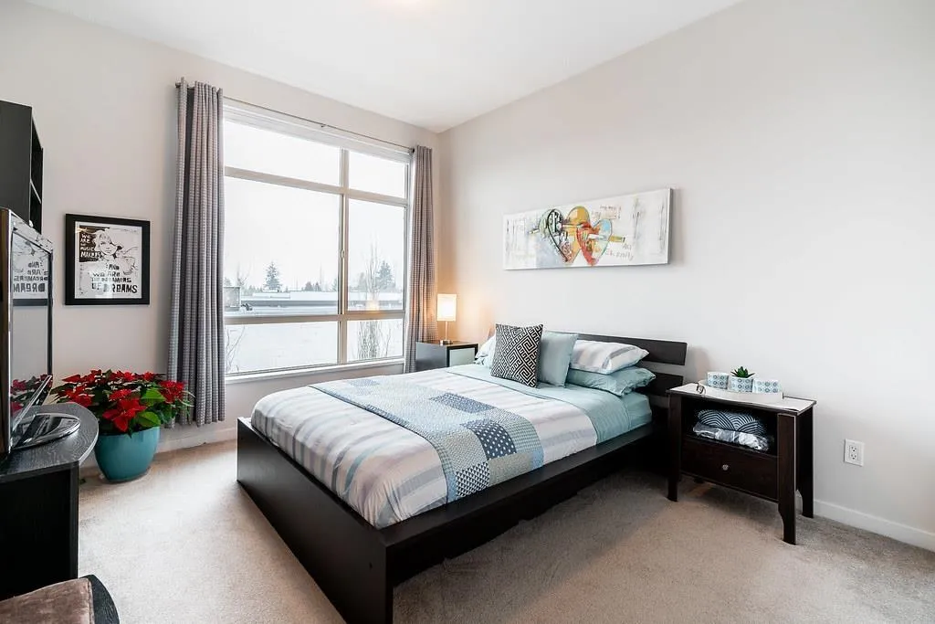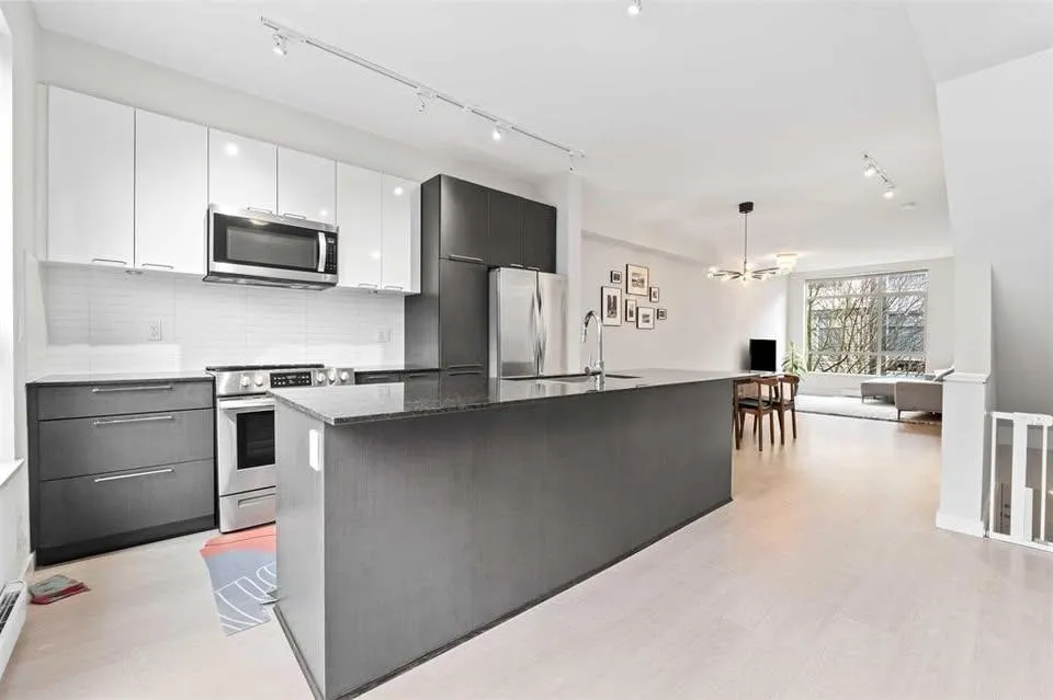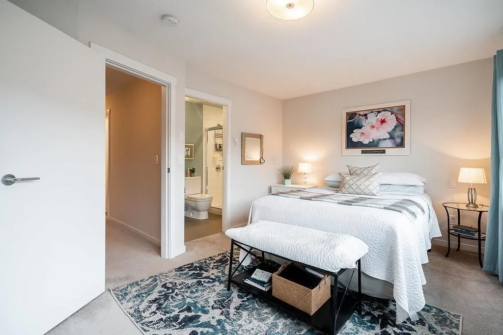 Welcome to Rockwood's by Anthem! Ideally located just steps to Fraser Highway with excellent transit access and future SkyTrain connectivity. This rare 3-bedroom, ~1,550 sq.ft. townhouse offers a functional and spacious layout, including a full bedroom and bathroom on the ground level. The main floor features: 9' ceilings Wide-plank flooring Open-concept living and dining Contemporary kitchen with large island, granite countertops, and stainless steel appliances Upstairs includes two generously sized bedrooms, each with walk-in closets. Additional features: Side-by-side double garage Tesla EV charging Recently updated flooring and fresh paint Oversized balcony ideal for outdoor use Residents enjoy access to the Rockwood Club amenities including gym, yoga studio, lounge, and playground. (id:27476)