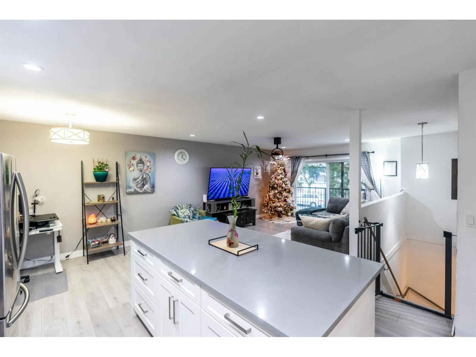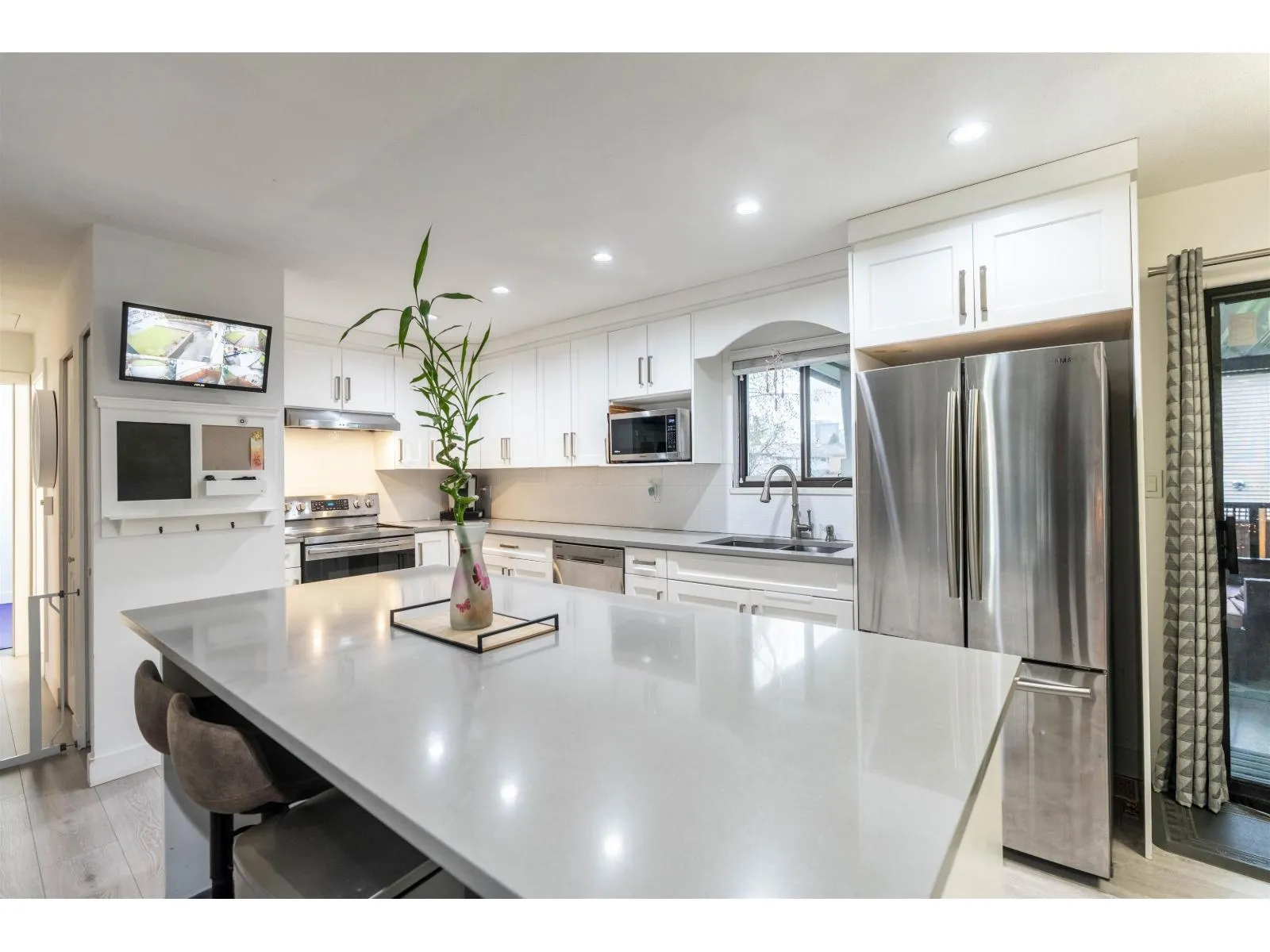 Beautifully updated 4-bedroom detached house in desirable Bear Creek-Green Timbers! 1,700+ Sq. Ft. on a 6,081 Sq. Ft. lot, steps to Bear Creek Park and half a block to elementary & pre-school-perfect for families. Fully renovated interior featuring open-concept new kitchen & new bathroom, updated flooring (tile, laminate & carpet), pot lights, ceiling fans, baseboards, doors, closet organizers, paint, stainless stair rail, blinds/drapes, CCTV & security system. Appliances & hot water tank (2020). 1-bed basement suite rented at $1,300 + 40% utilities. Exterior renos (2024): new fence, front & back balconies with metal railings & awnings, gutters, fascia, paint & sensor lighting. Quiet street with ample parking-move-in ready! (id:27476)