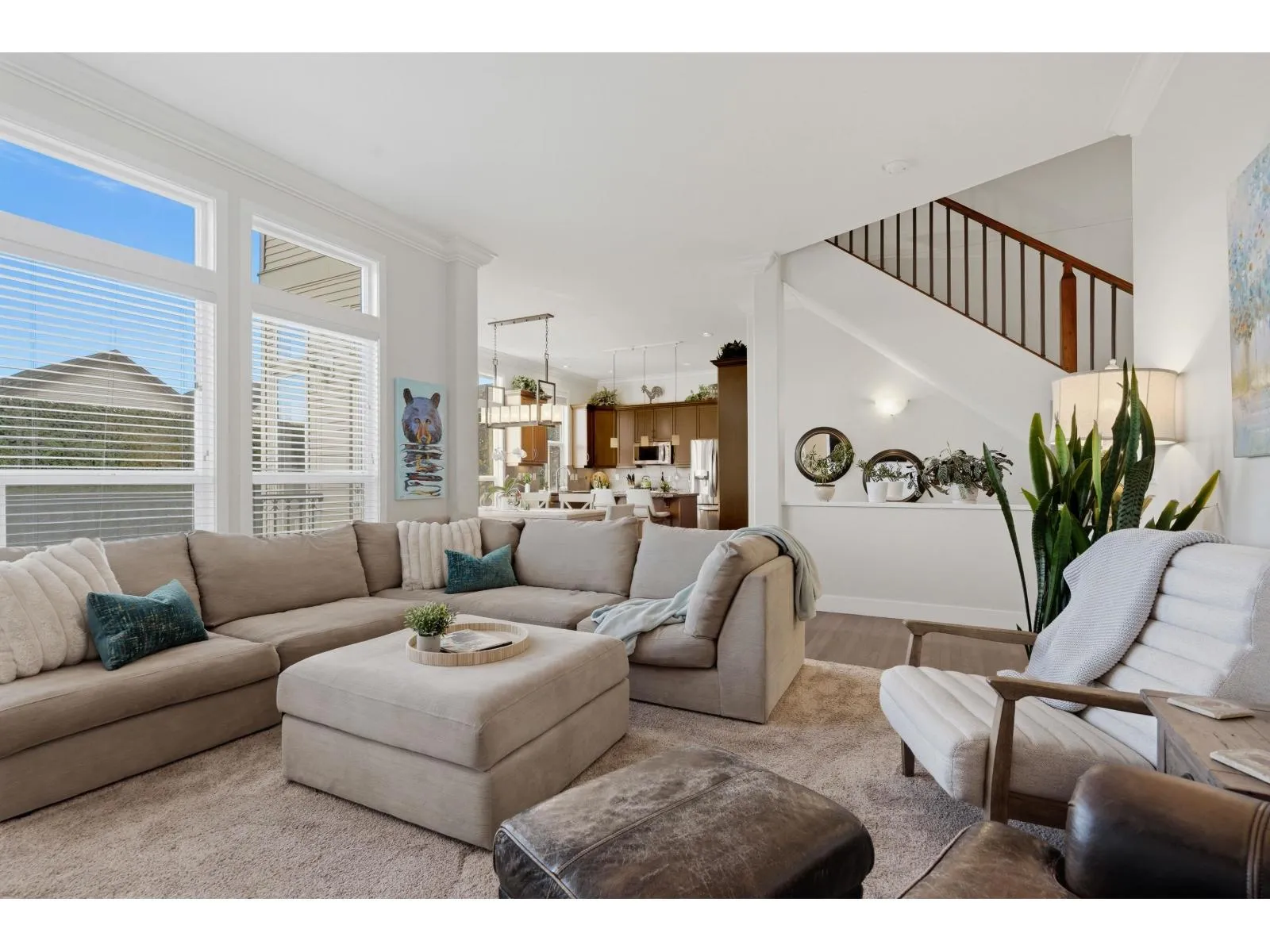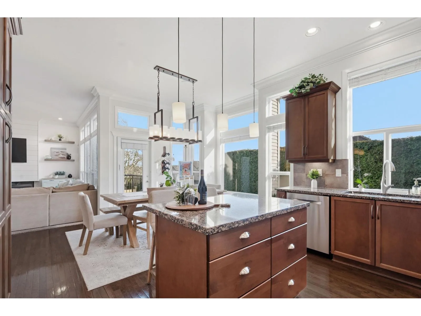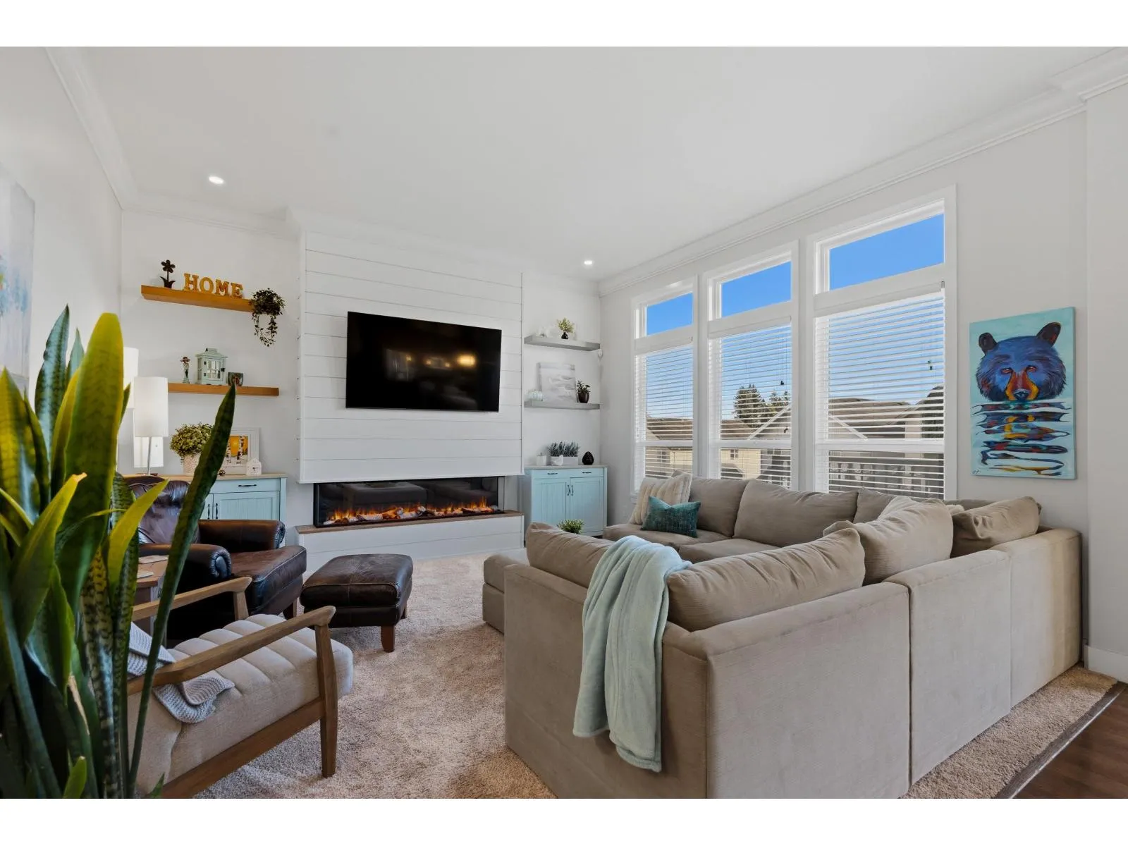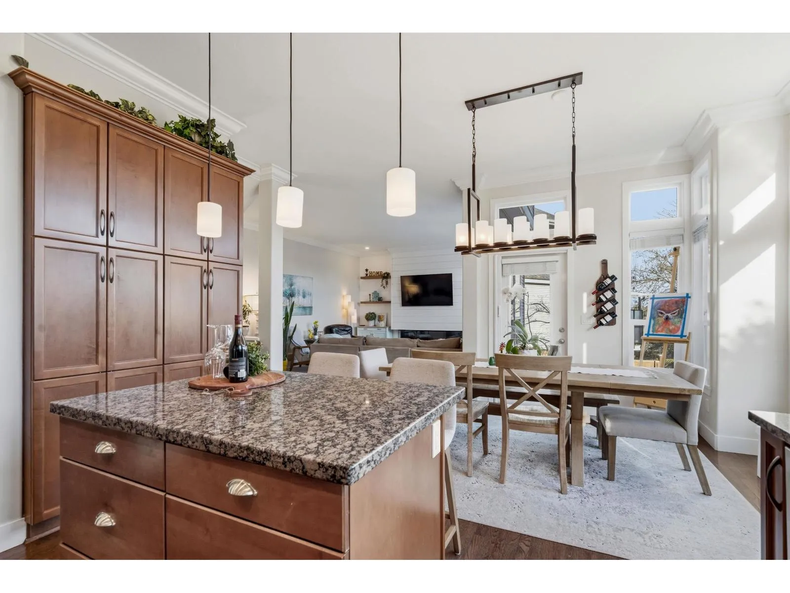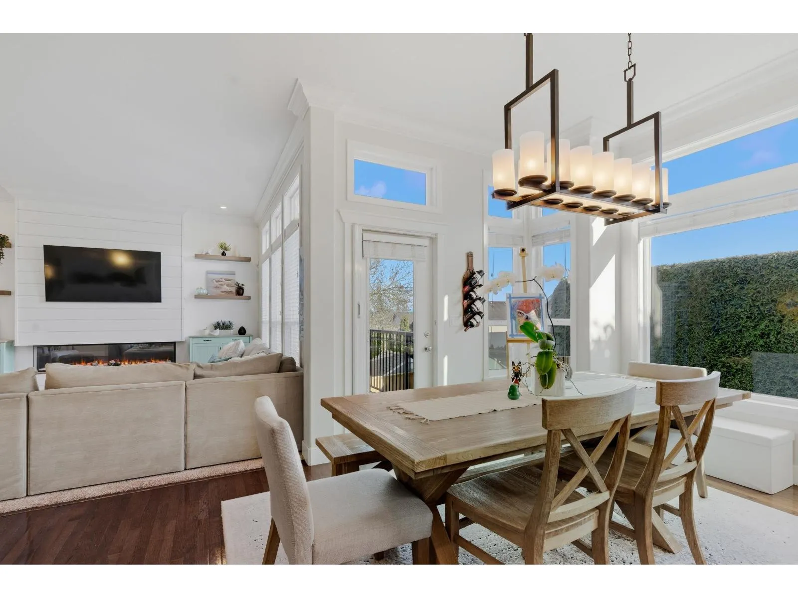 Welcome to one of West Cloverdale's finest Foxridge homes. This meticulously maintained one owner home is thoughtfully updated - this residence blends timeless style with modern comfort. The main floor features a sought-after great room layout with soaring ceilings, large windows, and southern exposure that fills the home with natural light year-round. A stunning shiplap feature wall and three-sided electric fireplace anchor the living space. The kitchen boasts granite countertops, updated appliances, and ample storage. Upstairs offers three spacious bedrooms and two full bathrooms. A modern one-bedroom basement suite with separate entrance and laundry adds flexibility and income potential. Additional highlights include heat pump, EV charger, south yard with composite decking and lighting (id:27476)