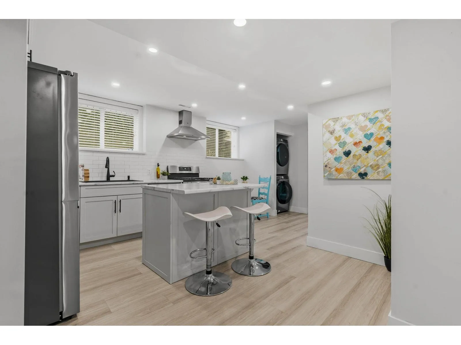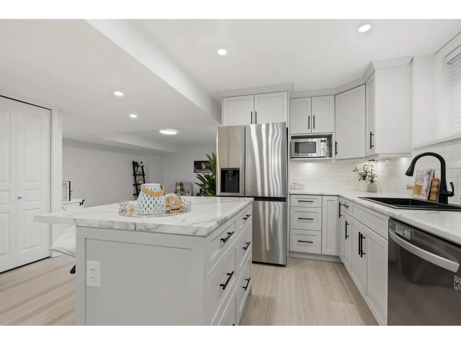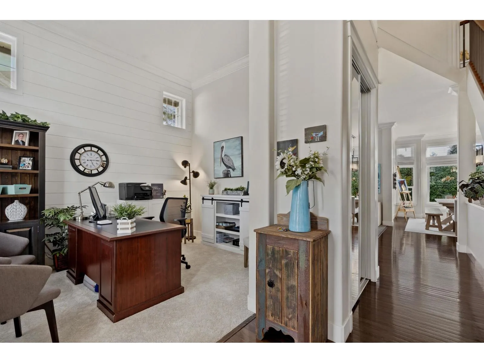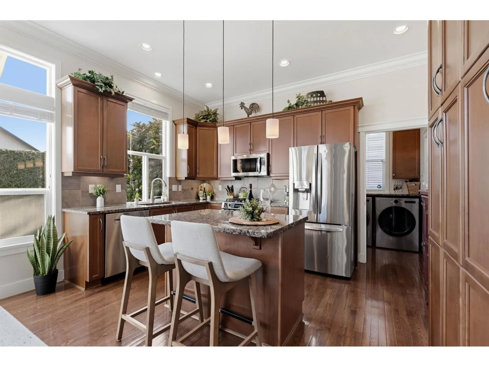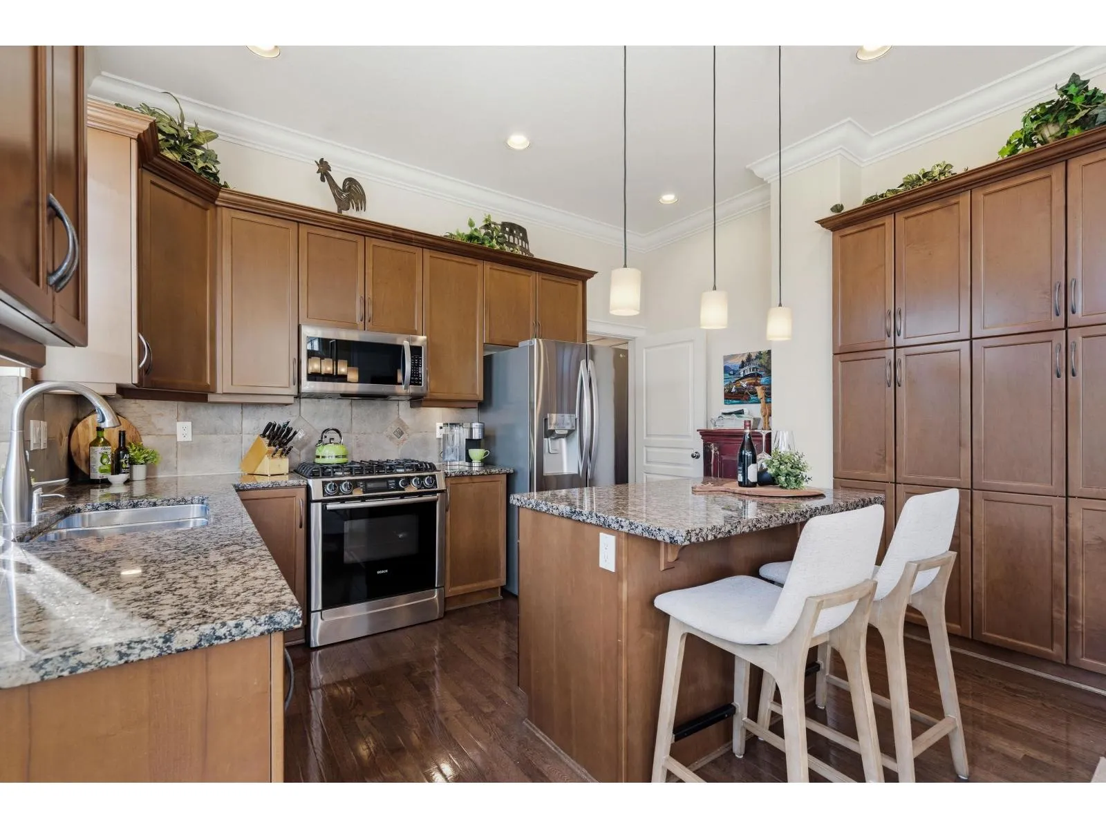 Welcome to one of West Cloverdale's finest Foxridge homes. This meticulously maintained one owner home is thoughtfully updated - this residence blends timeless style with modern comfort. The main floor features a sought-after great room layout with soaring ceilings, large windows, and southern exposure that fills the home with natural light year-round. A stunning shiplap feature wall and three-sided electric fireplace anchor the living space. The kitchen boasts granite countertops, updated appliances, and ample storage. Upstairs offers three spacious bedrooms and two full bathrooms. A modern one-bedroom basement suite with separate entrance and laundry adds flexibility and income potential. Additional highlights include heat pump, EV charger, south yard with composite decking and lighting (id:27476)