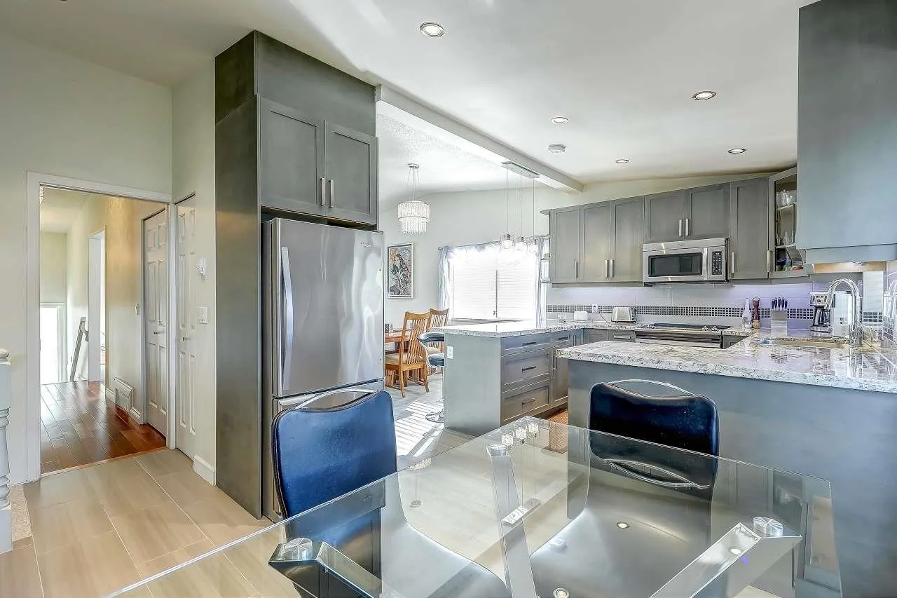 This Beautifully maintained 2,000 sq. ft. 2 story home offers 4 Bedrooms & 3 Bathrooms & Den set on a generous 7,000 sq. ft. lot. Step into a Vaulted foyer featuring rich Brazilian cherry hardwood flooring that flows throughout the main living spaces. The spacious Living and Dining areas are perfect for entertaining and seamlessly connect to a Renovated Kitchen, complete with Modern cabinetry, Granite countertops, and Stainless Steel appliances. A bright eating area opens into a large Family rm. with Patio doors leading to an expansive backyard and patio, ideal for outdoor gatherings. Upstairs features 3 well-sized Bdrms, including a Primary suite with a walk-in closet and private 3-piece ensuite. The lower level includes an additional bedroom, versatile Recreation room plus Laundry rm. (id:27476)