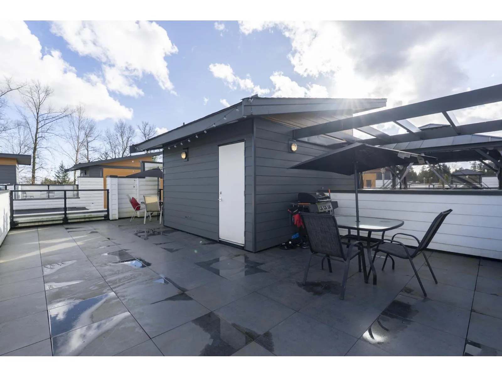 Welcome to Fleetwood Point! This stylish 3 bedroom, 3 bathroom townhome with a versatile den offers a bright, functional layout and exceptional outdoor space. The open main floor features a modern kitchen with quartz counters, stainless steel appliances, generous pantry, and a seamless flow into the dining and living area with fireplace. Upstairs, the spacious primary bedroom includes a private ensuite, while two additional bedrooms and full bath complete the level. Enjoy a covered balcony off the kitchen plus an incredible 650+ sq ft rooftop terrace, perfect for entertaining or relaxing. Double garage and a prime Fleetwood location close to schools, parks, shopping, and future SkyTrain. OPEN HOUSE WEDNESDAY 4-6PM (id:27476)