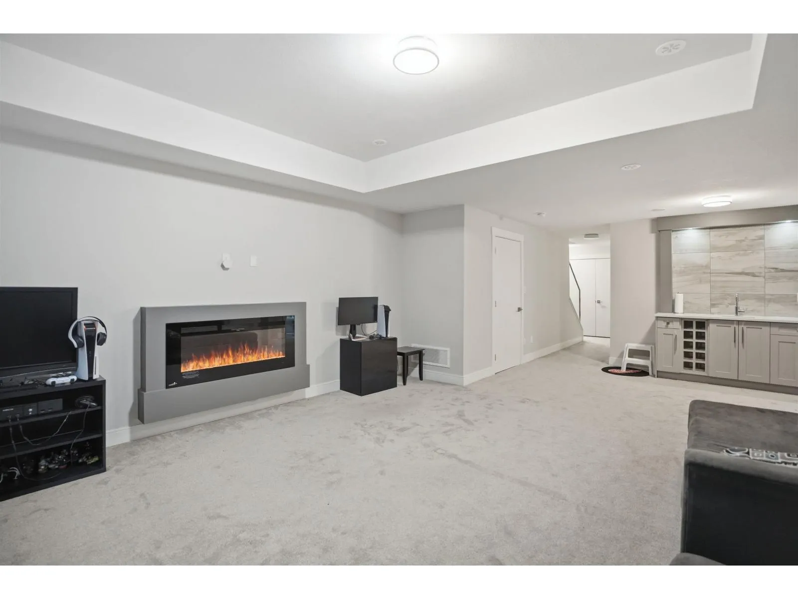 Welcome to this rare duplex-style approx. 2,800 square foot townhouse that truly feels like a detached home! Featuring 3 bedrooms upstairs, including a stunning master bedroom with a walk-in closet bigger than a den! And a spa-like ensuite, plus 2 more large bedrooms. A/C throughout the entire home for year-round comfort. The main floor offers bright, open-concept living with quartz countertops, s/s appliances, and a spacious family room. Over $11,000 in developer upgrades and proudly owner-occupied since new! One of few units that have both a driveway and a garage. The home backing onto peaceful acreage for ultimate privacy. Enjoy seamless indoor-outdoor living with a walkout patio and a large backyard. Downstairs features a massive rec room with a wet bar, guest bedroom, and a full bath. A rare find at an incredible price! (id:27476)