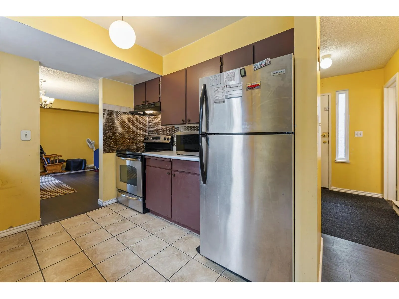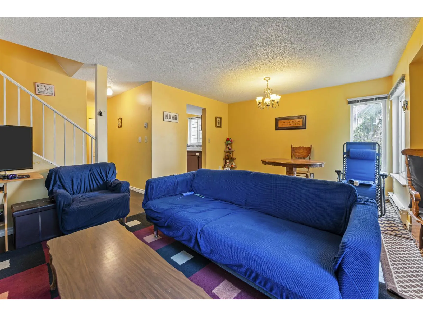Welcome to this spacious & cozy 2 story 3 Bedroom unit townhouse facing NORTH in popular TIMBERLANE development, that is family oriented well run strata. On main level, a large living room greets you leading to ample dining room area & well kept kitchen w/ stove, countertops and backsplash. A powder room & large shoe/jacket closet & laundry closet rounds out 1st flr. Upstrs has 3 good sized bedrms w greenbelt views, full bathrm & Laminate floors. For outdoor entertainment, step into huge private fenced concrete patio/yard,perfect for kids/pets to play in. The strata has a beautiful outdoor. Very close to grocery marts, express bus, elementary and high schools. Excellent redevelopment potential. This is the home you have been seeking! (id:27476)