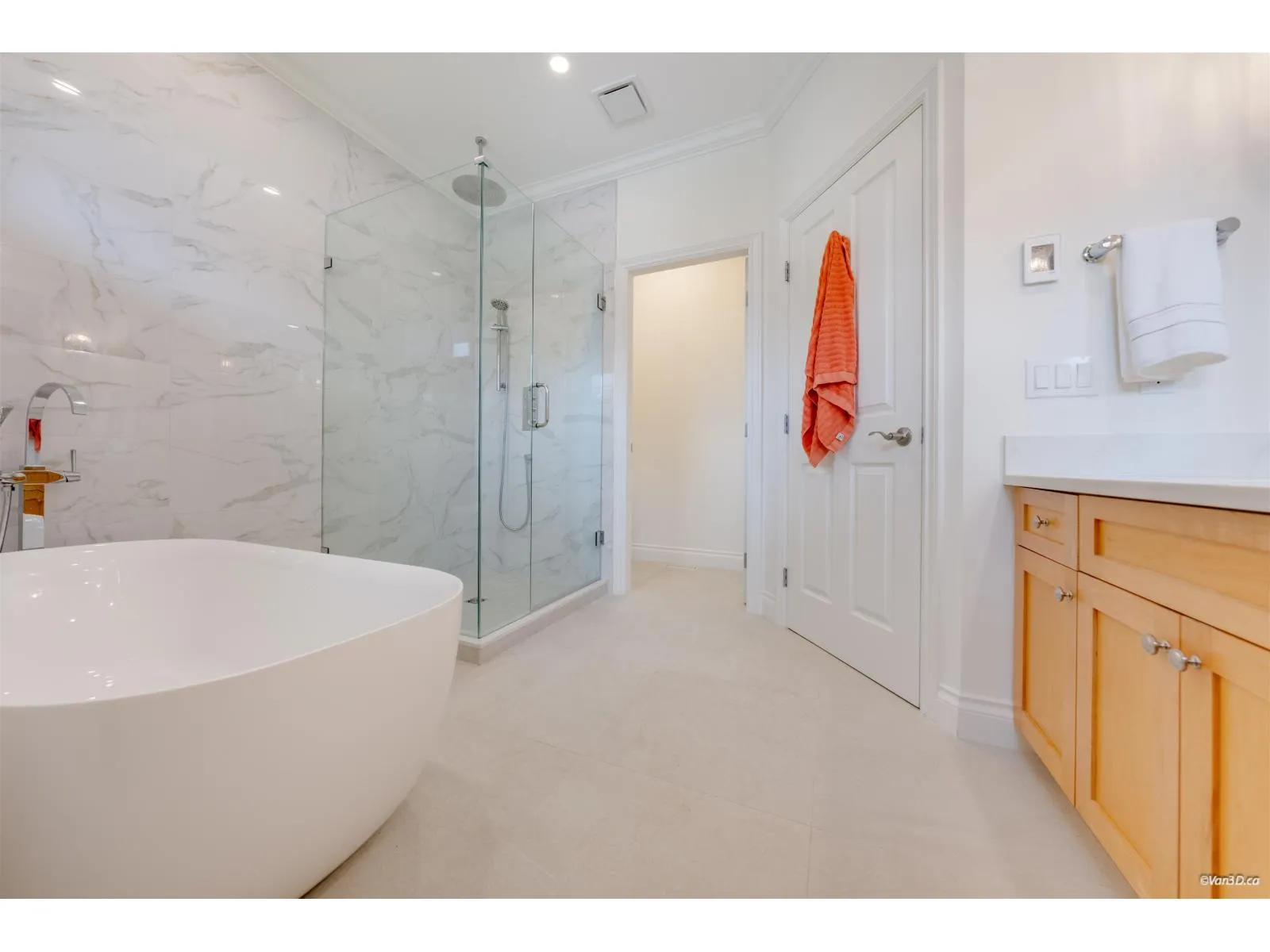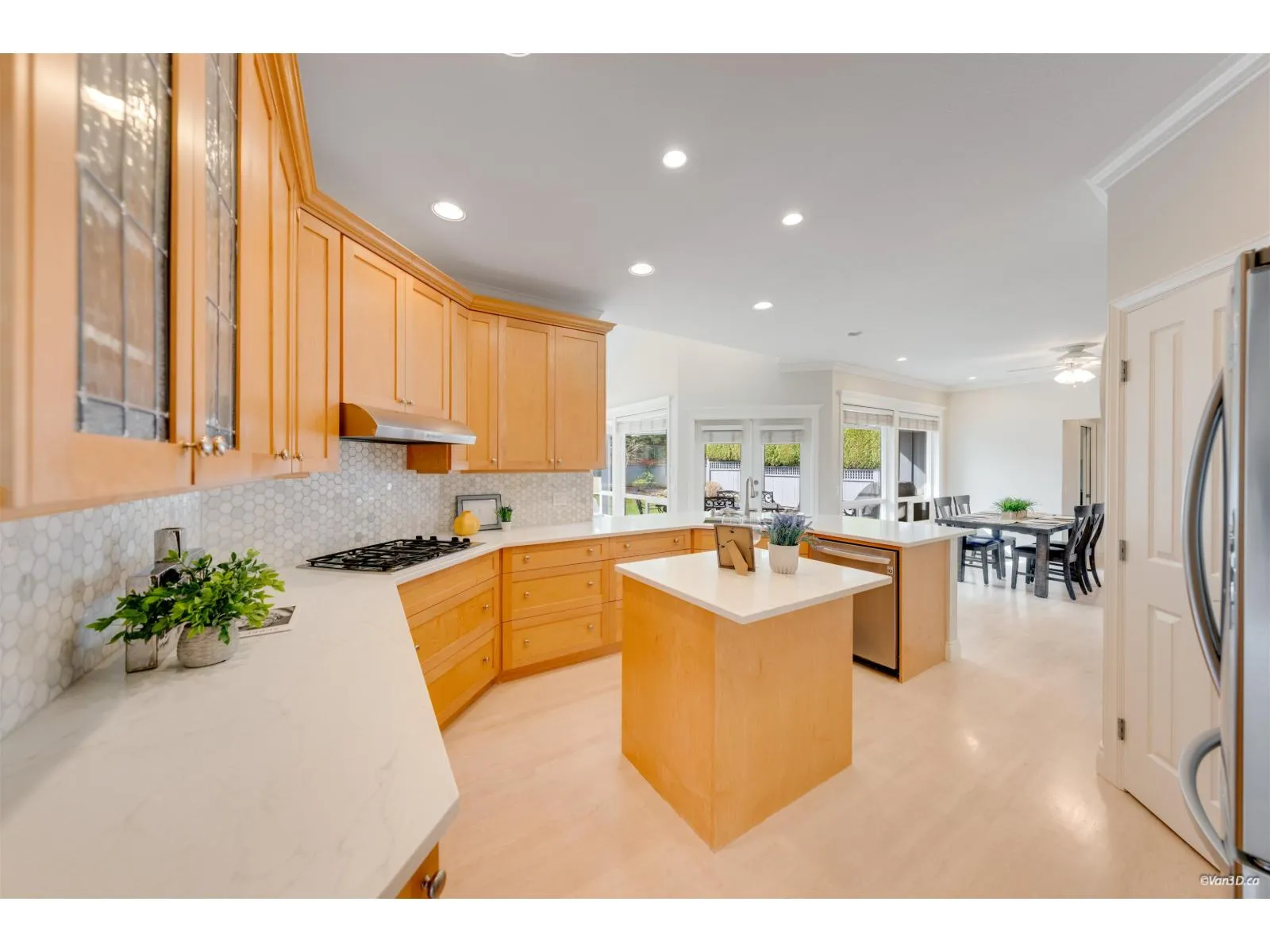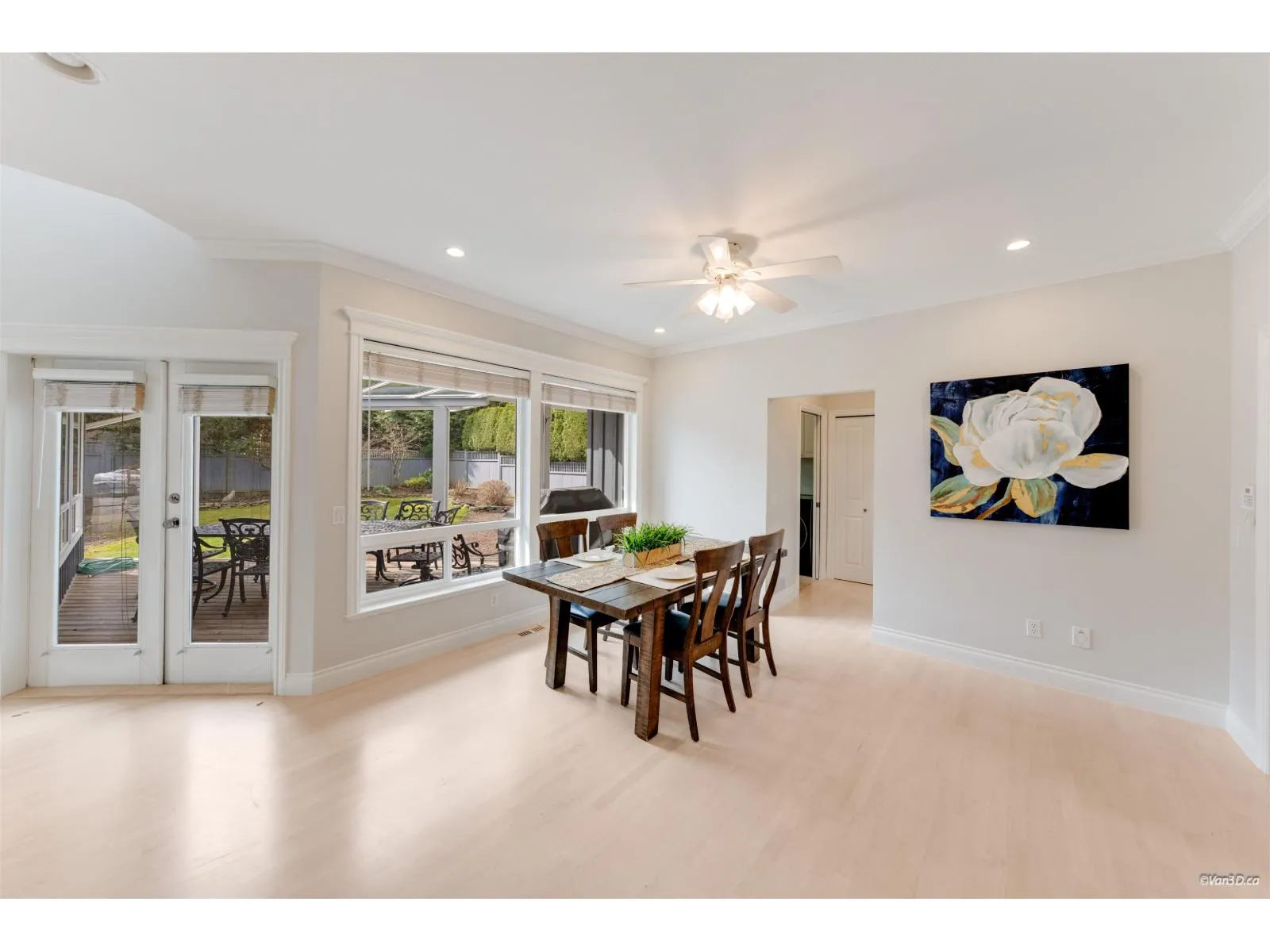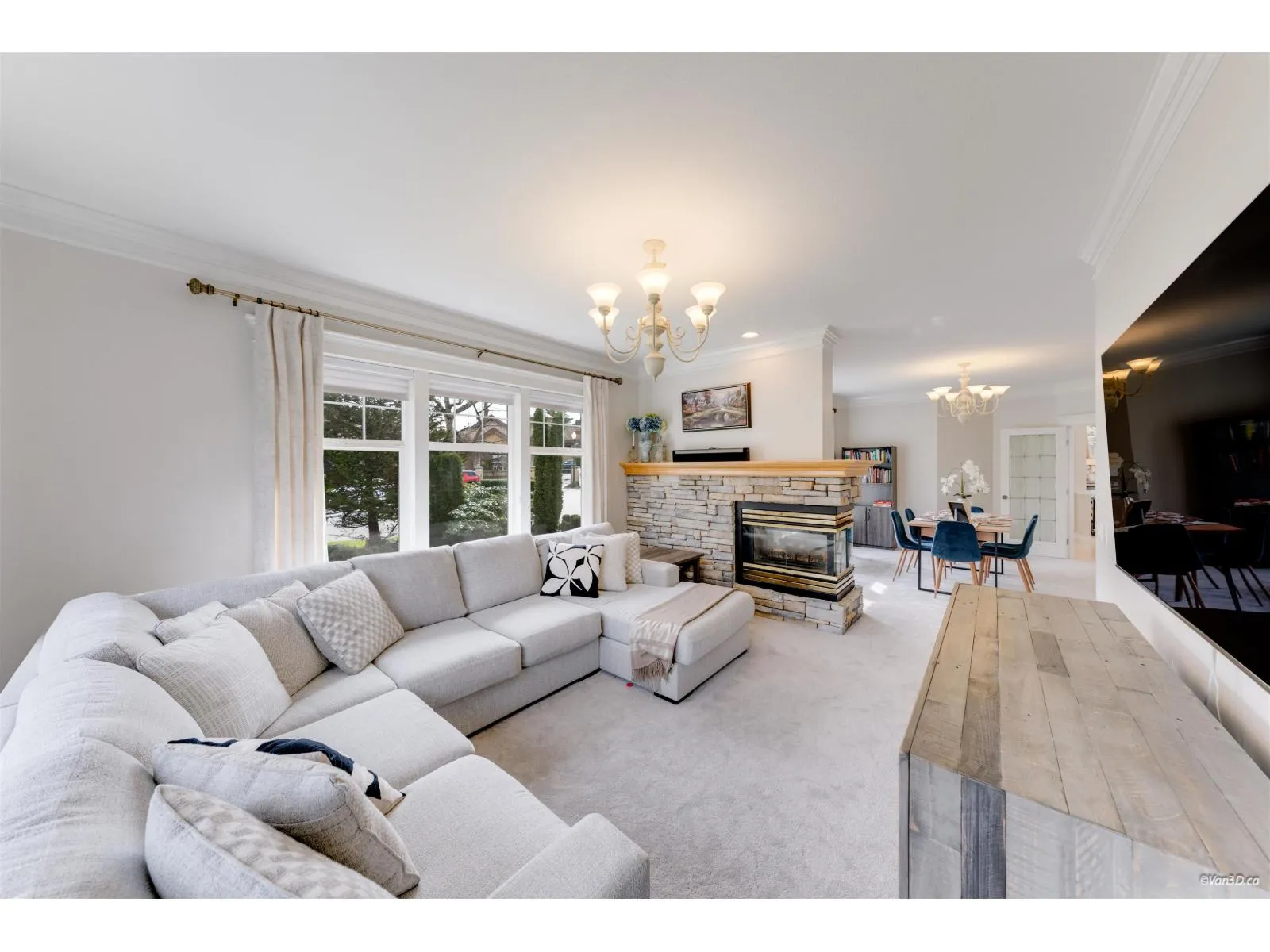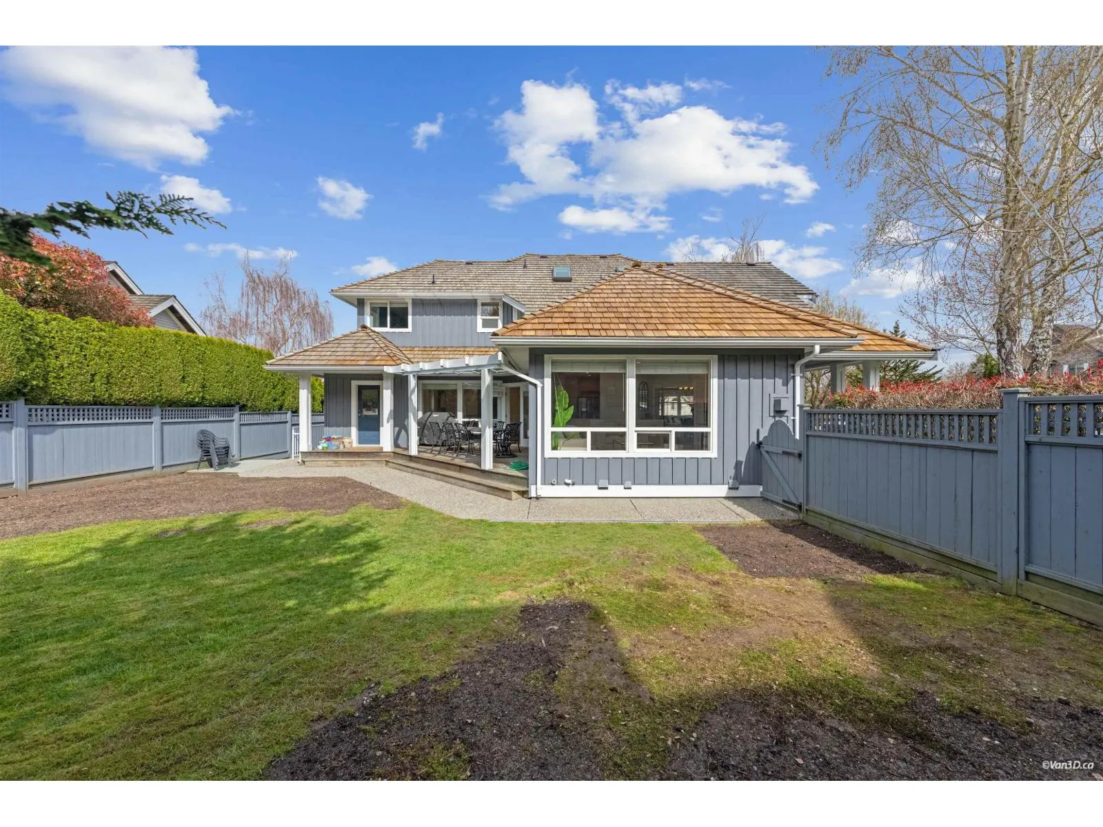Welcome to this beautifully updated family home in prestigious Morgan Creek. Located on a quiet cul-de-sac corner lot, this home offers great curb appeal and a sunny south-facing, partially covered backyard. The main floor features 9' ceilings, a bright living room with vaulted ceilings and gas fireplace, plus elegant dining and family rooms with a double-sided fireplace. The kitchen is upgraded with new countertops (2022)and marble backsplash. The main floor primary bedroom includes a walk-in closet and renovated ensuite with heated floors(2022). Upstairs offers two bedrooms with a flex room. Basement features a large recreation room with separate entrance. Updates include new paint, refinished hardwood floors, A/C, bathrooms, carpet and roof. Close to golf and schools. (id:27476)