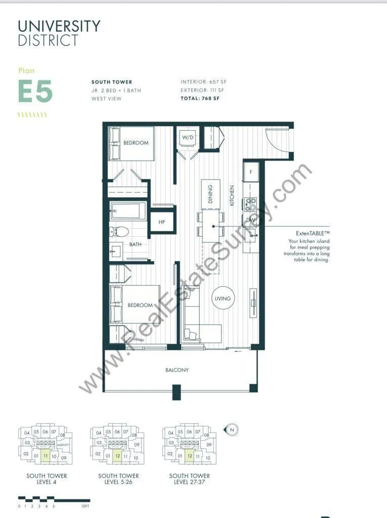 Welcome to "University District" by Bosa. Centrally located community in the heart of Surrey. This modern 2 Bed 1 Bath condo features sleek laminate flooring, granite countertops, A/C, and floor-to-ceiling windows that fill the space with natural light. Added conveniences include in-suite laundry & one secured parking stall. This development offers approximately 25,000 sqft of amenities including an outdoor pool, fitness centers, bike storage and repair area, club house & a business center, and zones for kids and pets. Residents enjoy access to an impressive 25,000 square feet of resort-style amenities, including an outdoor swimming pool, fitness centre, sauna, clubhouse & business centre, media and games room, bike storage, and even a car wash area. **No Smoking - No Pet** (id:27476)