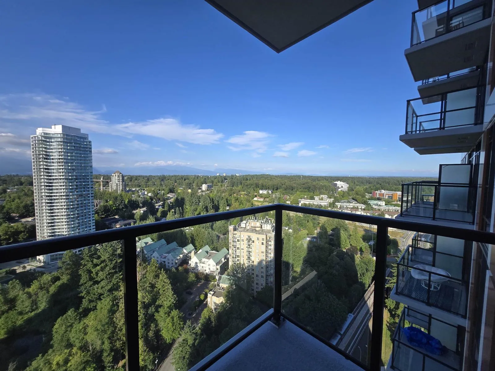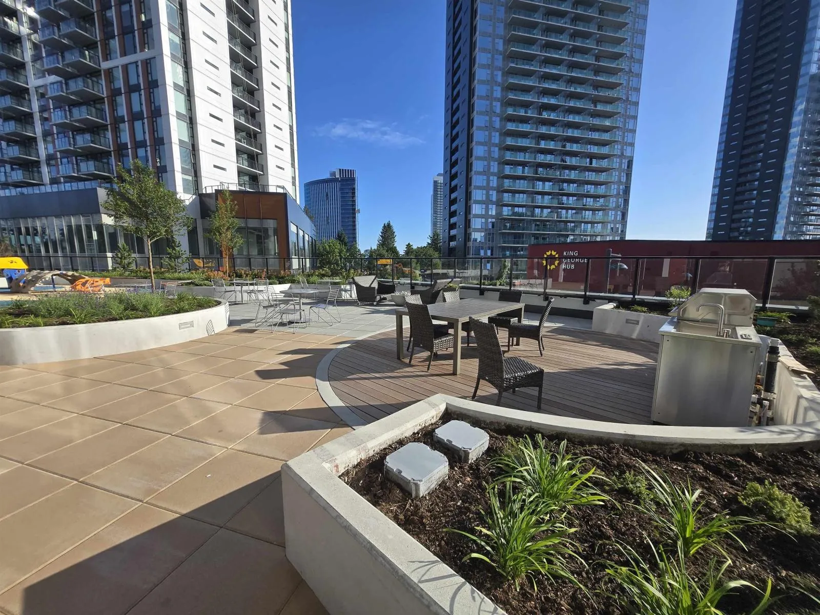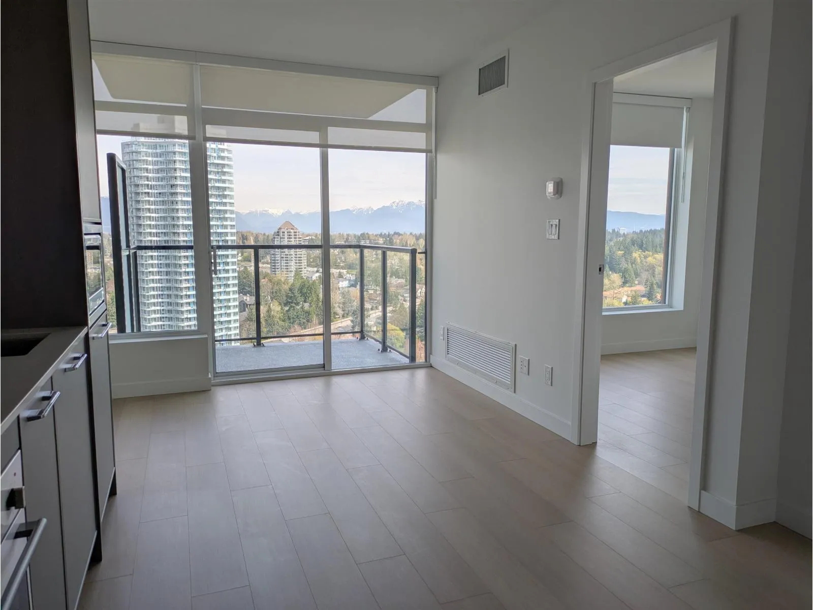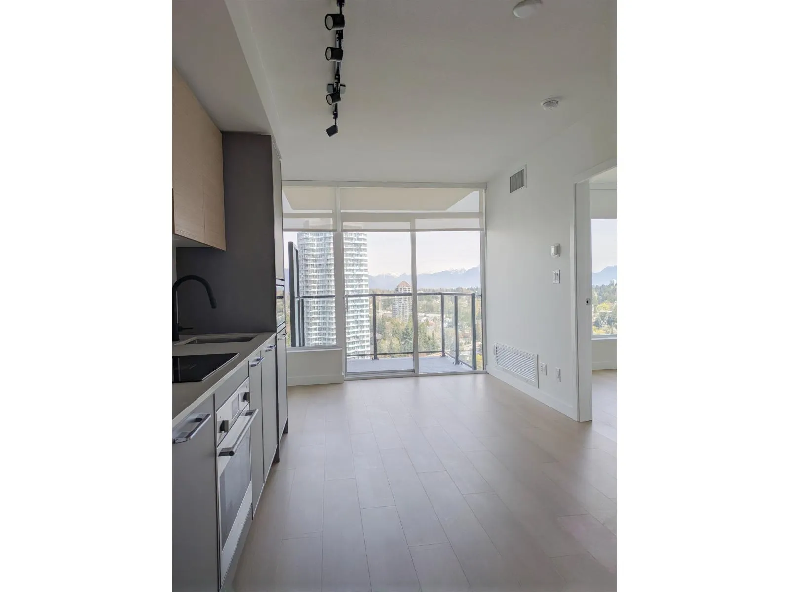 1-year-old 1-bedroom condo for rent on the 29th floor at Plaza One - King George Hub, offering open mountain and city views with surrounding buildings set at a distance. This well-designed 465 sq.ft. home features a bright, functional layout with floor-to-ceiling windows, integrated appliances, and central air conditioning for year-round comfort. Enjoy a private balcony, 1 parking stall, and access to a full range of modern amenities including a fitness centre, yoga studio, theatre room, co-working lounge, rooftop terrace, and social spaces. Conveniently located in the heart of Surrey City Centre, just steps to King George SkyTrain Station, shopping, dining, SFU Surrey, and Surrey Memorial Hospital. Available from April 15(1EV paking included) (id:27476)